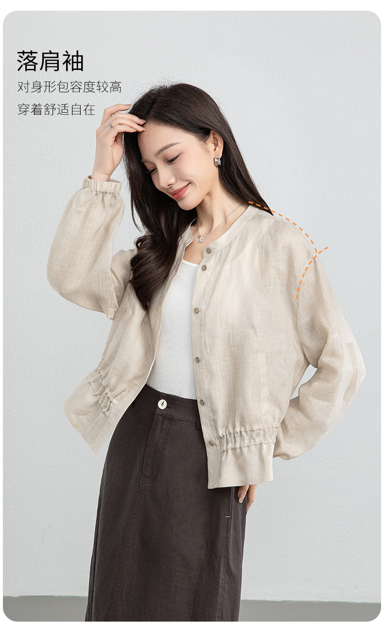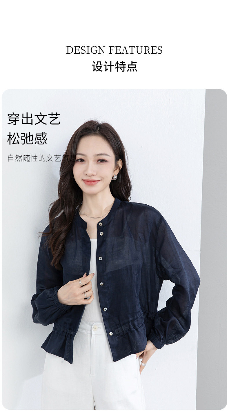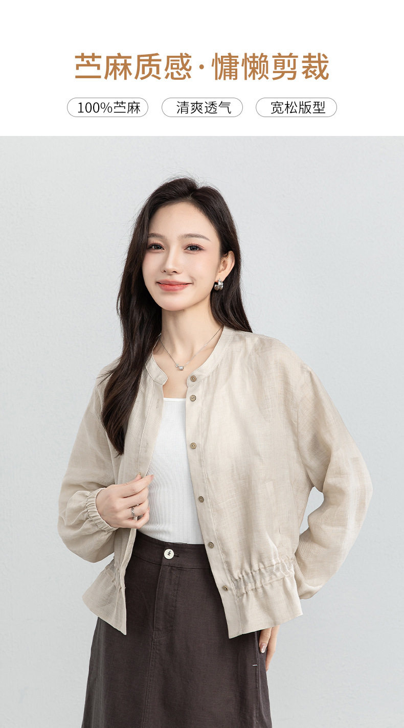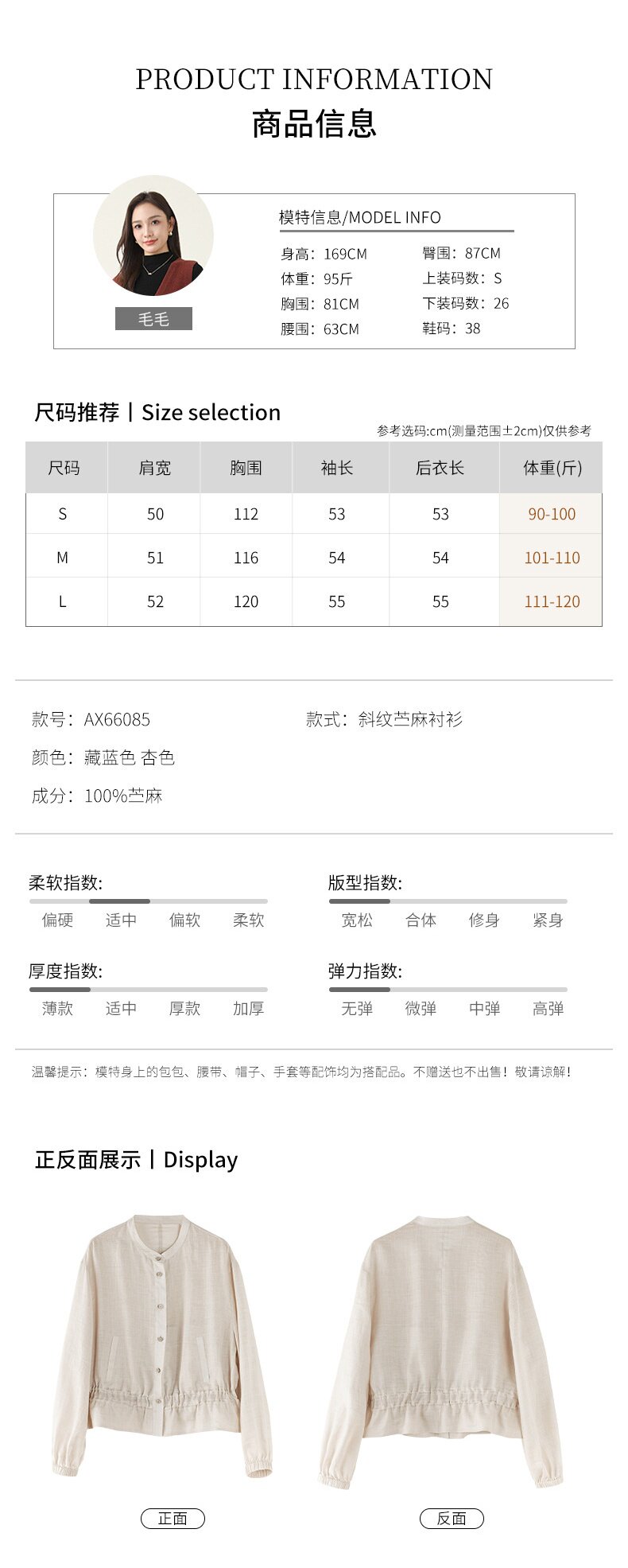 「高货xg」全新升级【铂金会员257/天猫339/差价82】(05448)洛诗琳新款苎麻衬衫外套2026春季显瘦小立领荷叶边短上衣