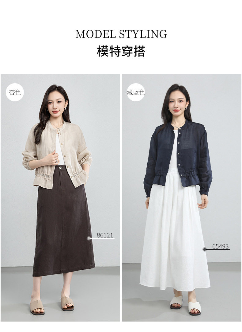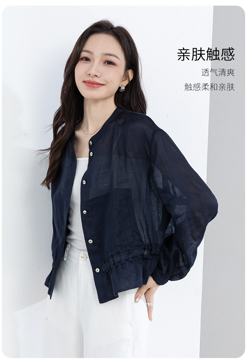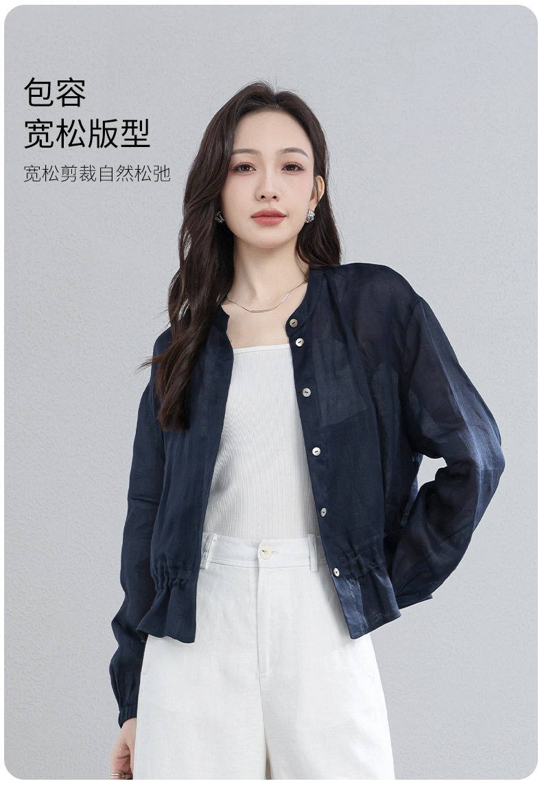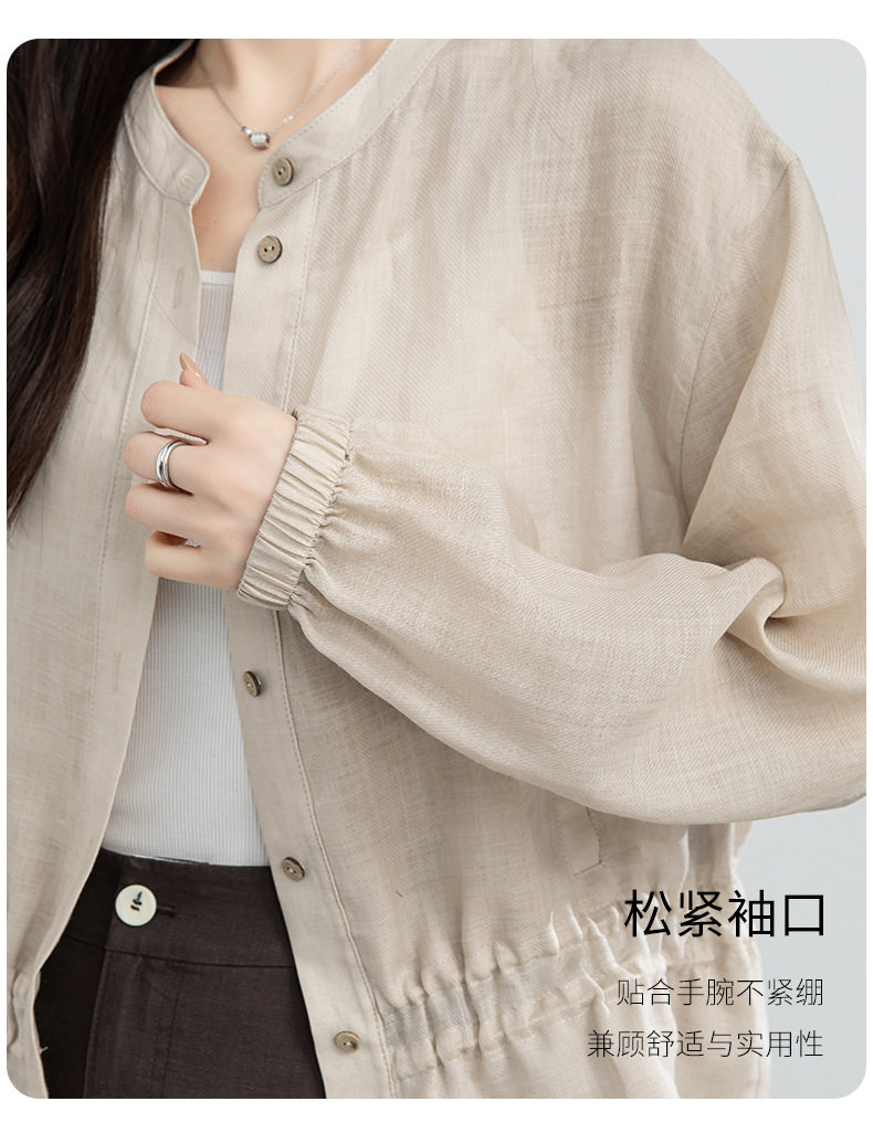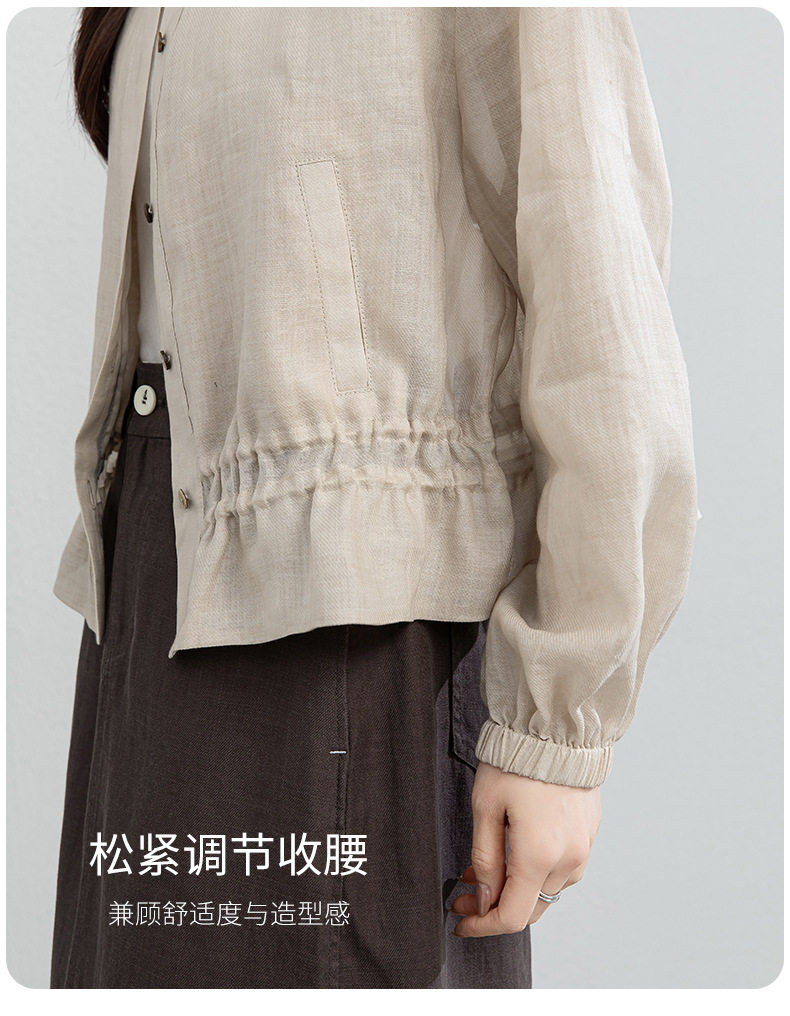 「高货xg」全新升级【铂金会员257/天猫339/差价82】(05448)洛诗琳新款苎麻衬衫外套2026春季显瘦小立领荷叶边短上衣