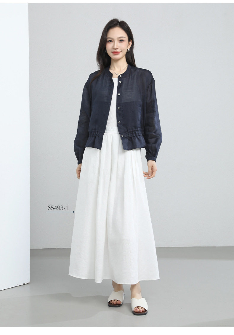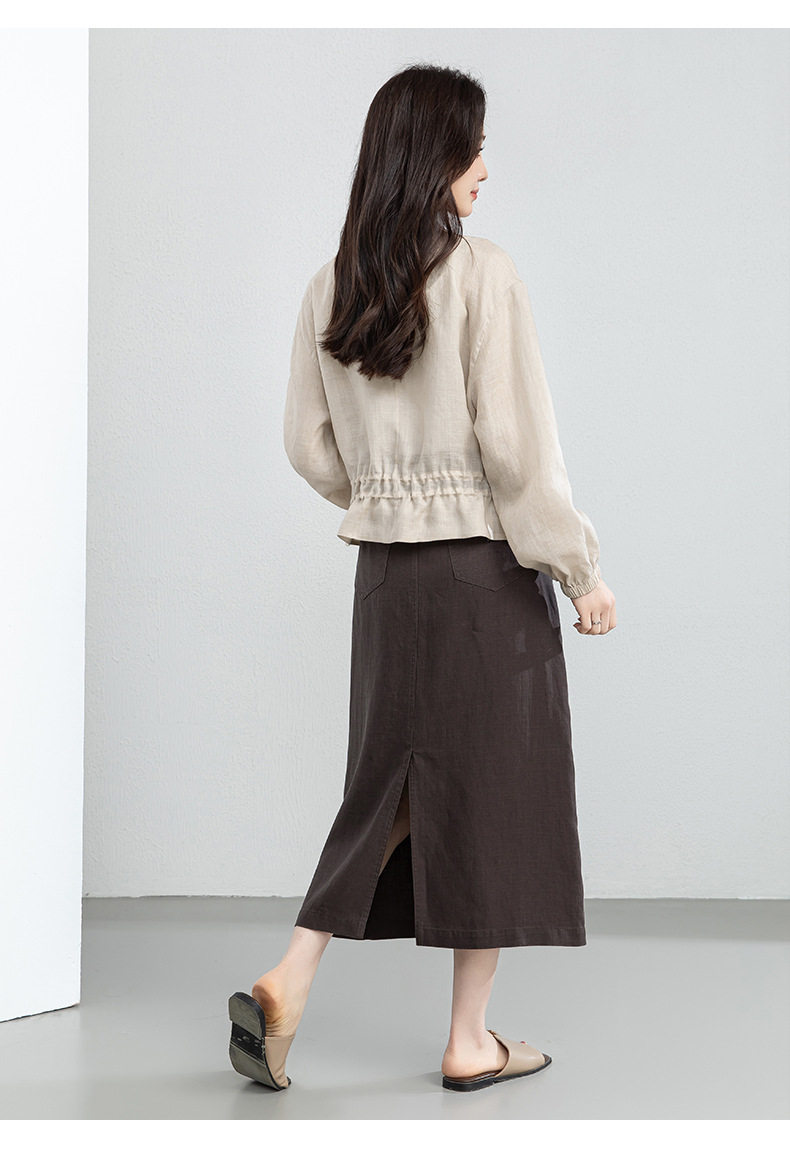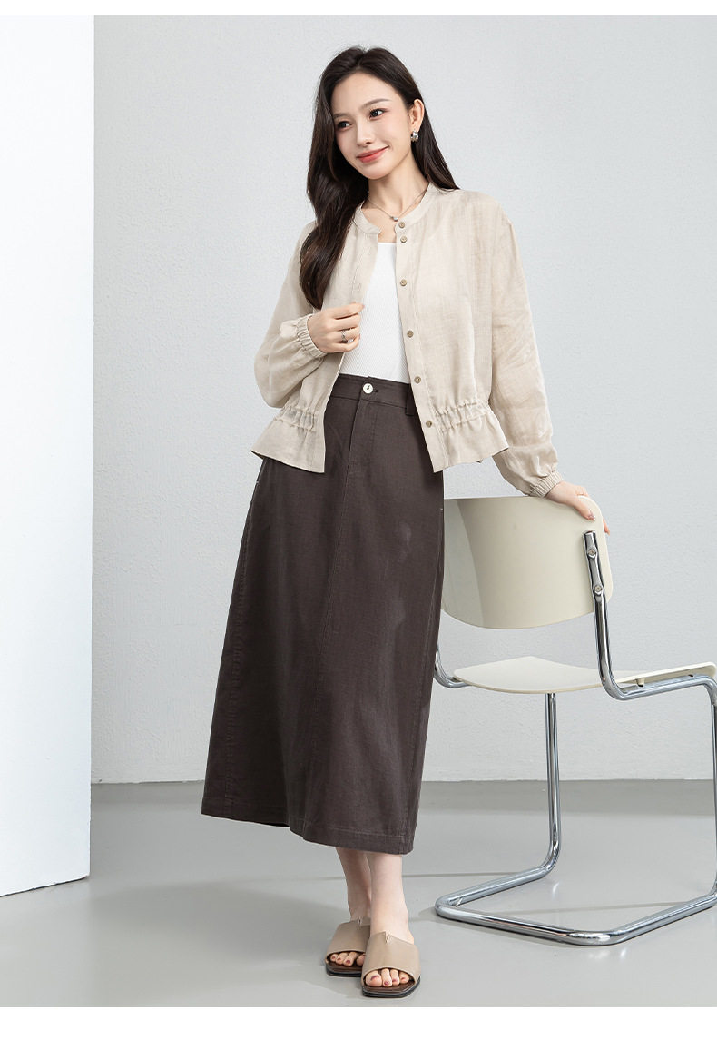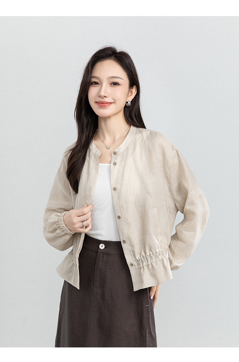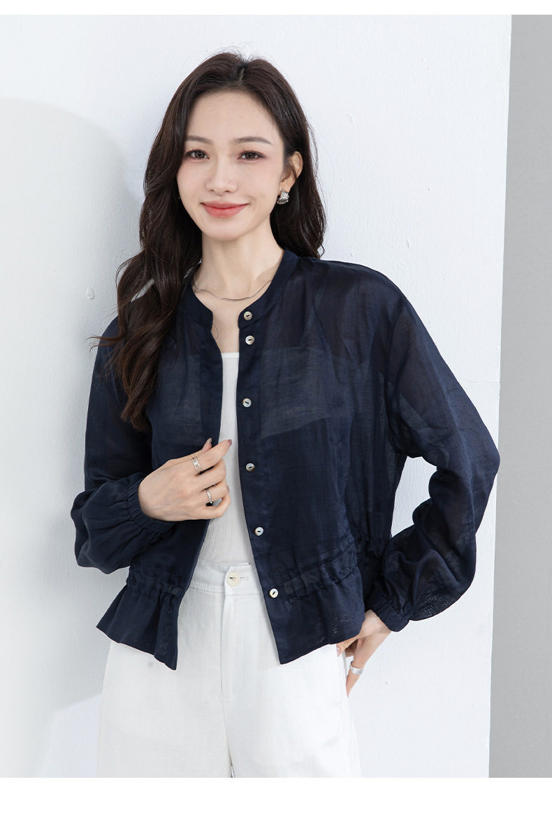 「高货xg」全新升级【铂金会员257/天猫339/差价82】(05448)洛诗琳新款苎麻衬衫外套2026春季显瘦小立领荷叶边短上衣