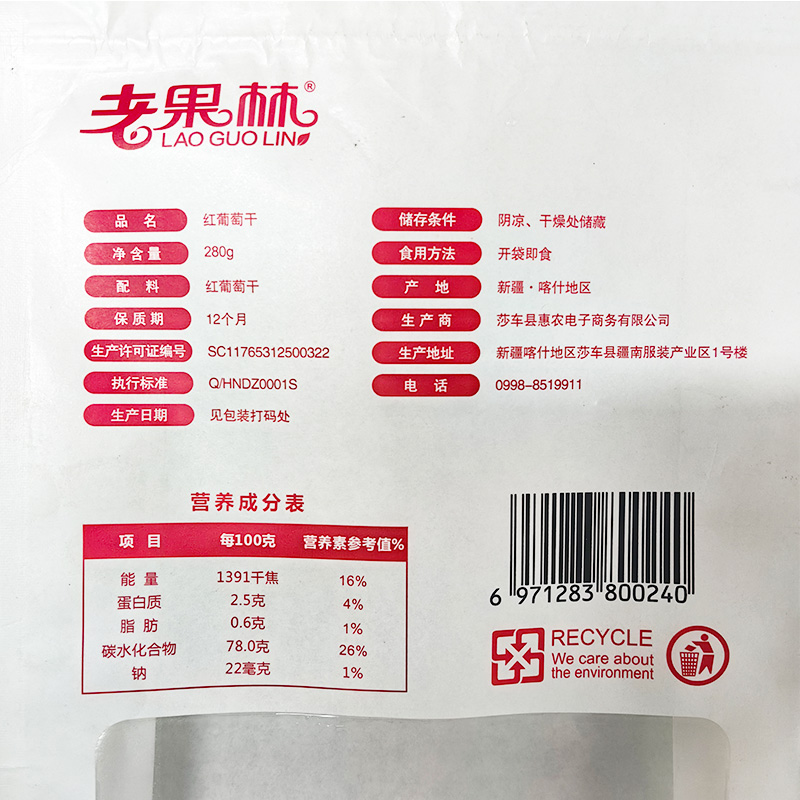 老果林·新疆喀什红香妃葡萄干 280g*2 颗粒饱满 肉厚味甜