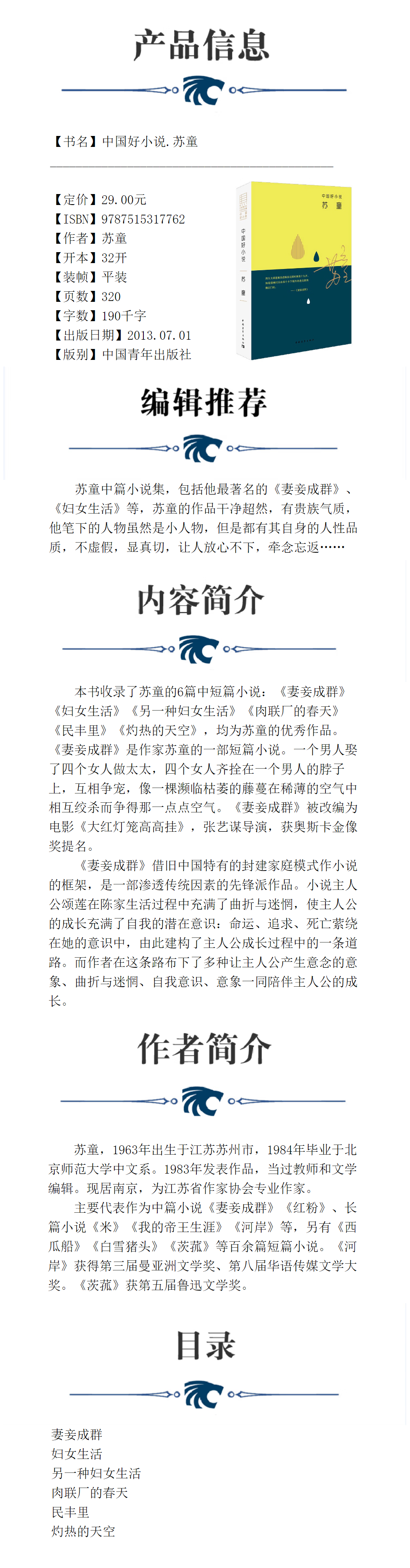 中国好小说.苏童 苏童著 中国好小说 中国青年出版社