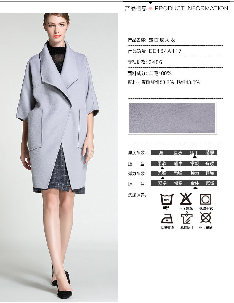 乔万尼双面羊毛呢大衣蝙蝠袖中长款E164A117