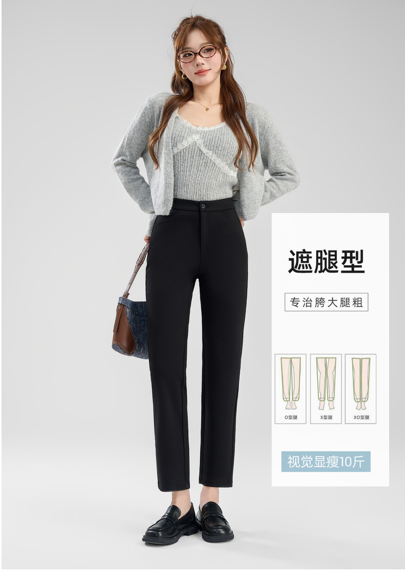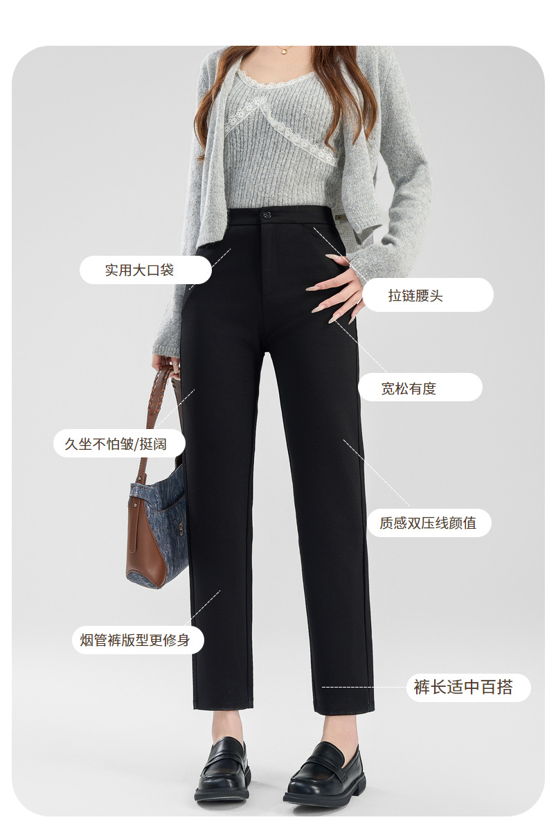 丁摩 【直筒小黑裤】哥弟面料高腰西装裤女春直筒显瘦窄版拉链休闲裤子6ZF-C066 商品图4