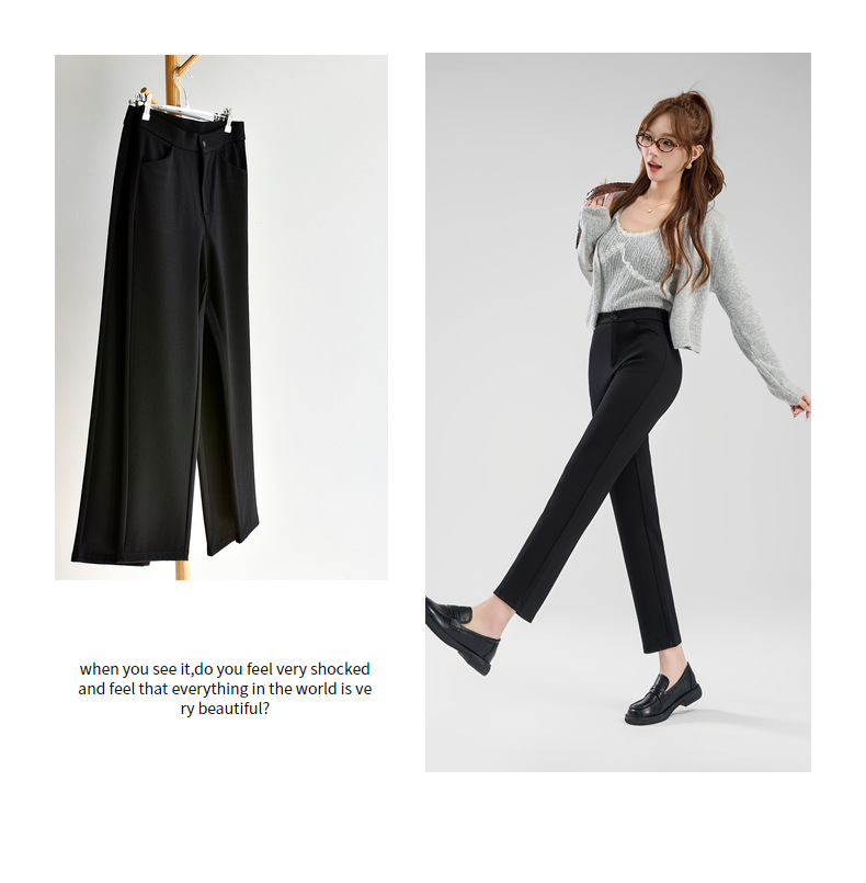 丁摩 【直筒小黑裤】哥弟面料高腰西装裤女春直筒显瘦窄版拉链休闲裤子6ZF-C066 商品图0