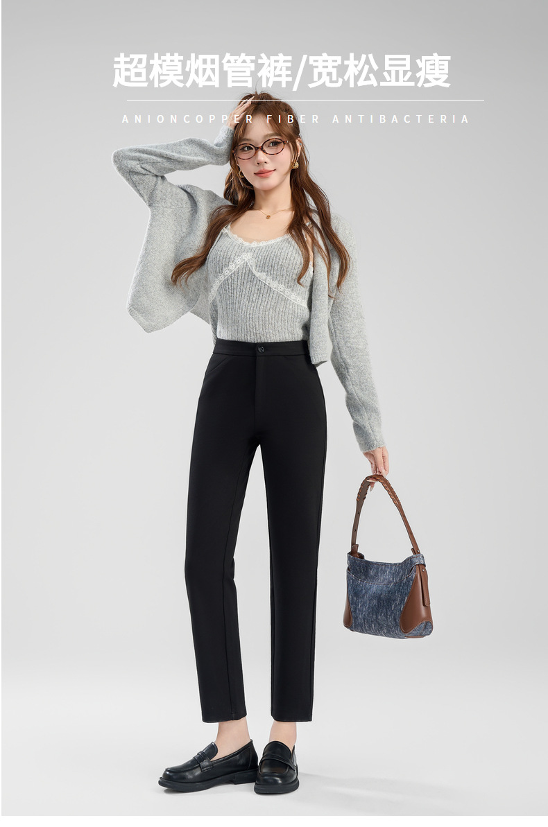 丁摩 【直筒小黑裤】哥弟面料高腰西装裤女春直筒显瘦窄版拉链休闲裤子6ZF-C066 商品图3