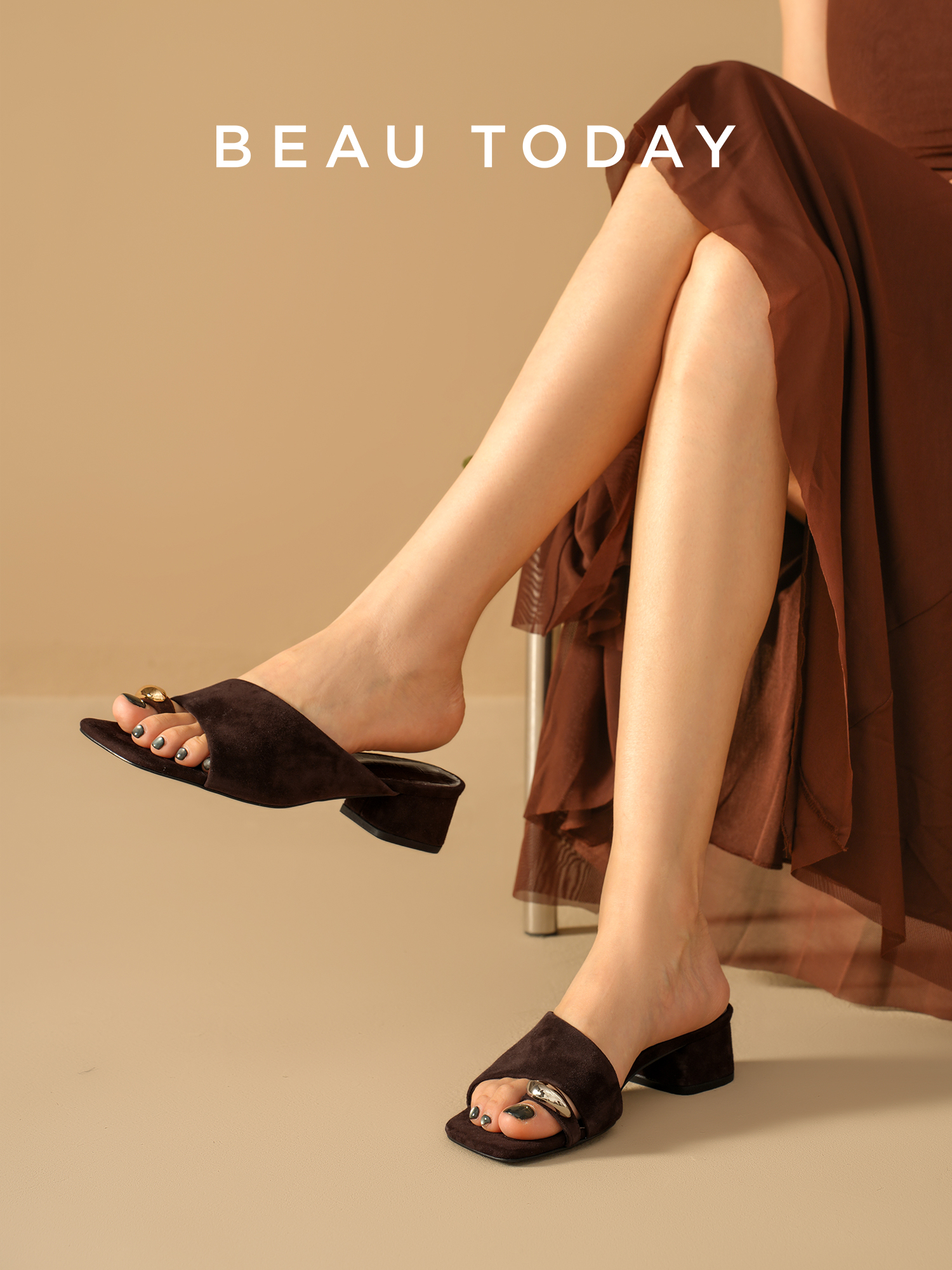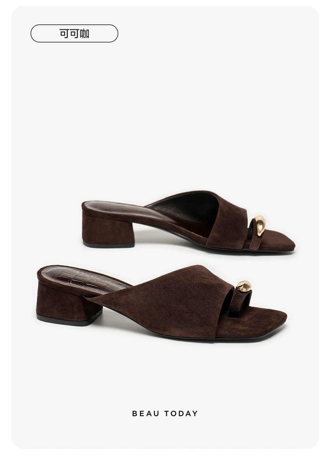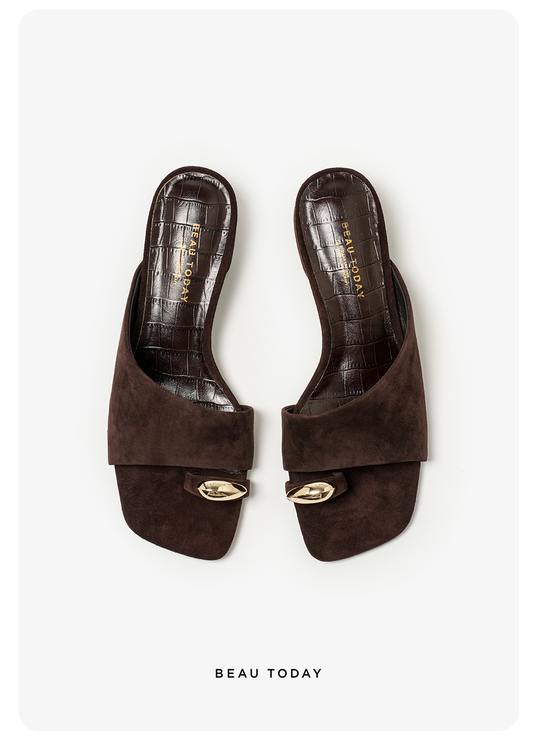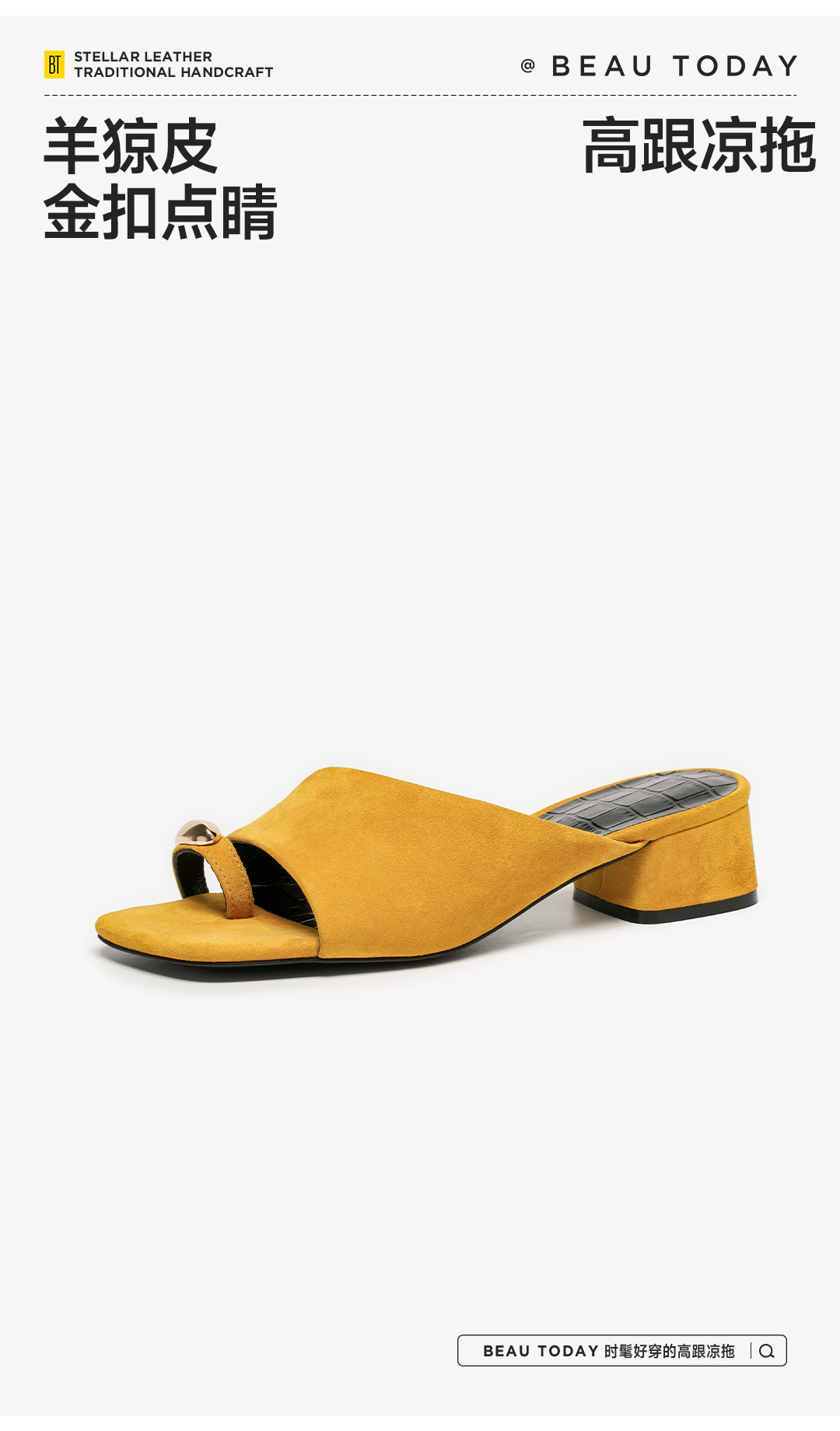 BeauToday 平底凉拖女款夏季真皮一字拖鞋外穿海边沙滩鞋