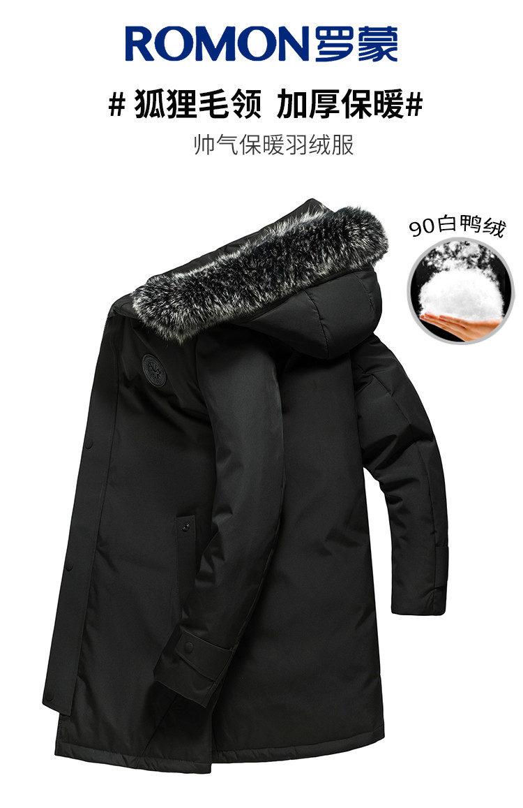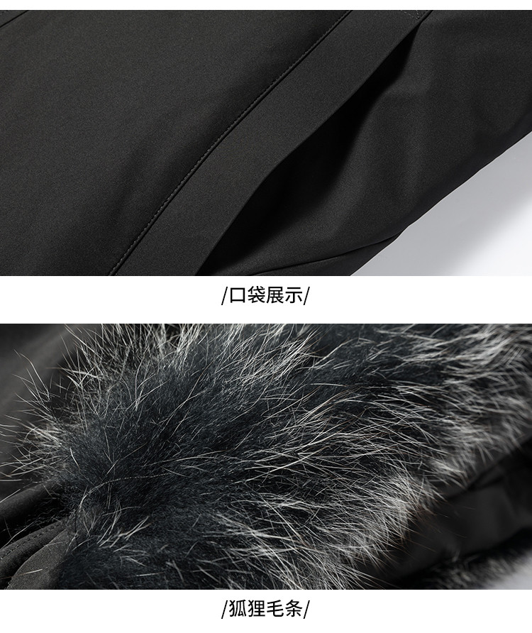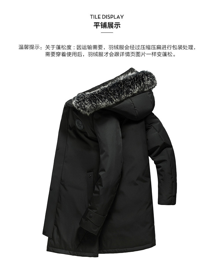 5ZYRA88728【90白鸭绒】林志颖同款狐狸大毛领羽绒服男中长款连帽男士羽绒服男外套