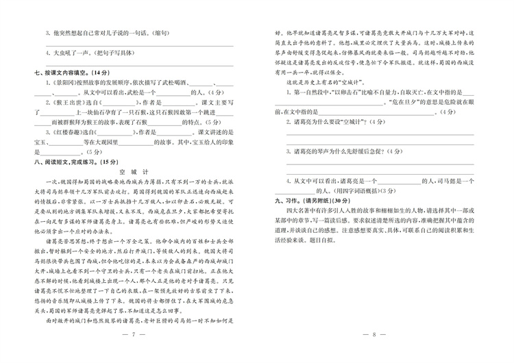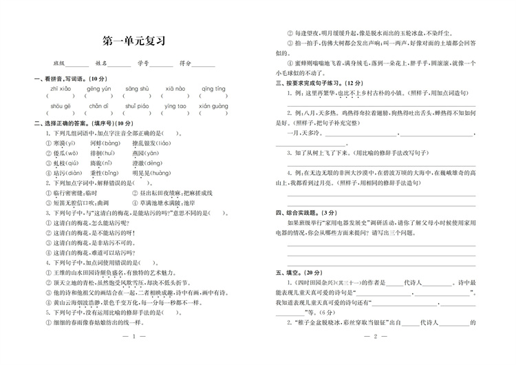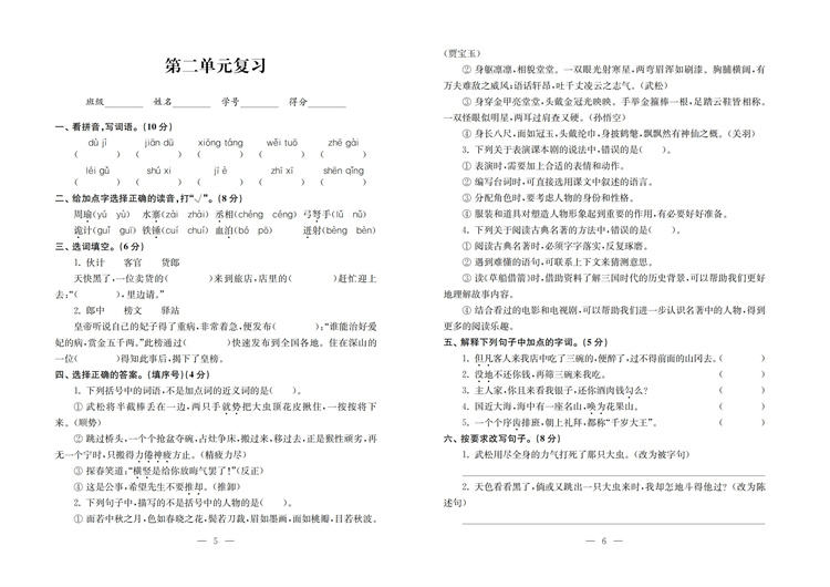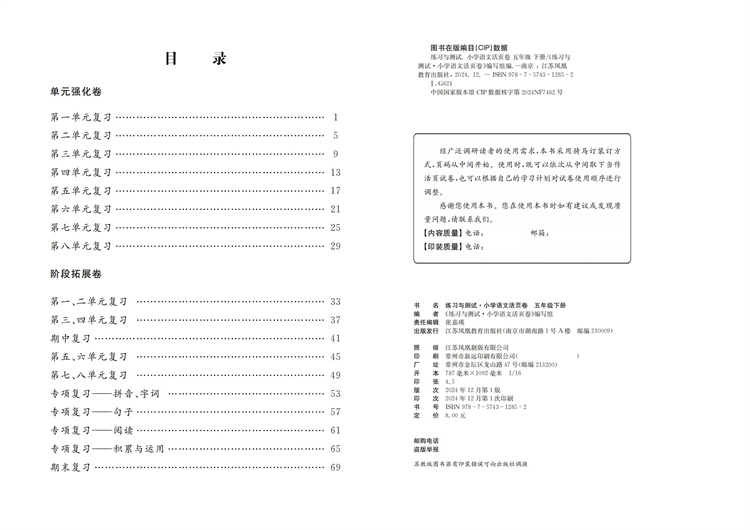 2025春 小学语文活页卷五年级下册配人教版 小学教辅 语文试卷 学生练习 测试卷 含电子答案 江苏凤凰教育出版社