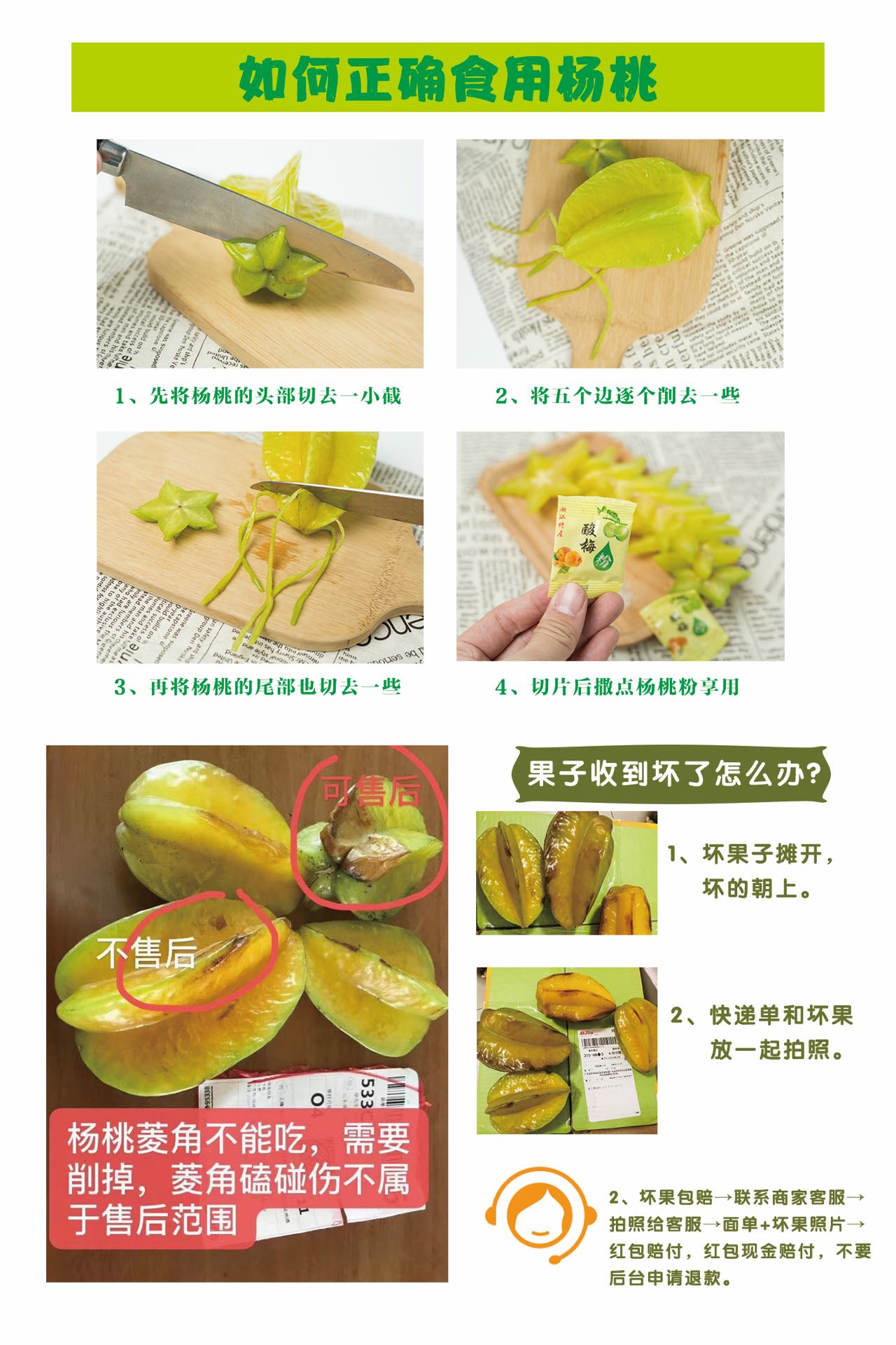 杨桃是比较娇贵的水果,运输途中棱角难免磕碰,售后标准如下: