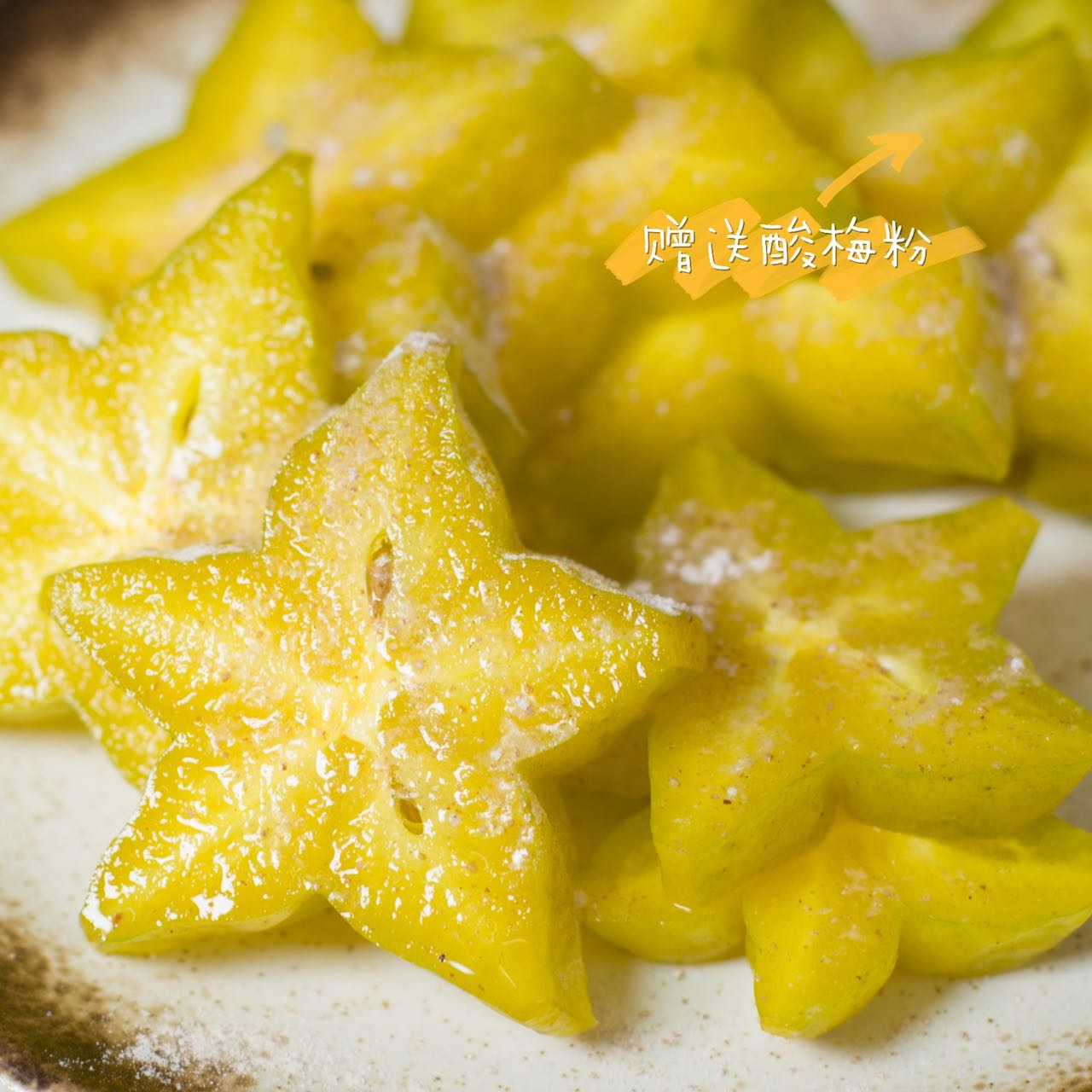 记得一定是先去掉边边,切成片看到我们美丽的五角星撒上我们标配的酸梅粉,相信可以打破以往对杨桃食之无味的印象,一爱便是永久。