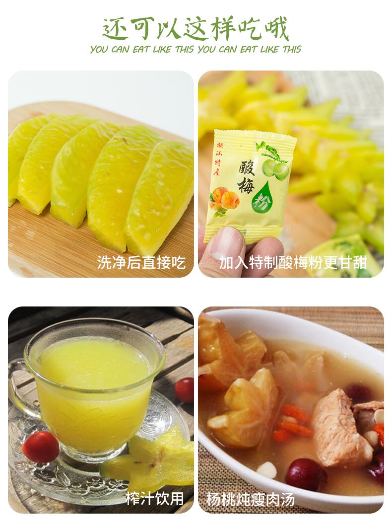 出口级品质,杨桃中的佼佼者,一口清甜芬芳的正宗树上熟下河杨桃。肉厚汁多,超大个,越放越黄,越黄越甜!