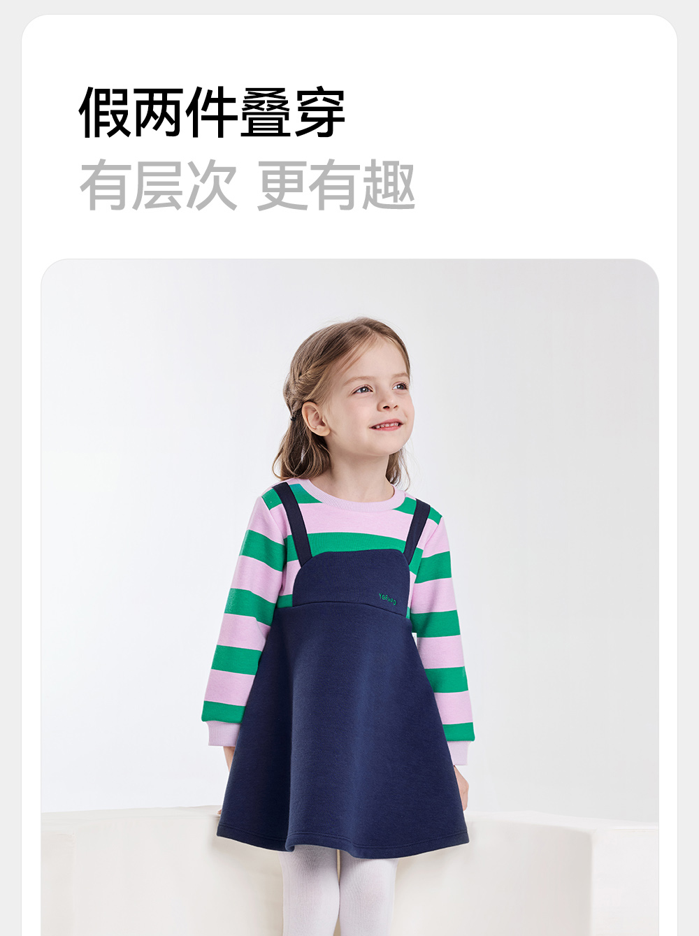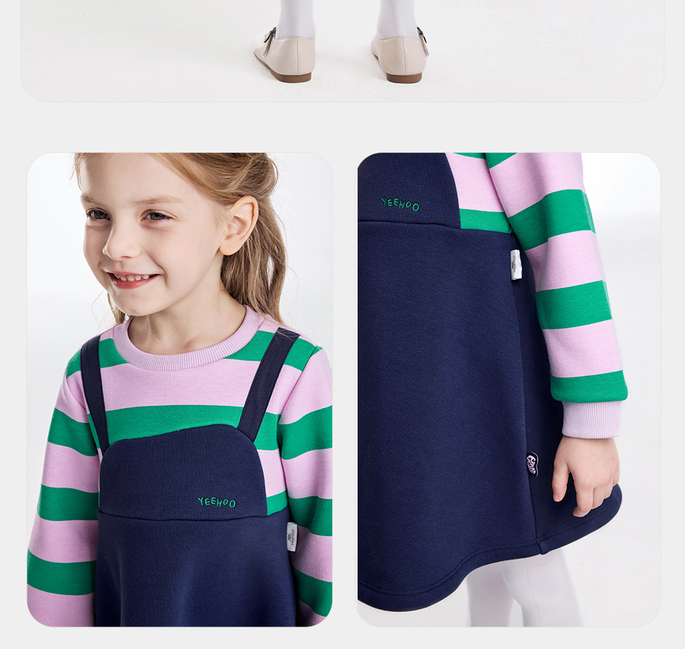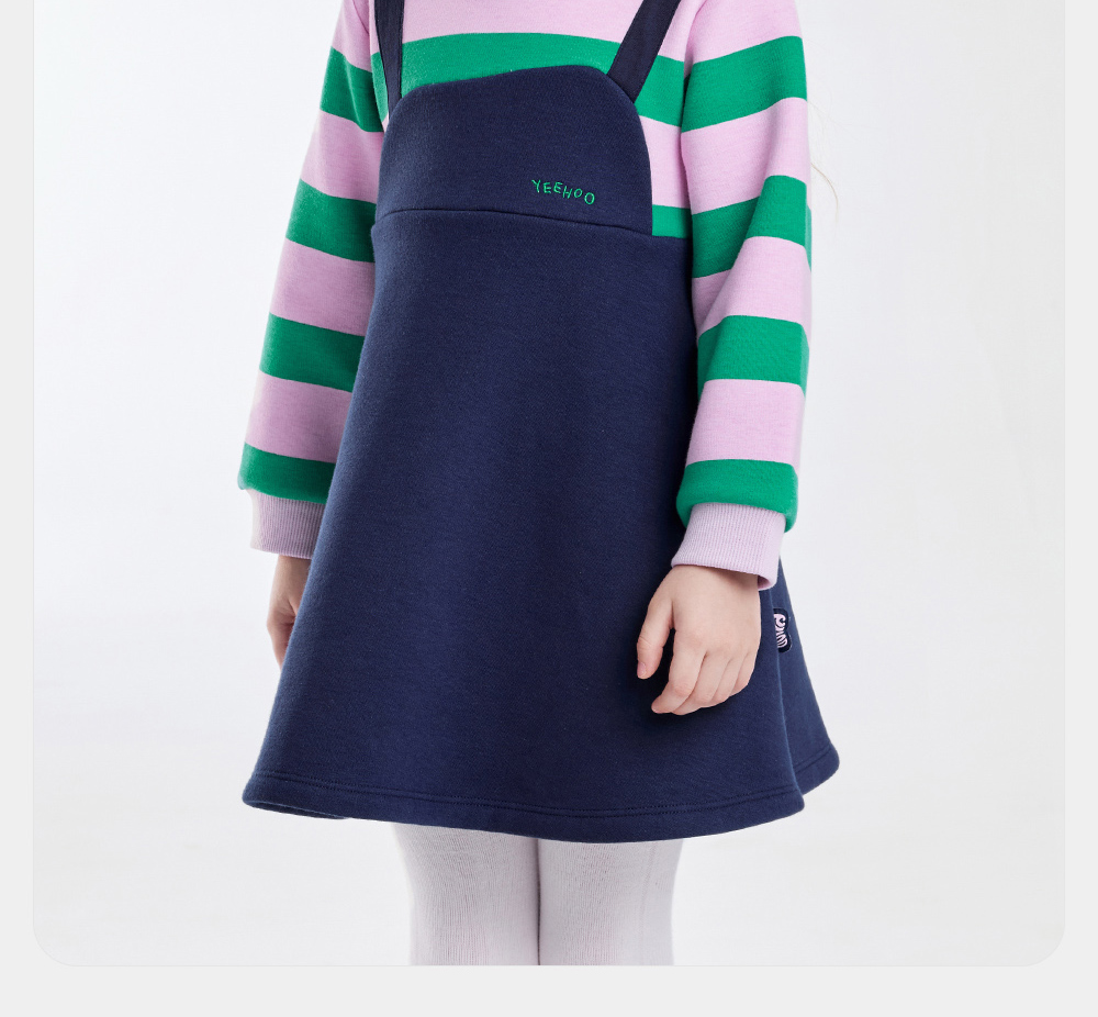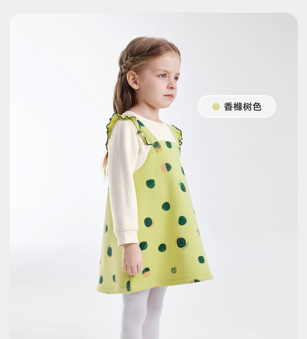 英氏儿童裙子秋季女童长袖连衣裙假两件加绒保暖连衣裙新款