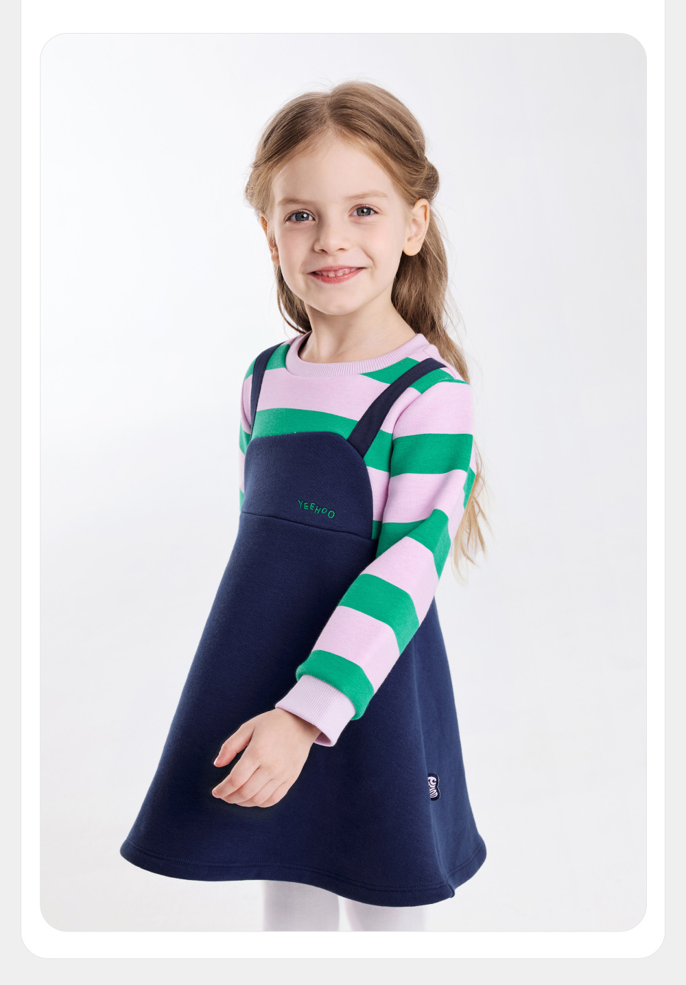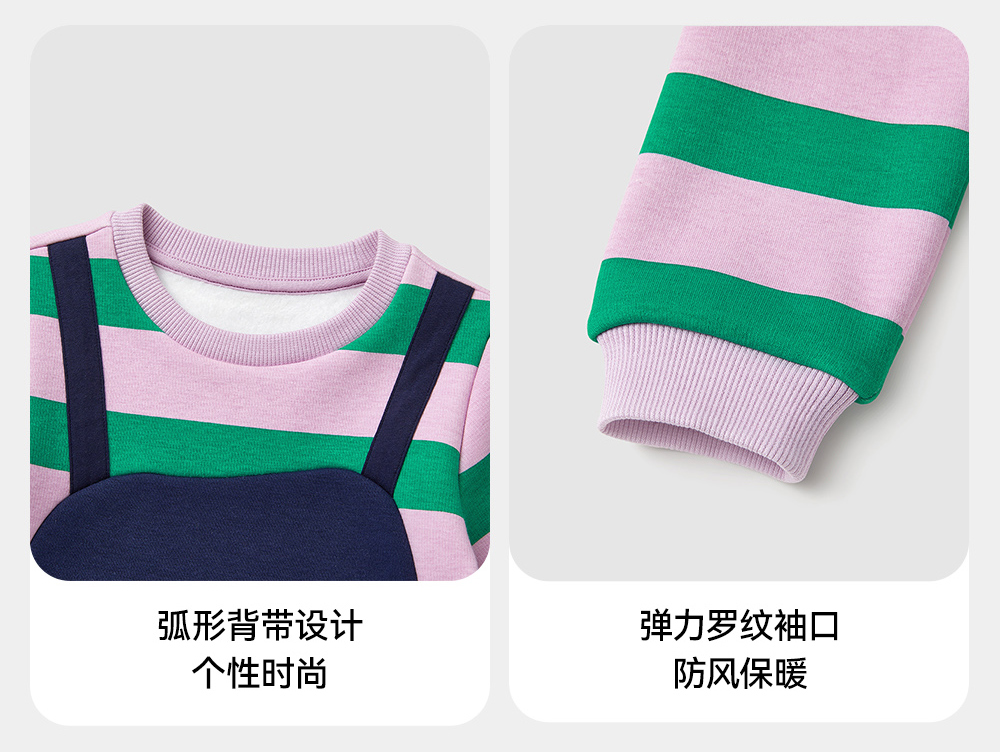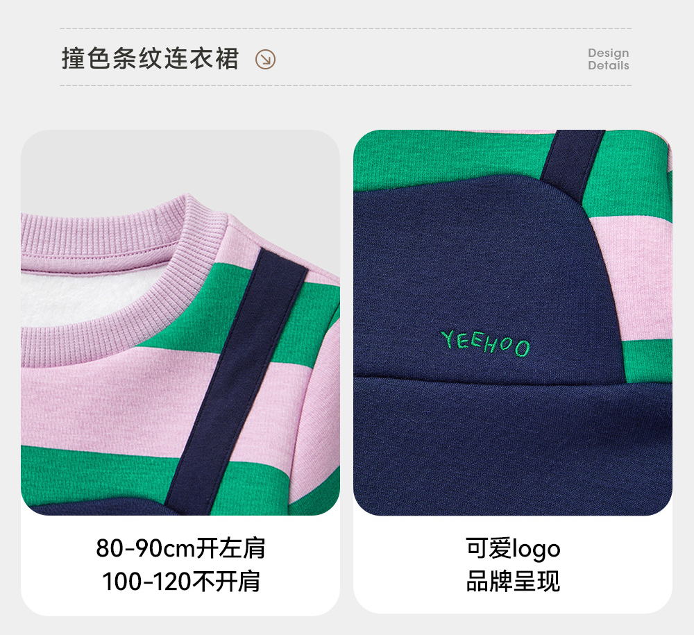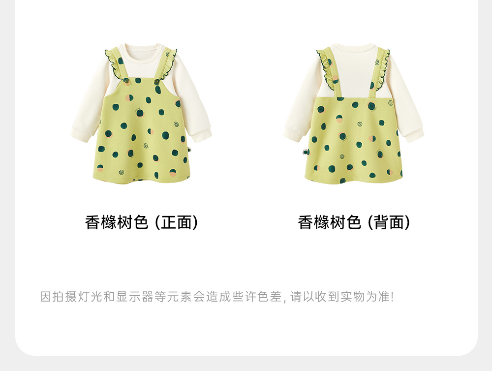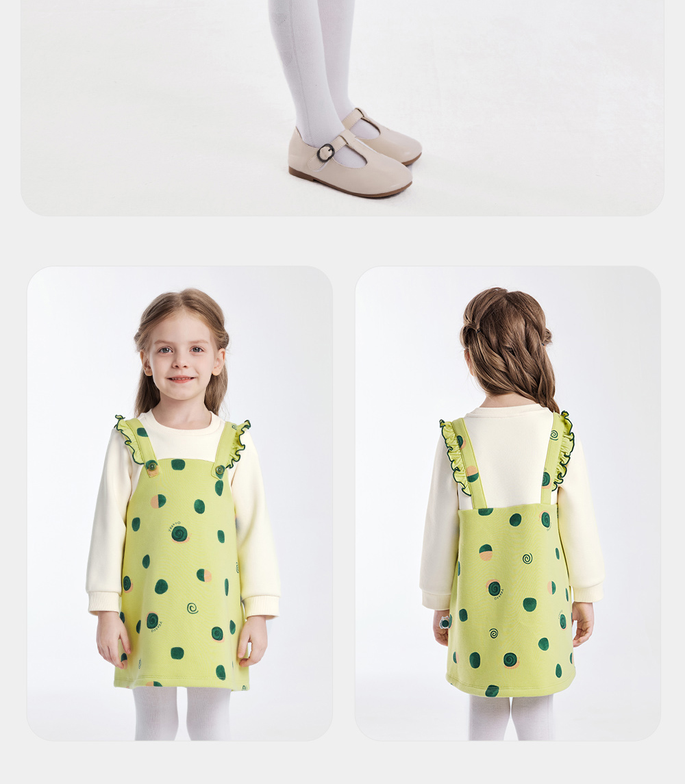 英氏儿童裙子秋季女童长袖连衣裙假两件加绒保暖连衣裙新款