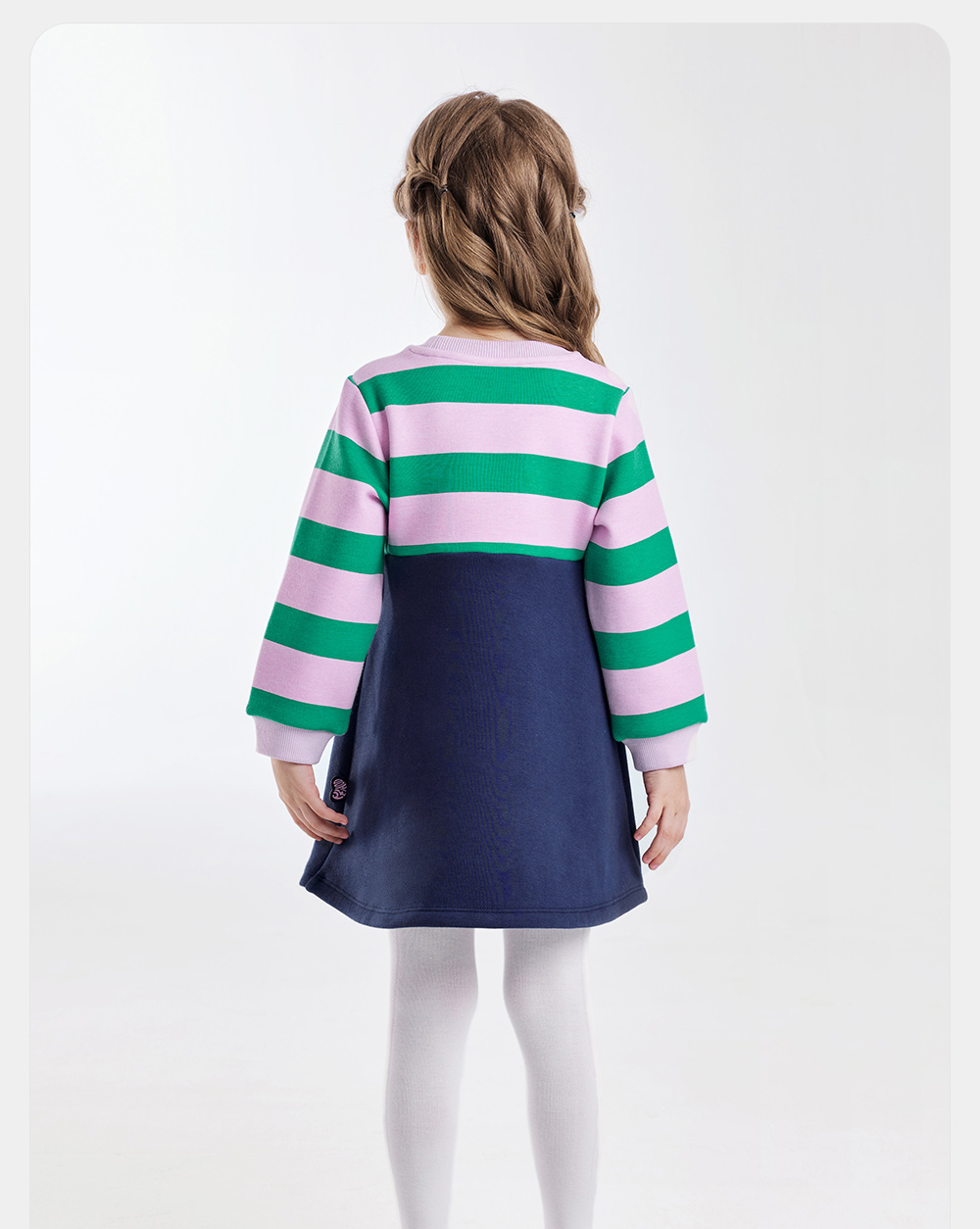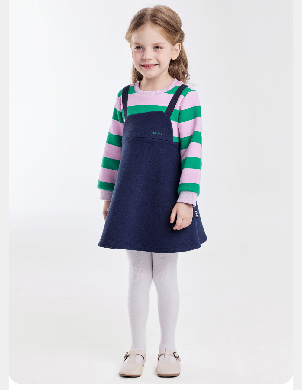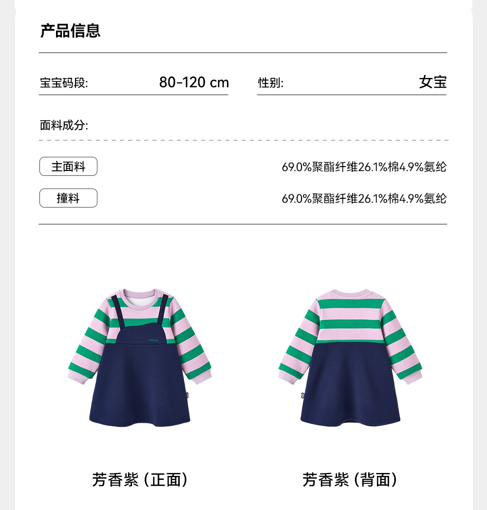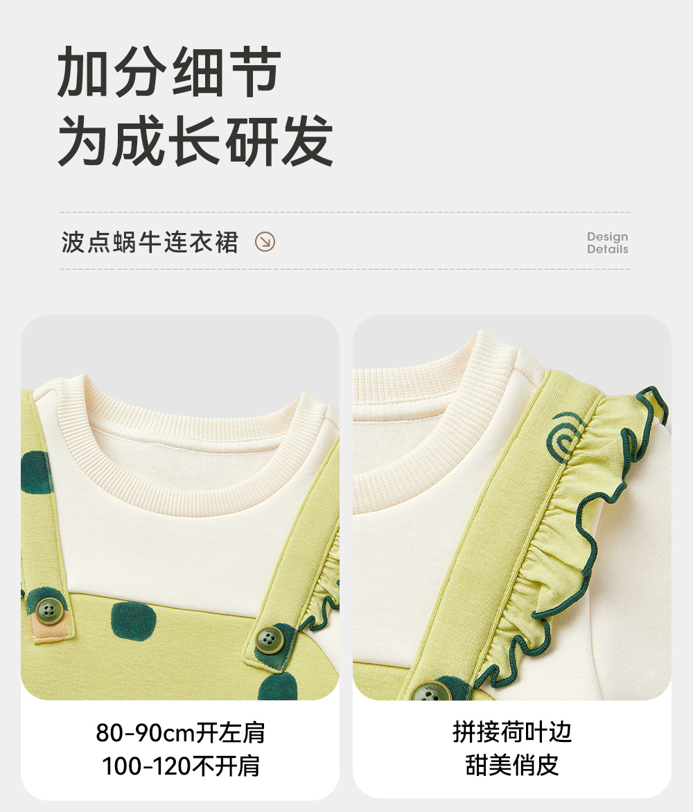 英氏儿童裙子秋季女童长袖连衣裙假两件加绒保暖连衣裙新款