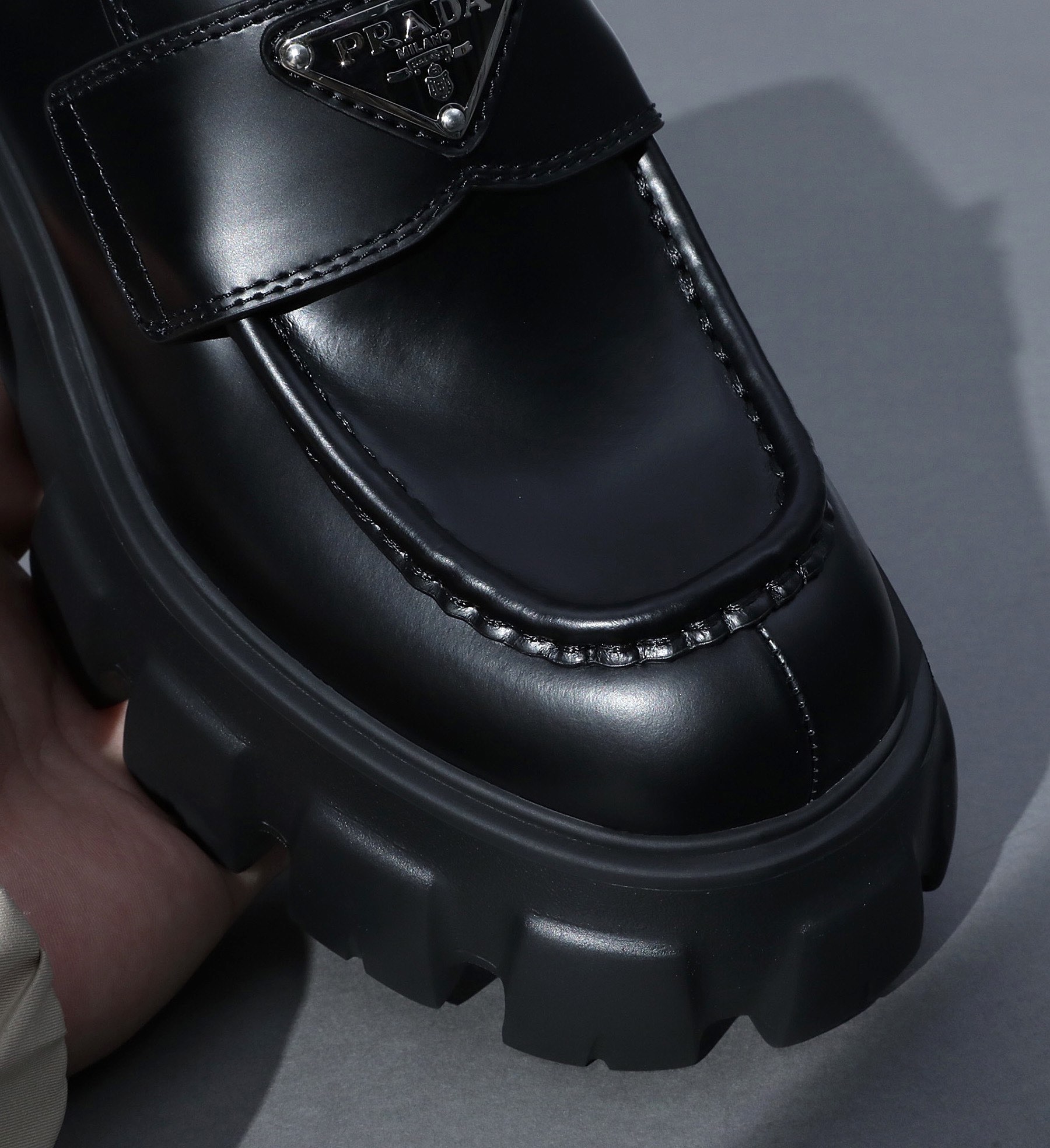 厚底三角标‼️ 莞代公司正品单 普家进口开边珠牛皮 正装楦型 精密缝制车工拼接 新颖独特 内里全小牛皮 标配金标活动垫脚 做工精细 无视市场通货 全套包装齐全重工打造 自留圣品 品质不多提 强推款,原厂Tpu材质模具大底,跟高6-8cm