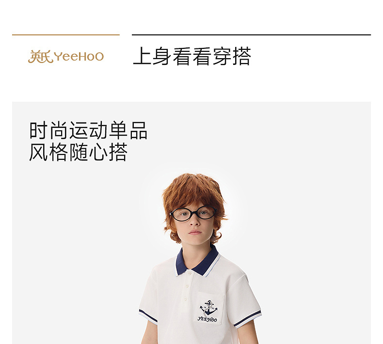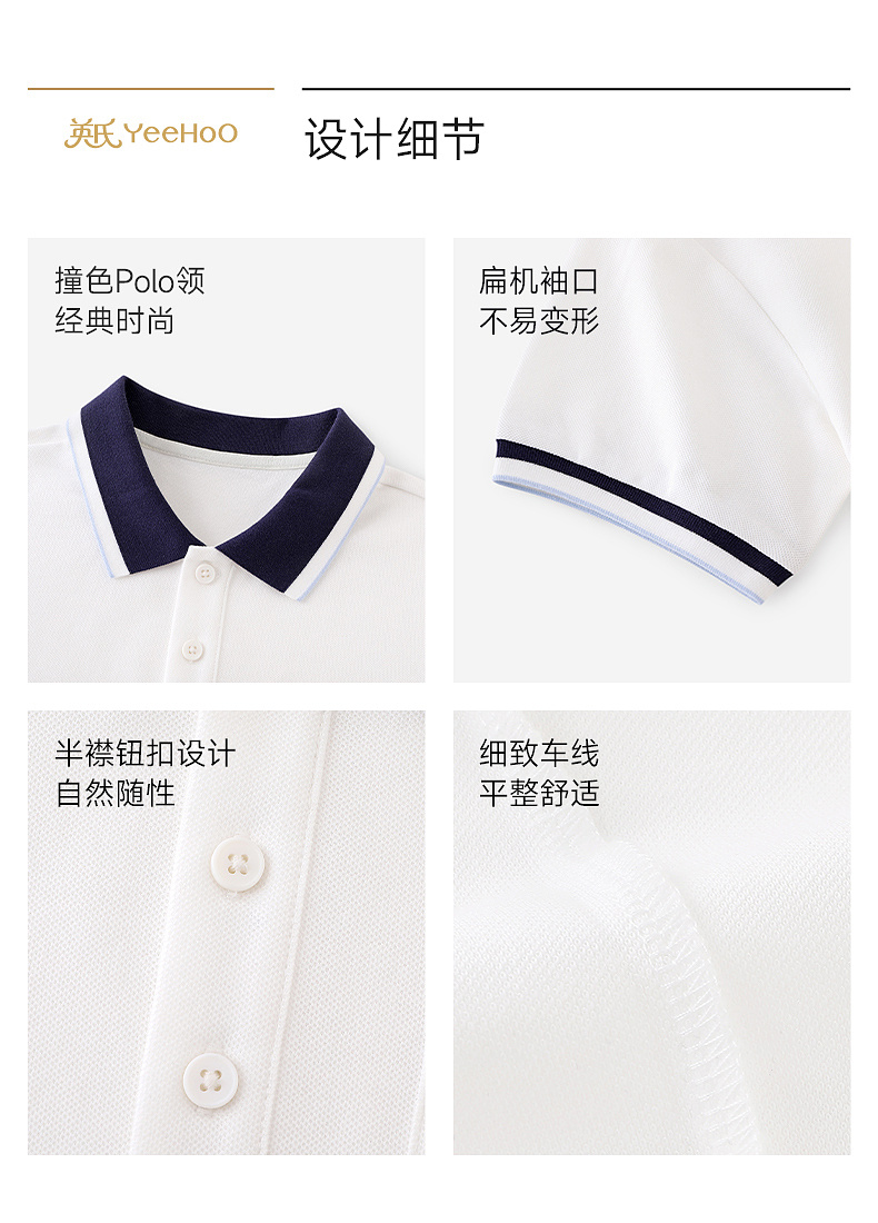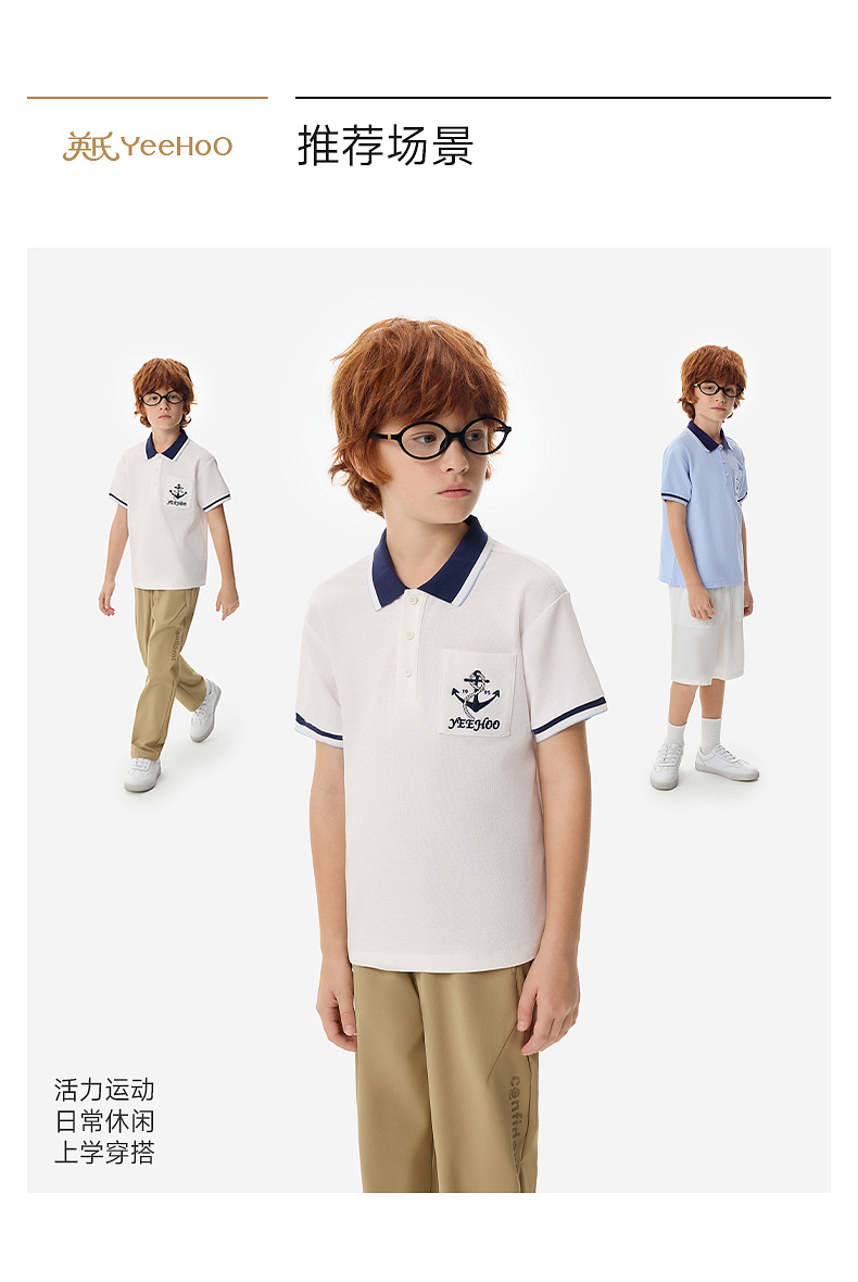 英氏儿童T恤男童夏季凉感抑菌短袖T恤POLO衫翻领学院休闲百搭上衣