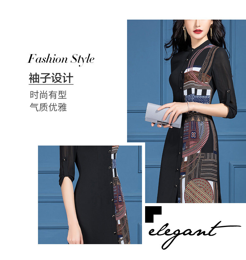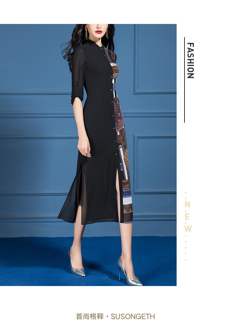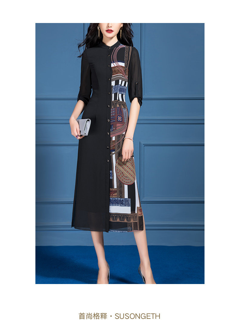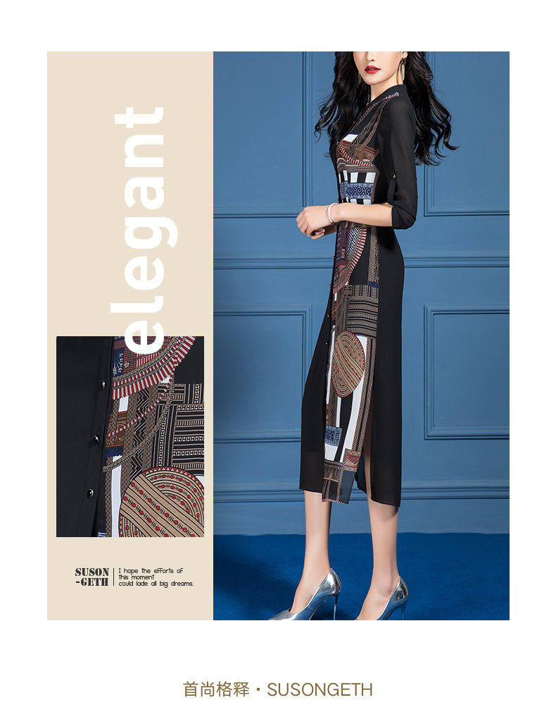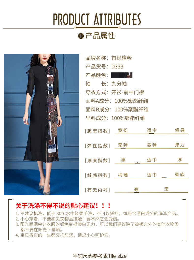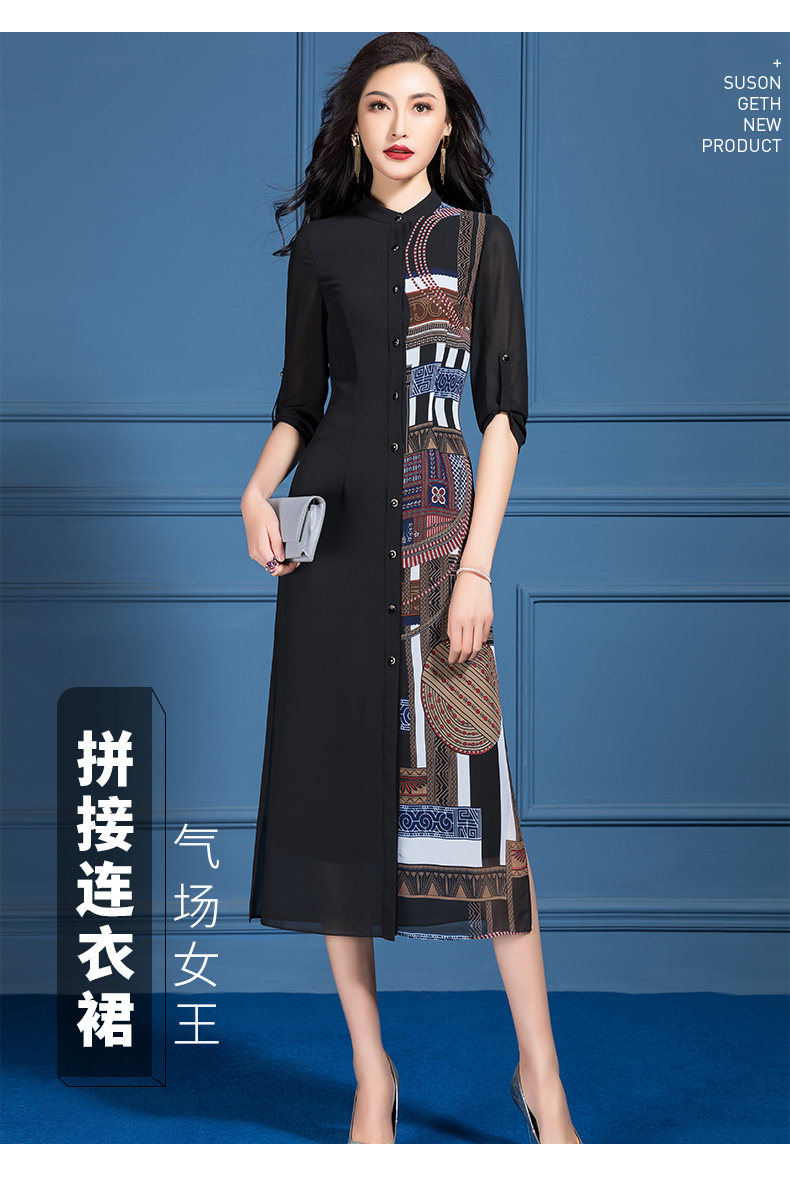 SSGS-D333新款气质收腰修身印花拼接雪纺开衫连衣裙