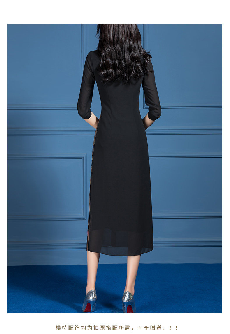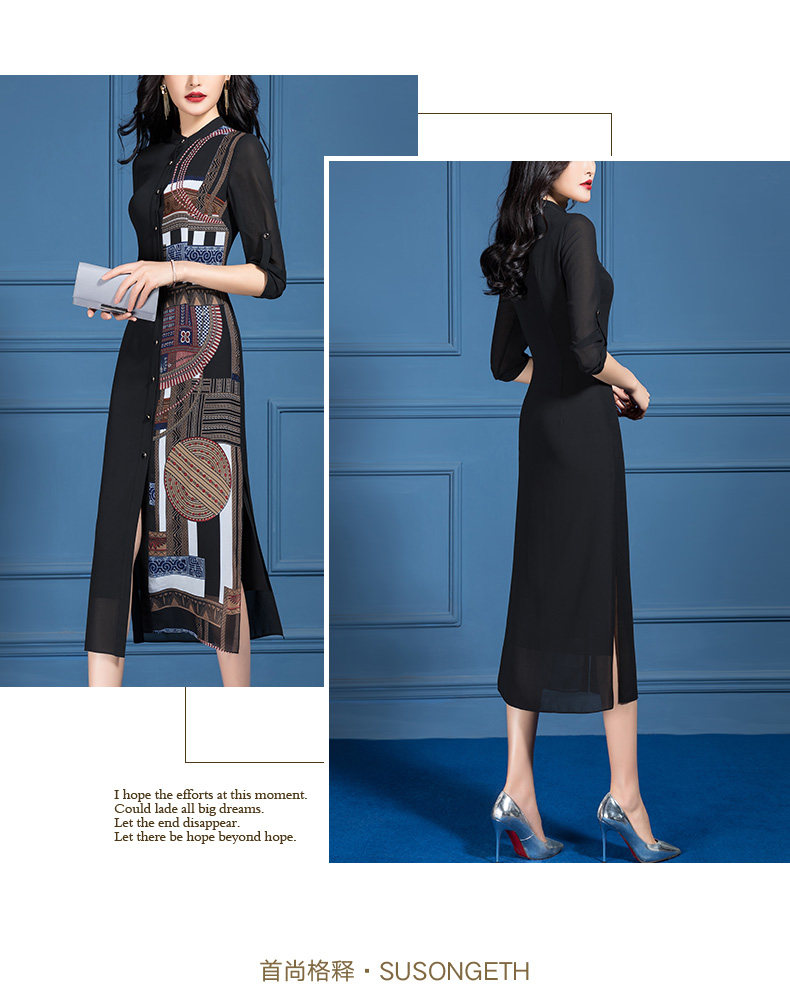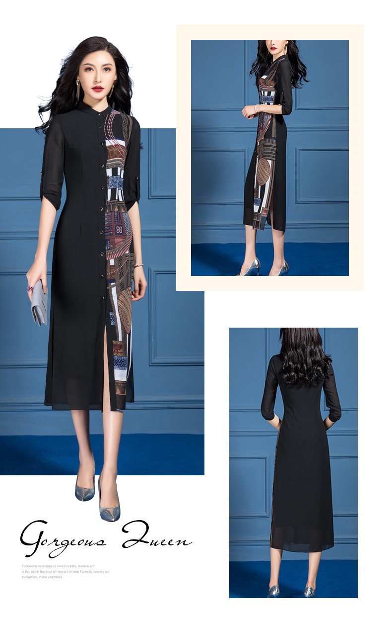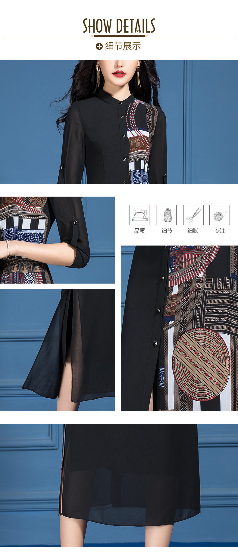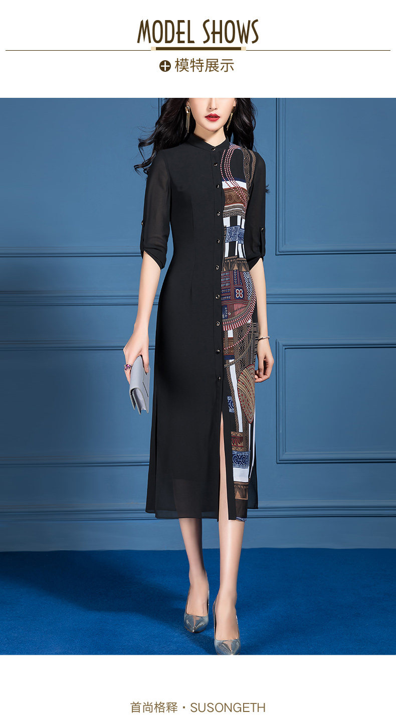 SSGS-D333新款气质收腰修身印花拼接雪纺开衫连衣裙