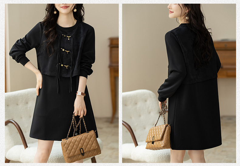 AHM msdm2788新中式复古盘扣连衣裙气质减龄裙 商品图2