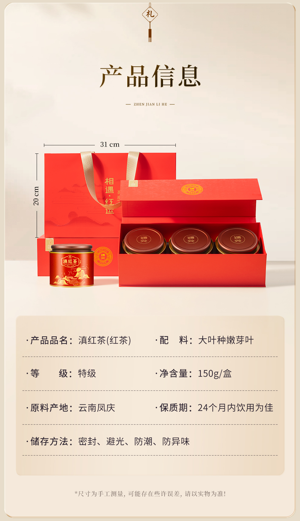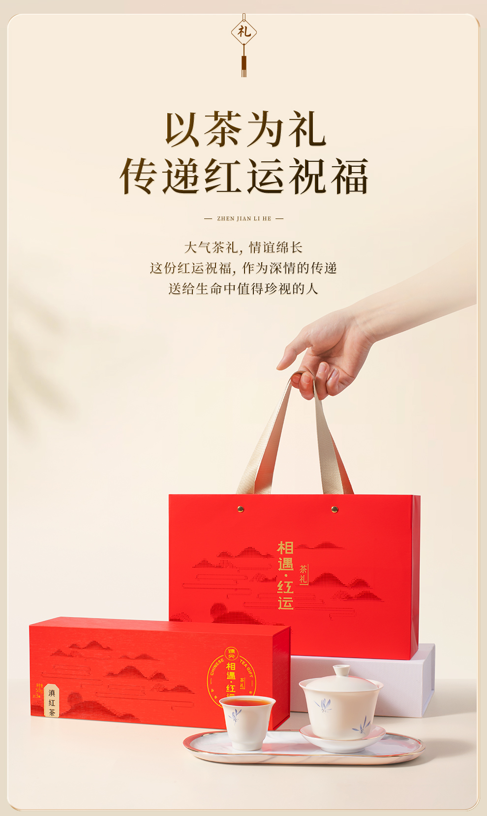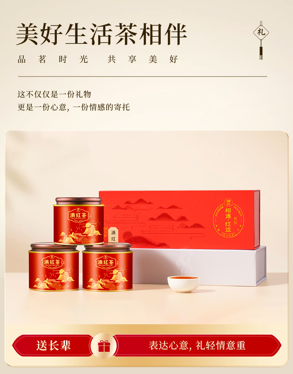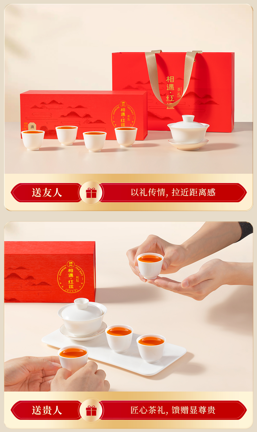 【臻尖-滇红相遇红运红色礼盒】茶叶礼盒装送礼春节伴手礼送人长辈特级高档红茶礼盒官方正品