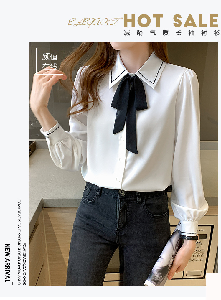 KQL 617T8050加绒衬衫蝴蝶结设计感加厚保暖衬衫