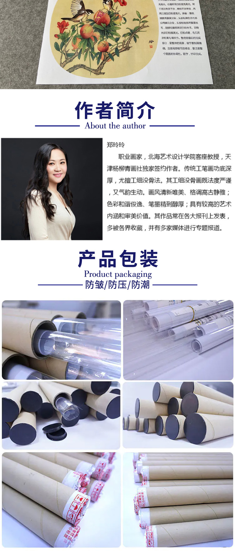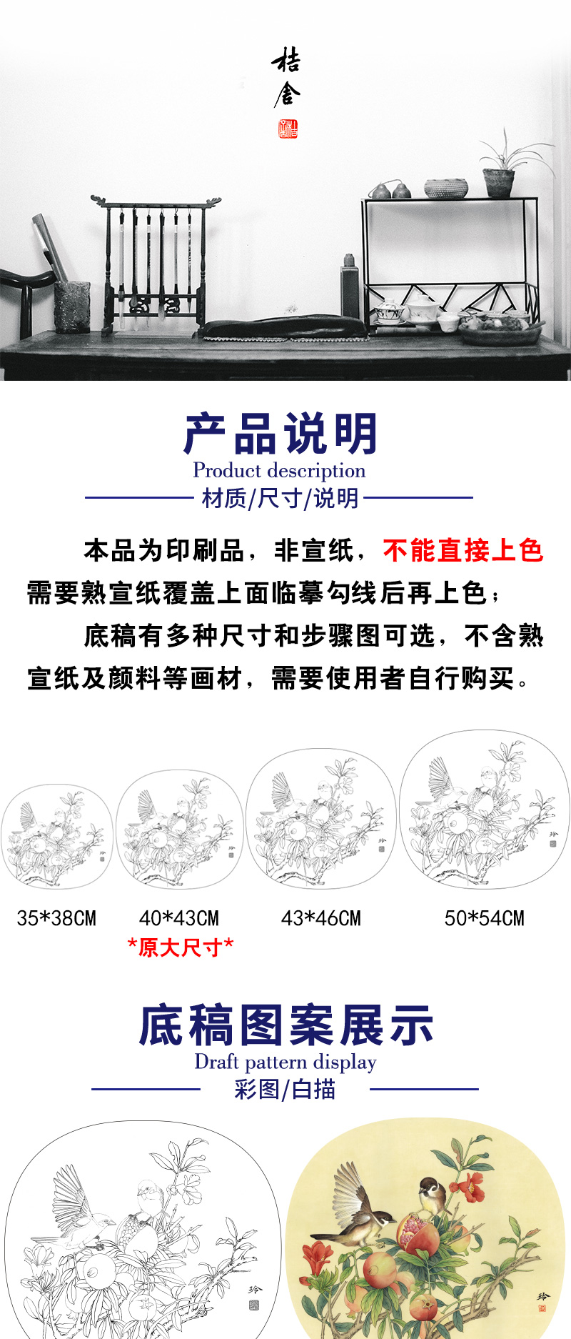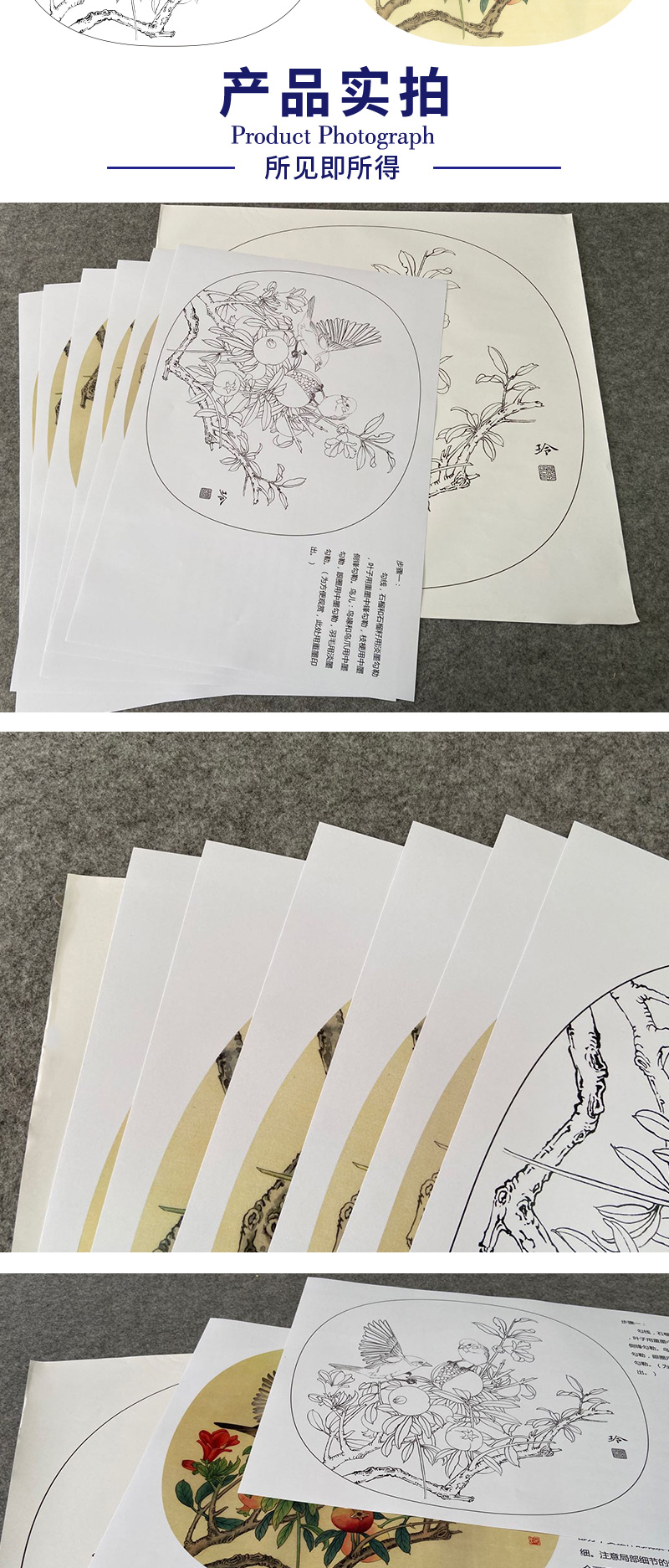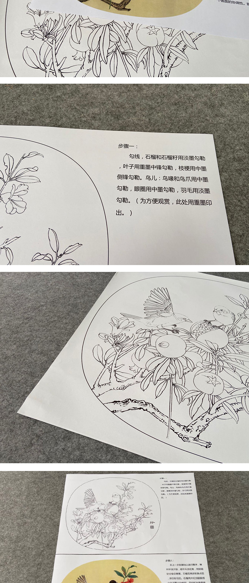 【有步骤、大彩图】郑玲玲工笔画白描底稿小品《硕果满枝头》石榴初学者临摹花鸟线稿ZL84