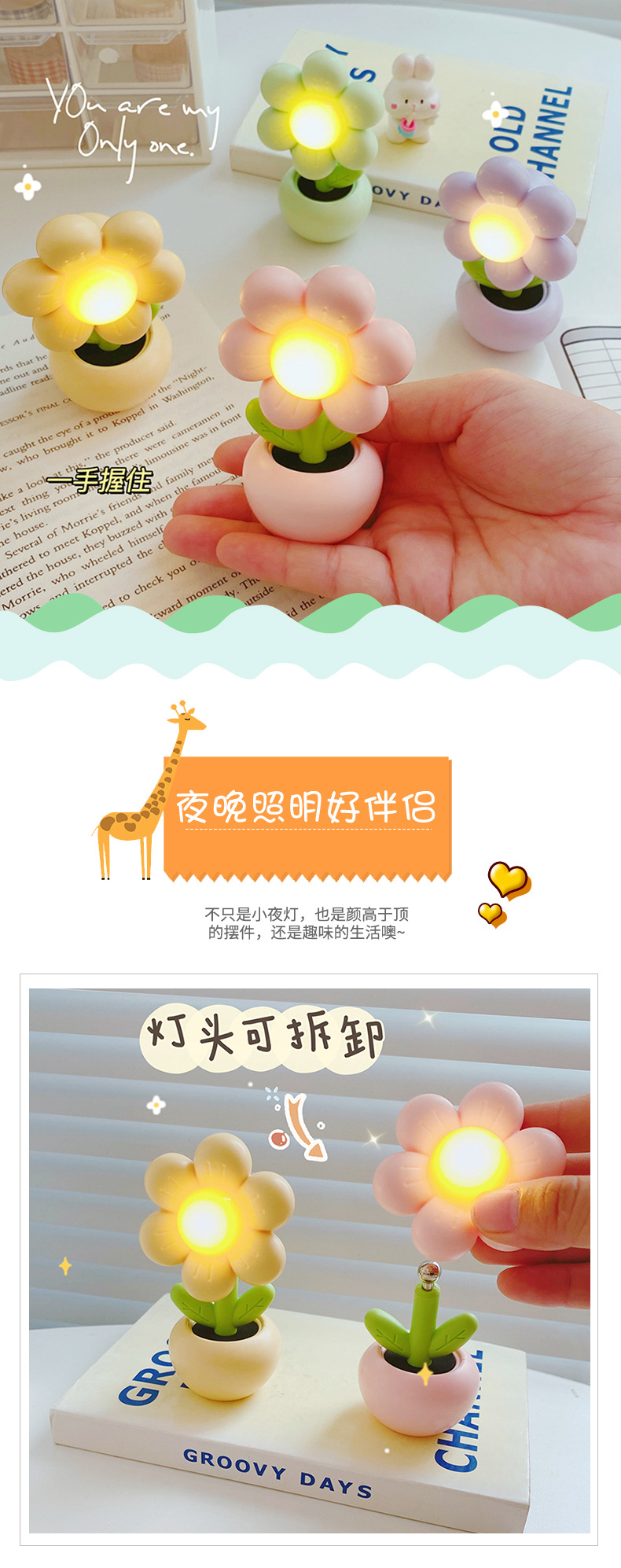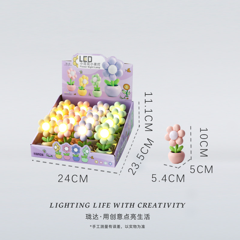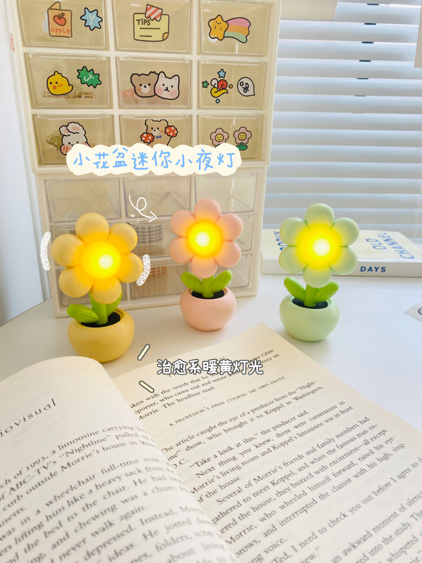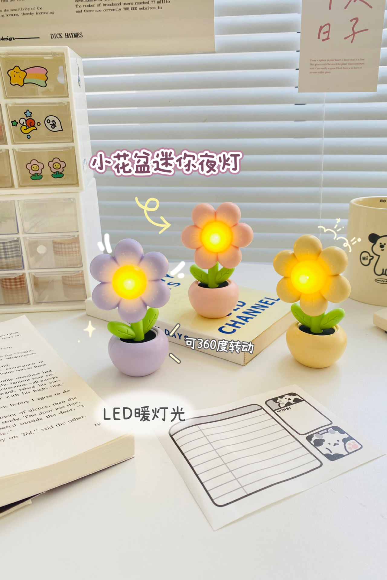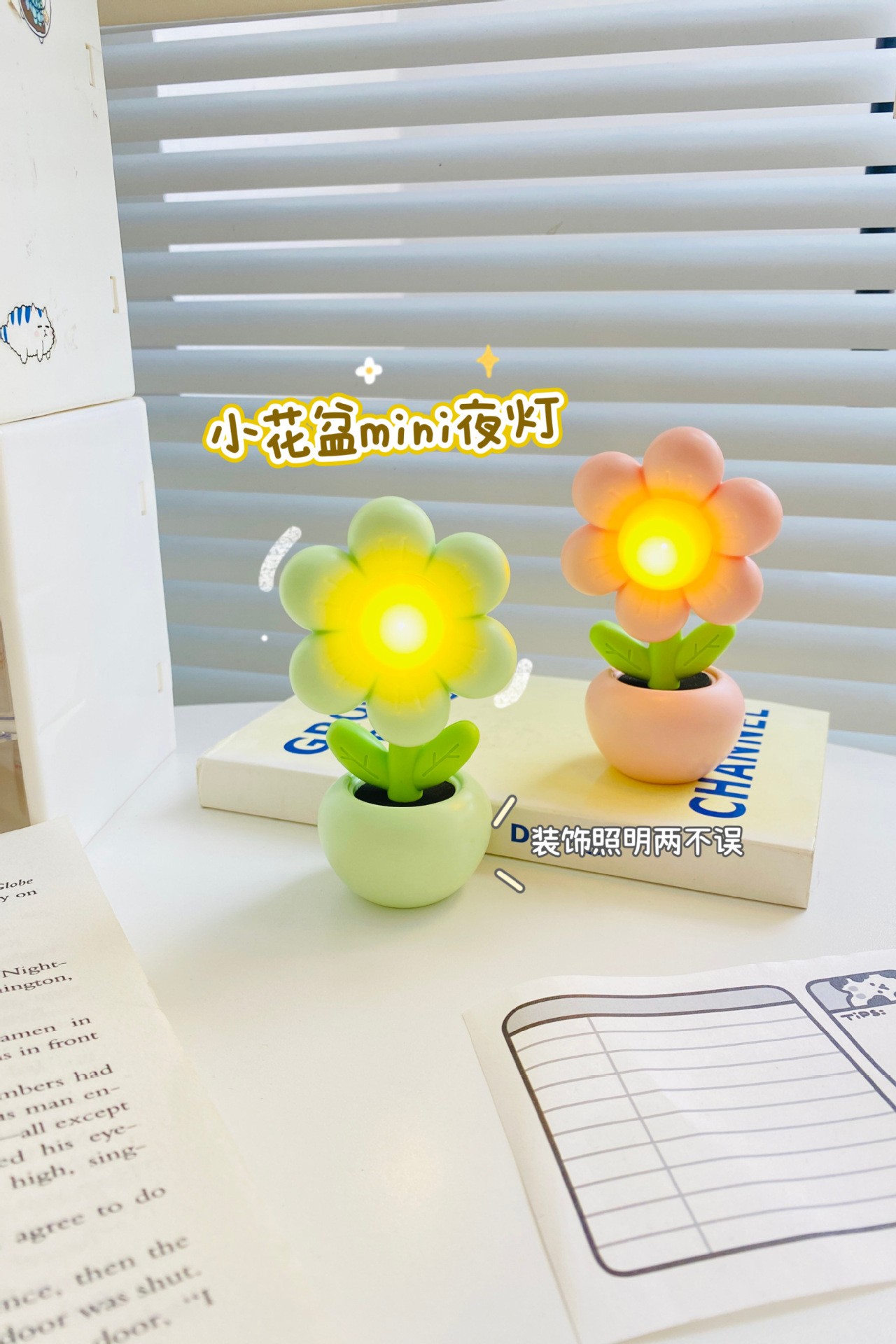【可爱造型,治愈灯光~】迷你小花可爱卧室小夜灯 创意床头摆件 奶油胶DIY夜灯 毕业礼物台灯-QQ