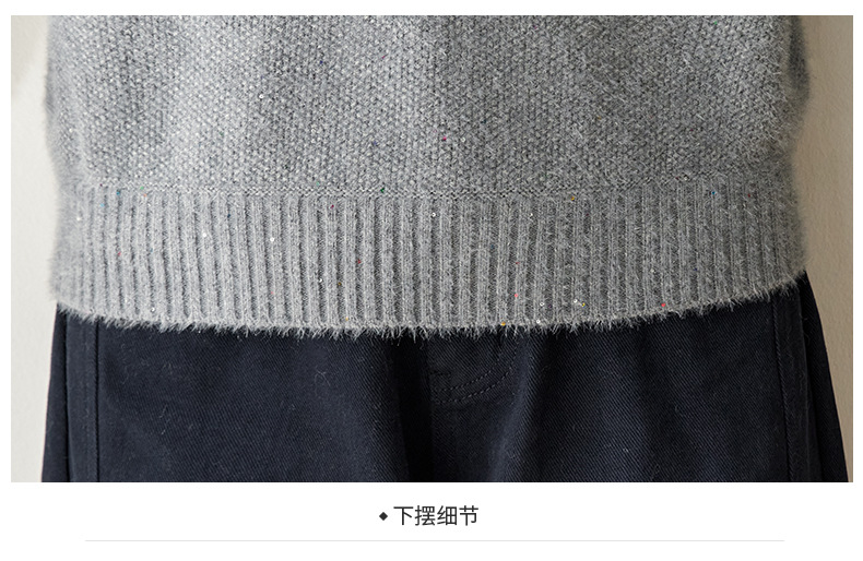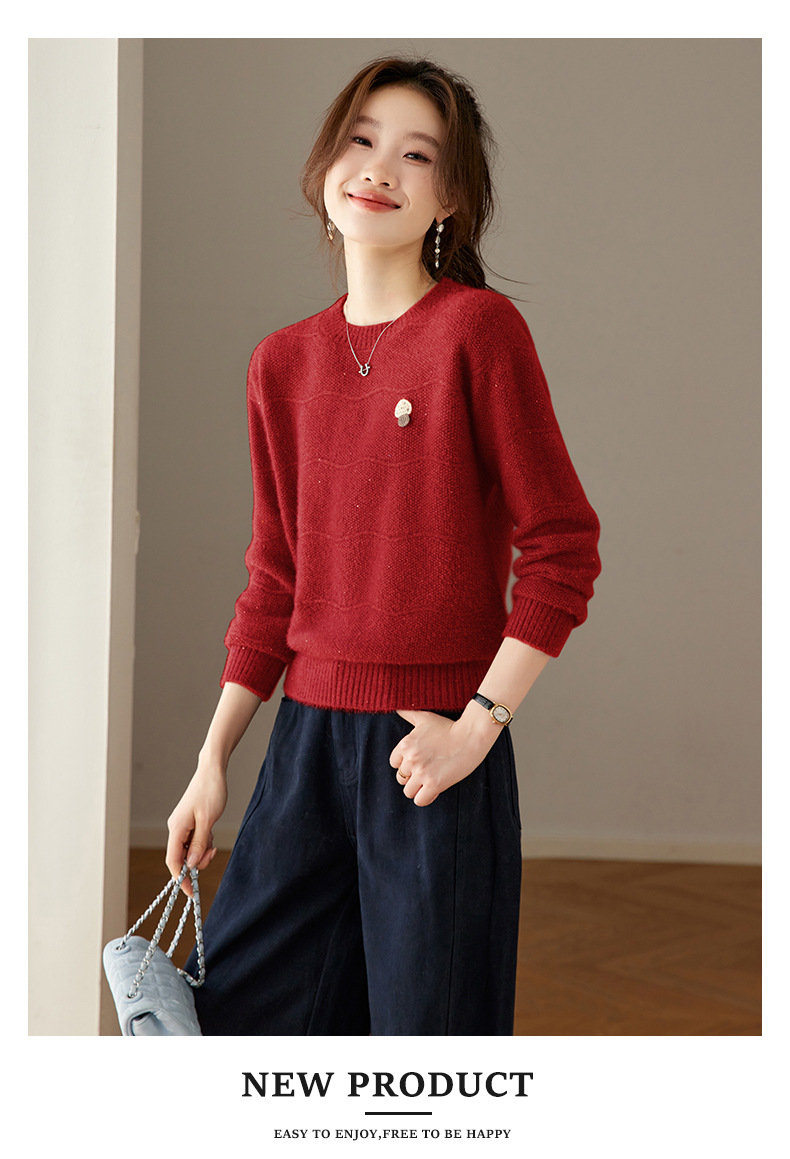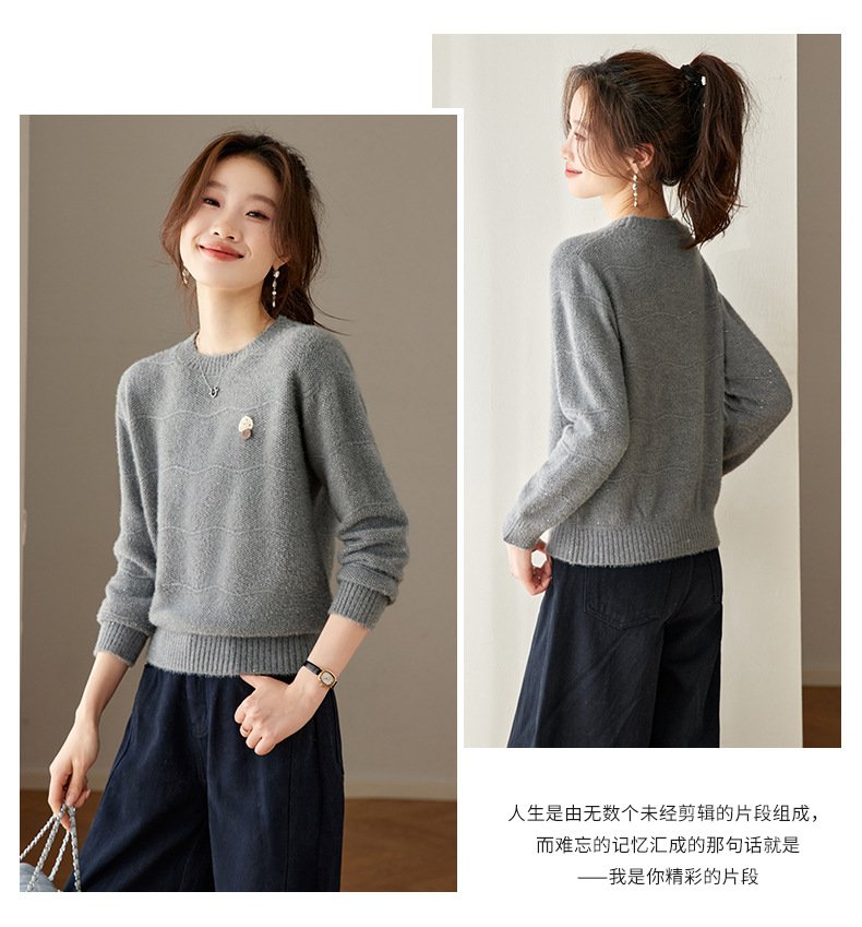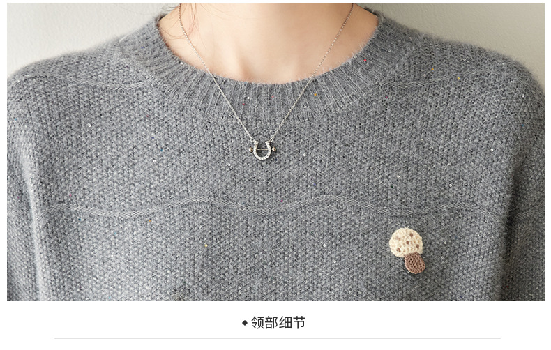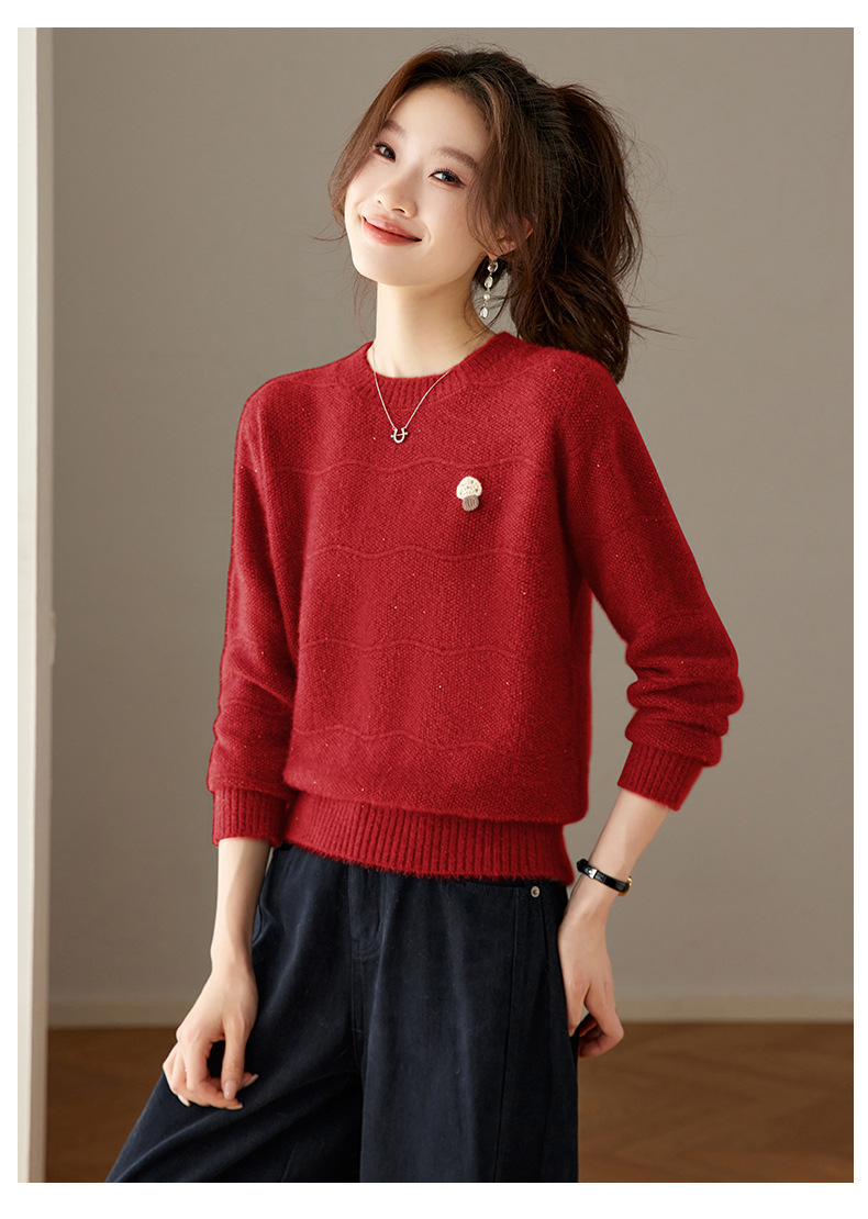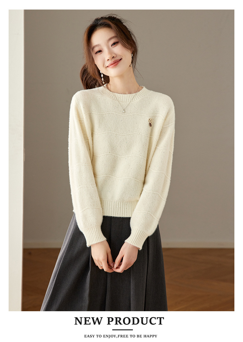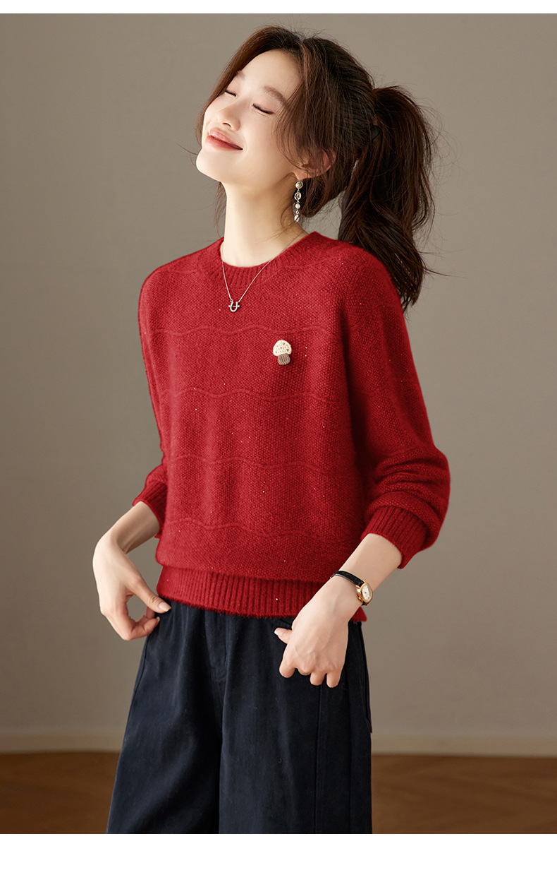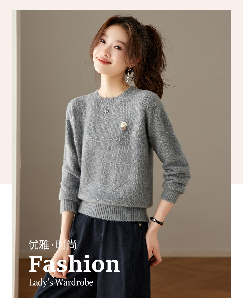 CC韩系刺绣圆领毛衣女秋冬宽松慵懒风针织衫内搭高级感保暖打底上衣
