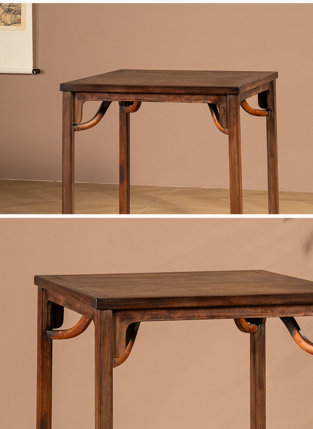 清 红木刀牙板霸王枨方桌