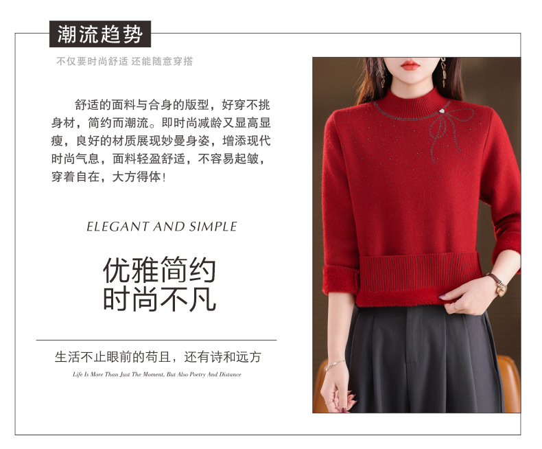 CC女士加绒毛衣2025新款时髦时尚洋气保暖打底衫一体绒内搭上衣