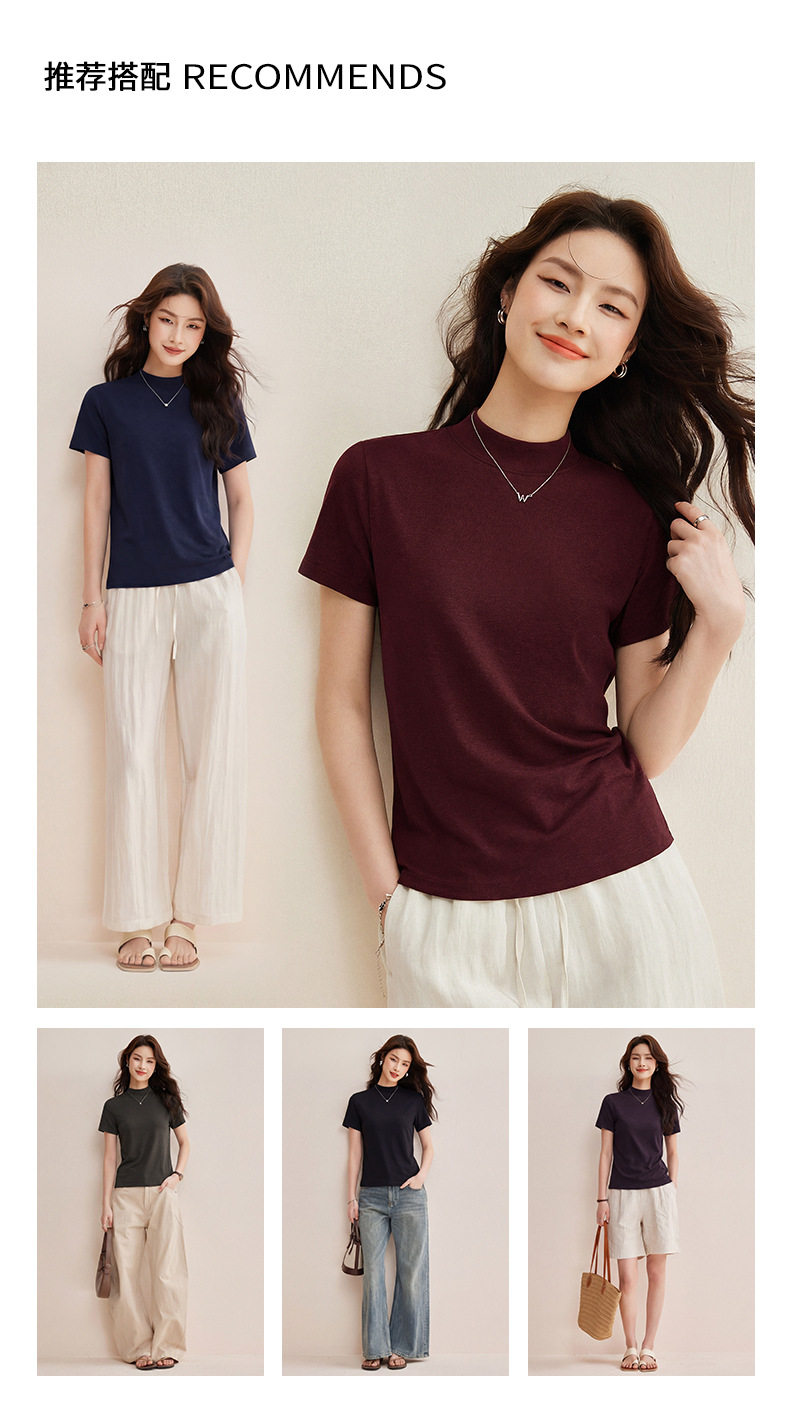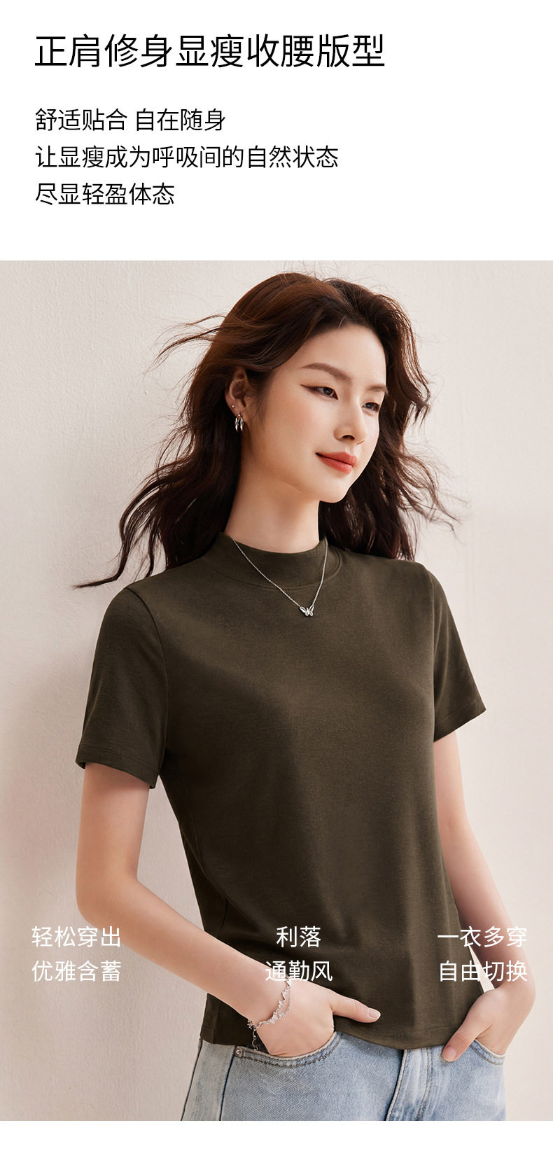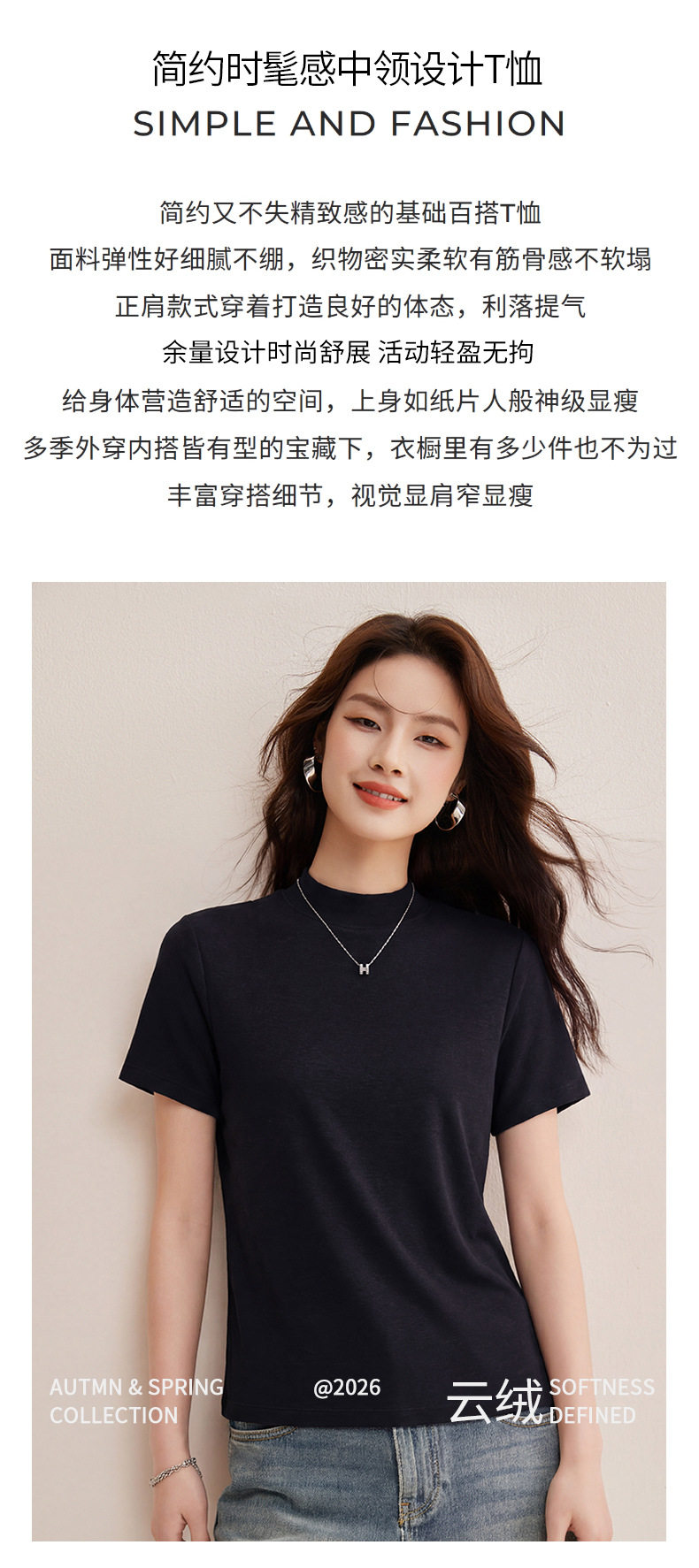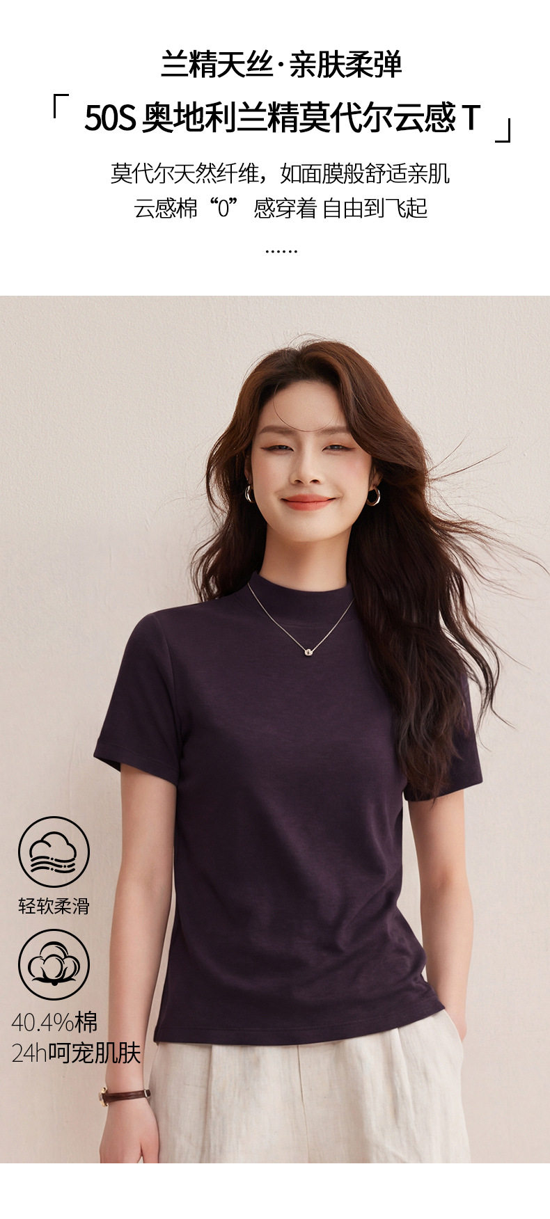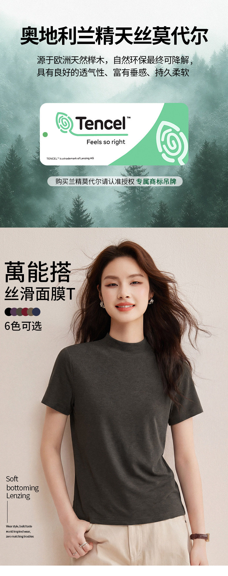 「自j」全新升级【铂金会员119/天猫159/差价40】(73227)洛诗琳新款三合一面膜T2026夏季兰精天丝小立领短袖T恤女