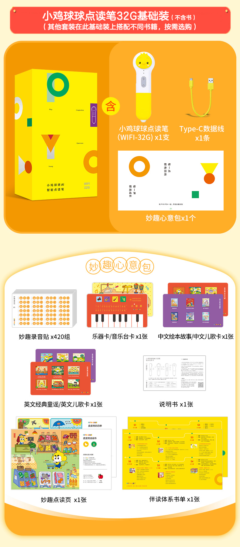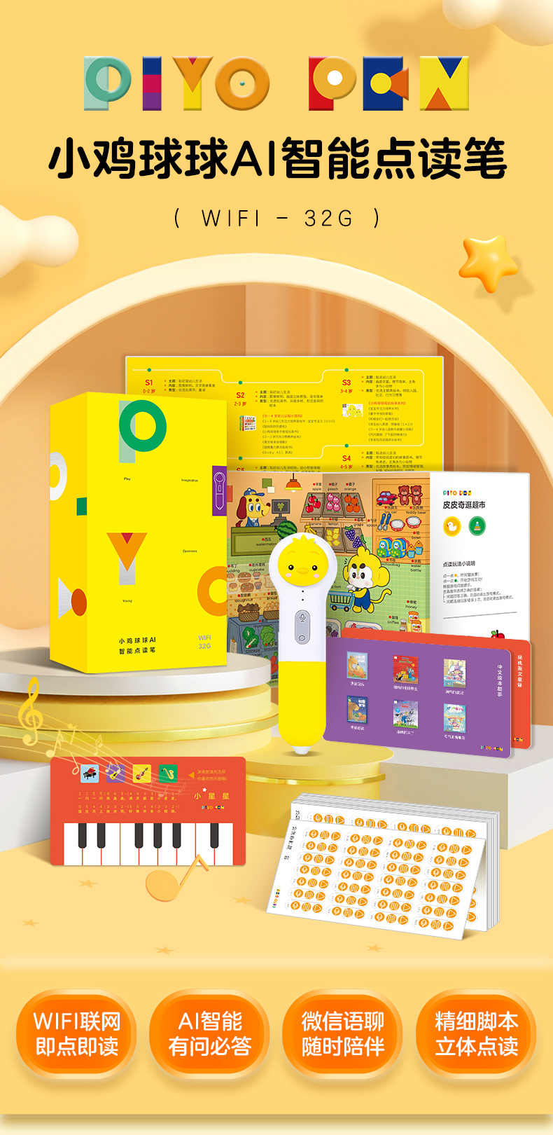 【0-8岁多套图书组合装】PIYO PEN小鸡球球点读笔(WIFI/32G)+幼儿早教启蒙