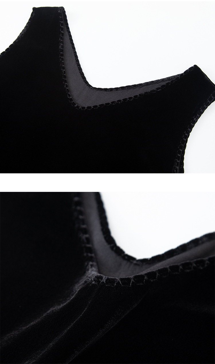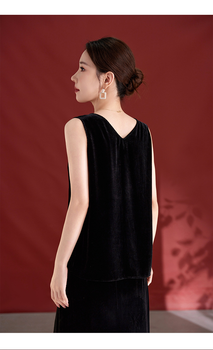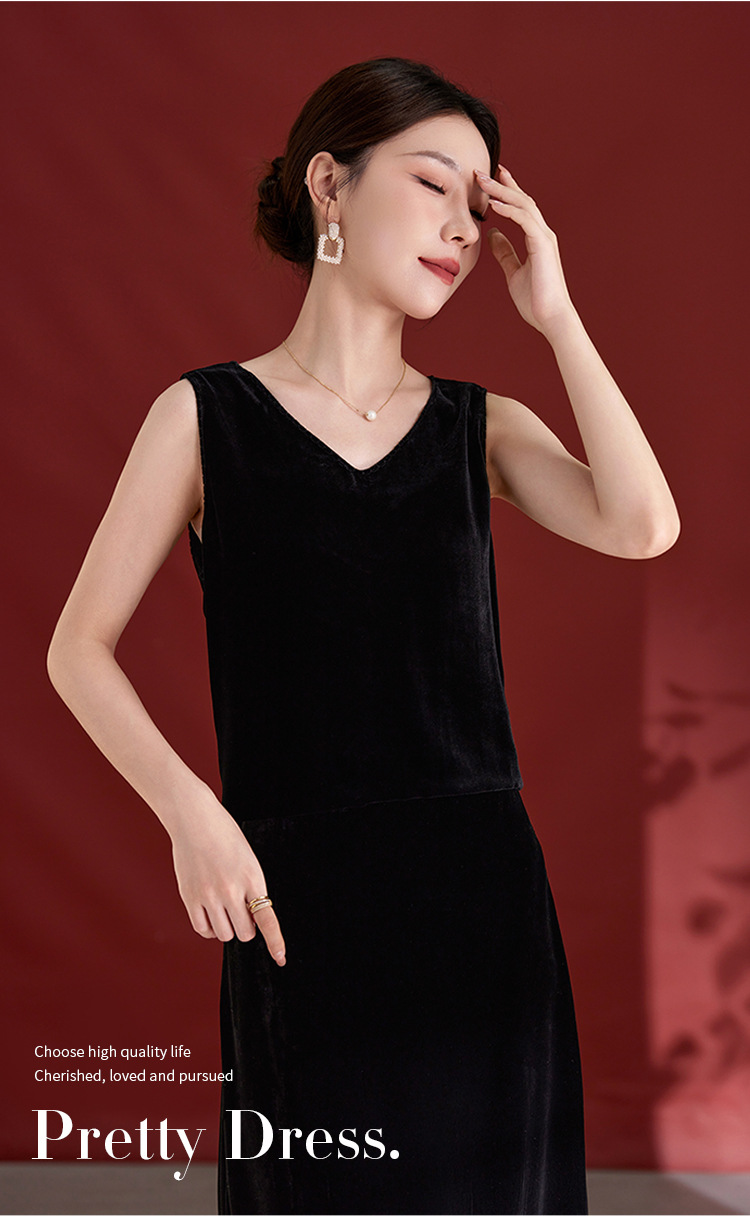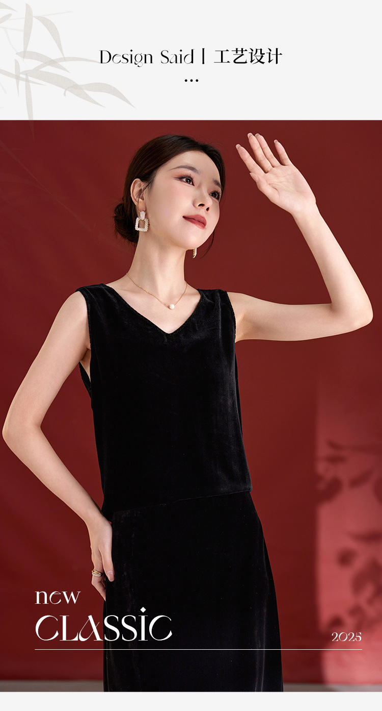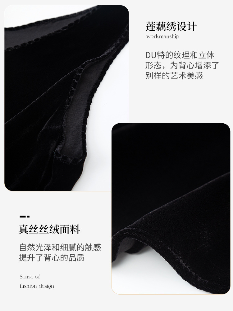 QS黑色丝绒吊带背心女内搭露肩100%桑蚕丝纯色无袖舒适透气百搭1793