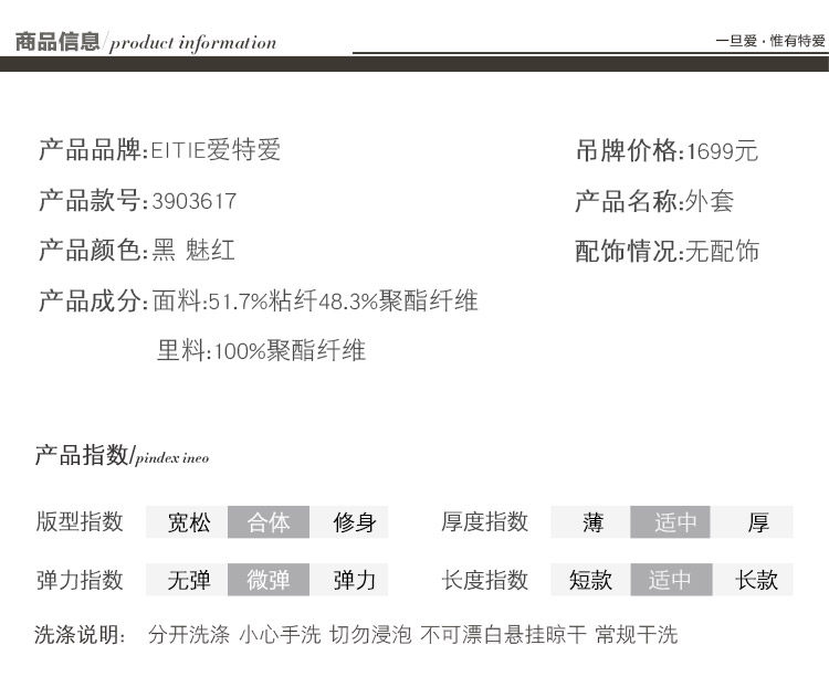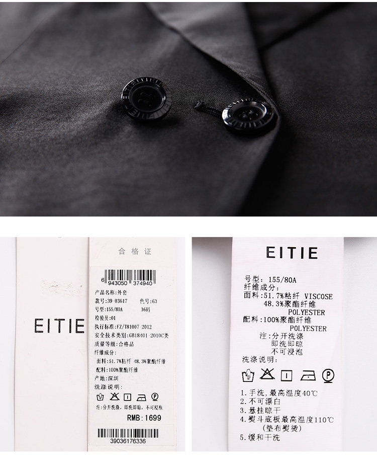 EITIE爱特爱秋冬新款修身显瘦女士小西装单排扣商务短外套3903617