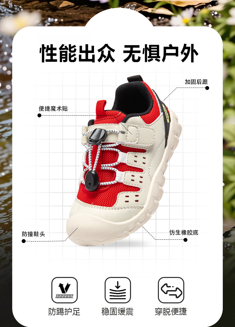【ZY马骑顿】童鞋夏季男童单网运动鞋旋钮扣女童网面透气跑