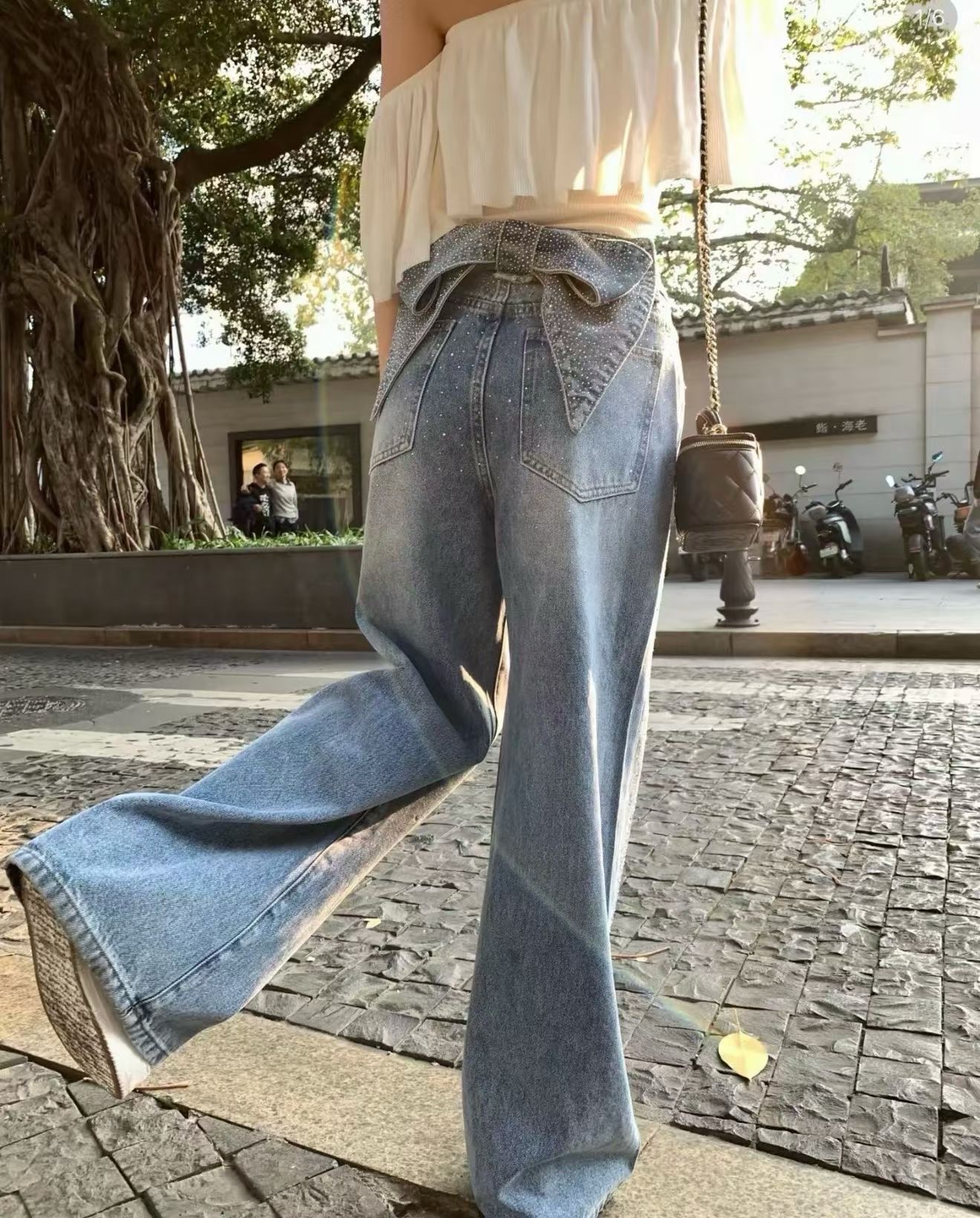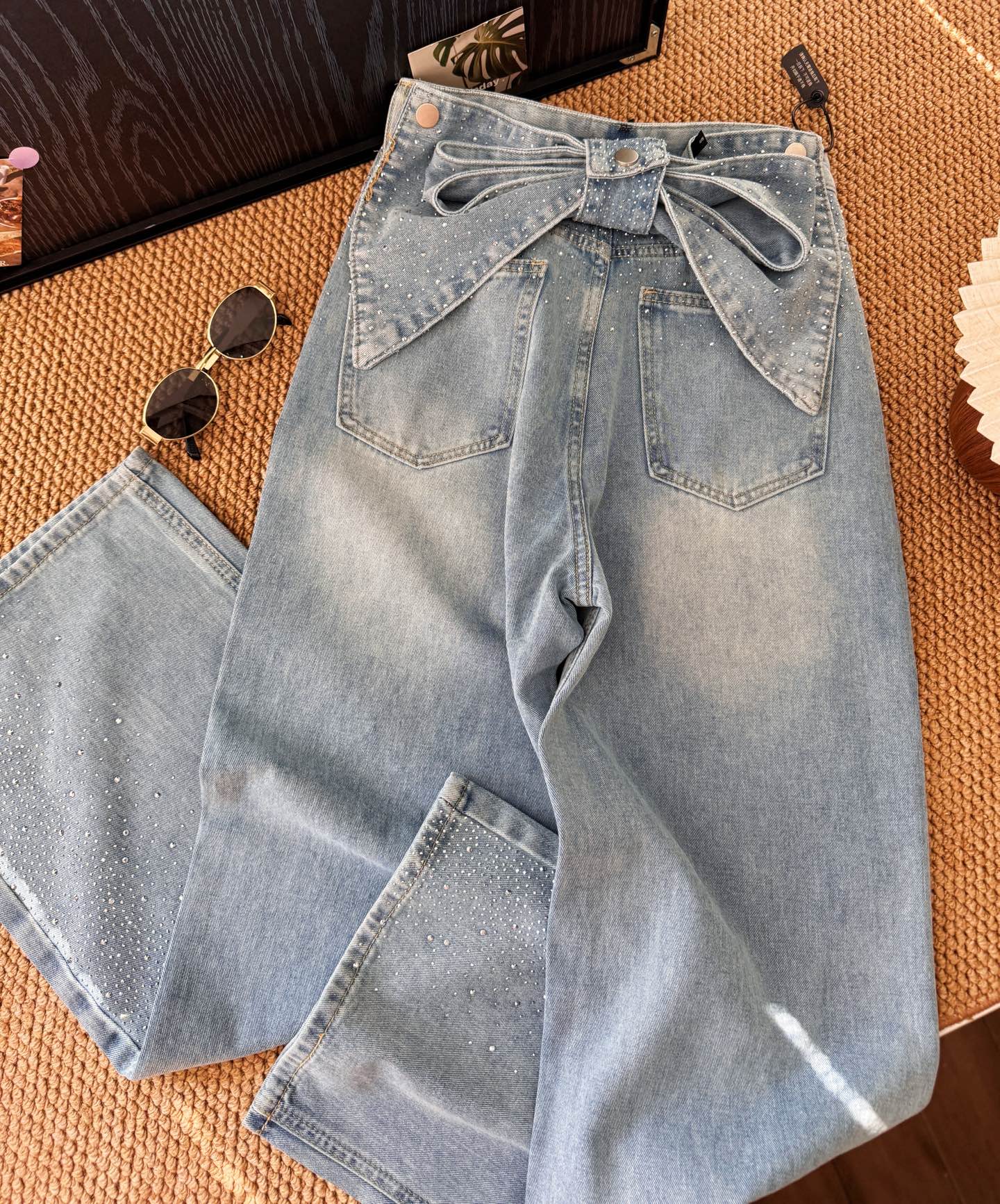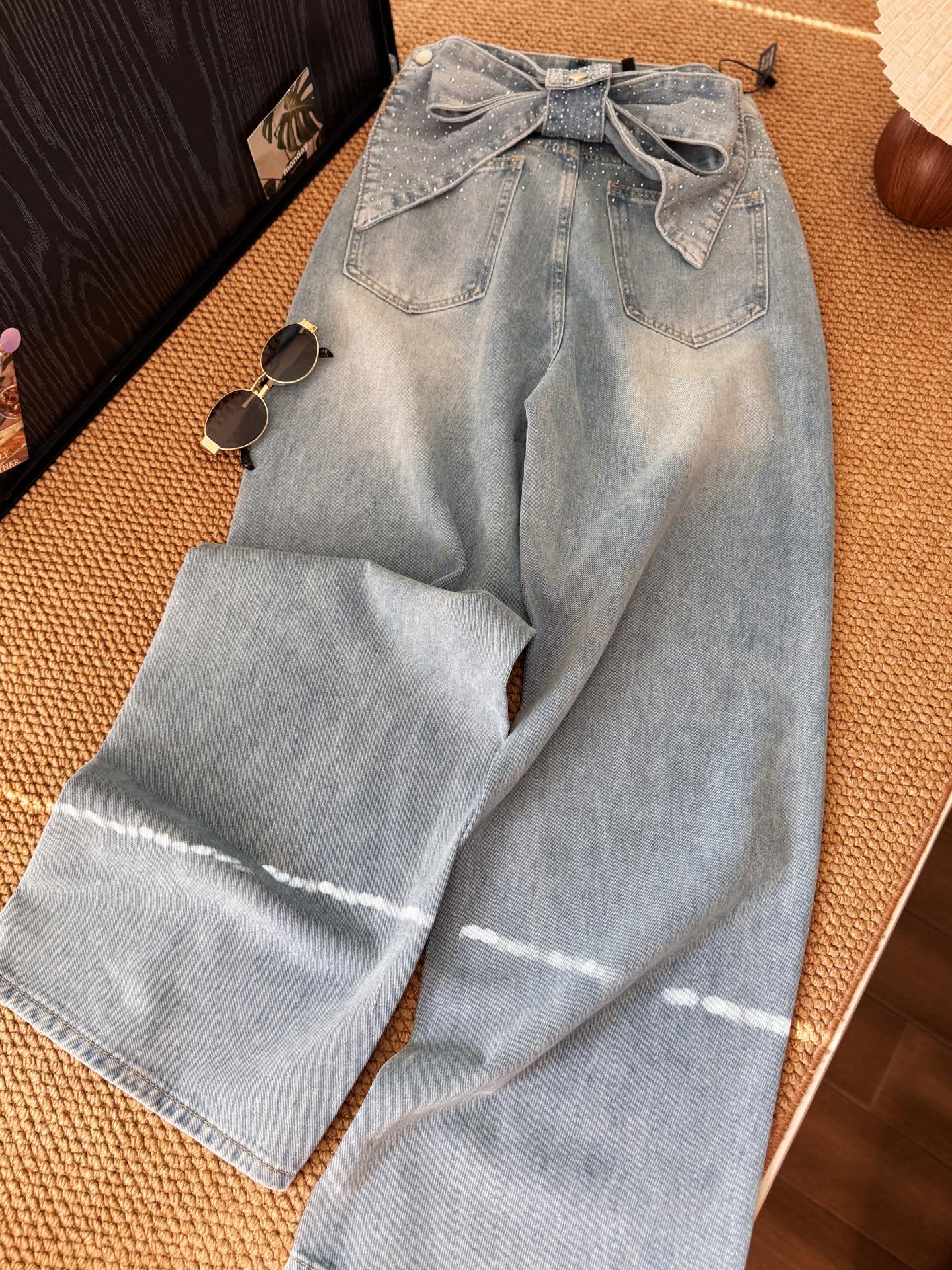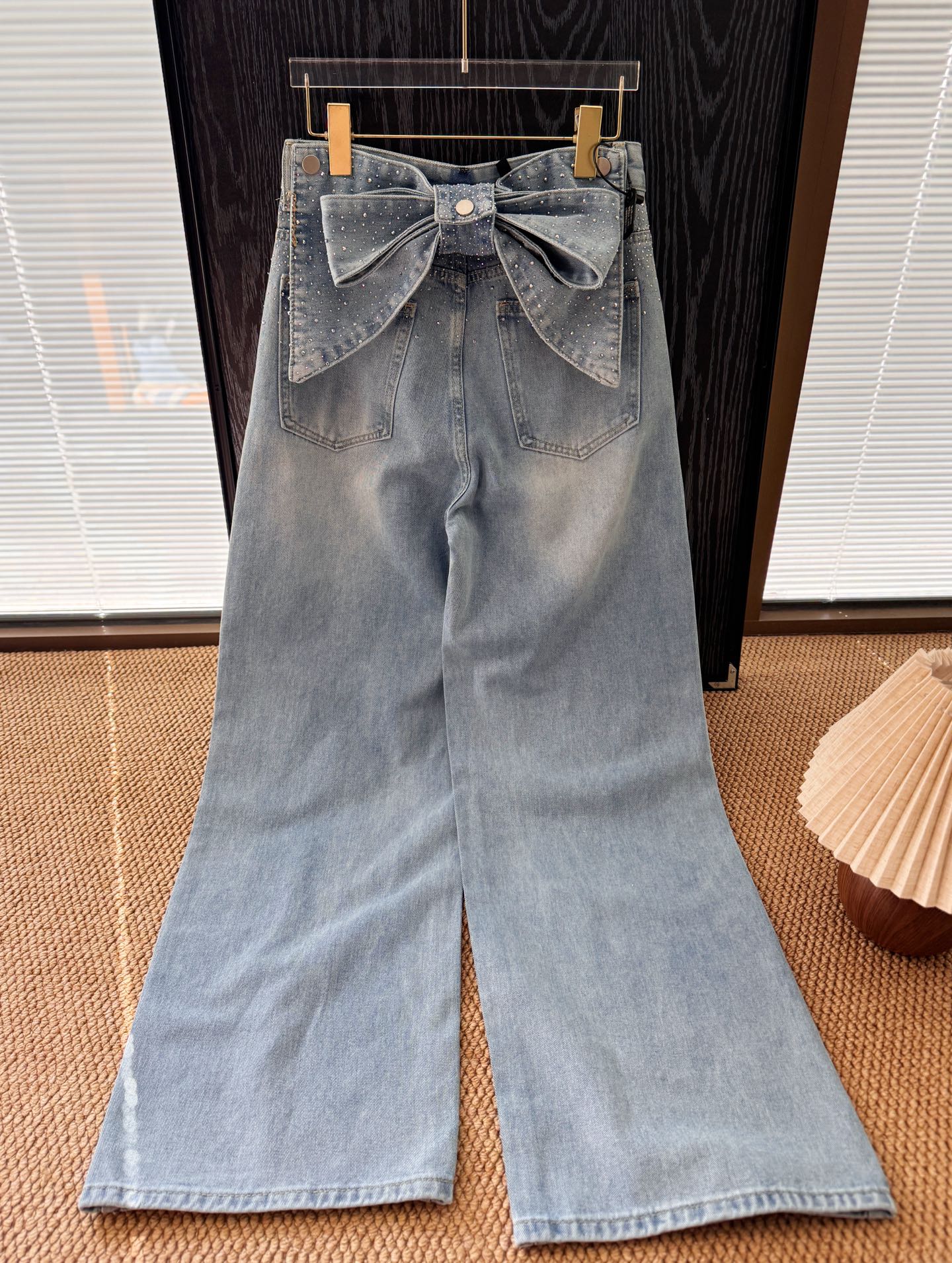 ▪️品名:ANN ANDELMA* 后腰可拆卸蝴蝶烫钻高腰阔腿牛仔裤®