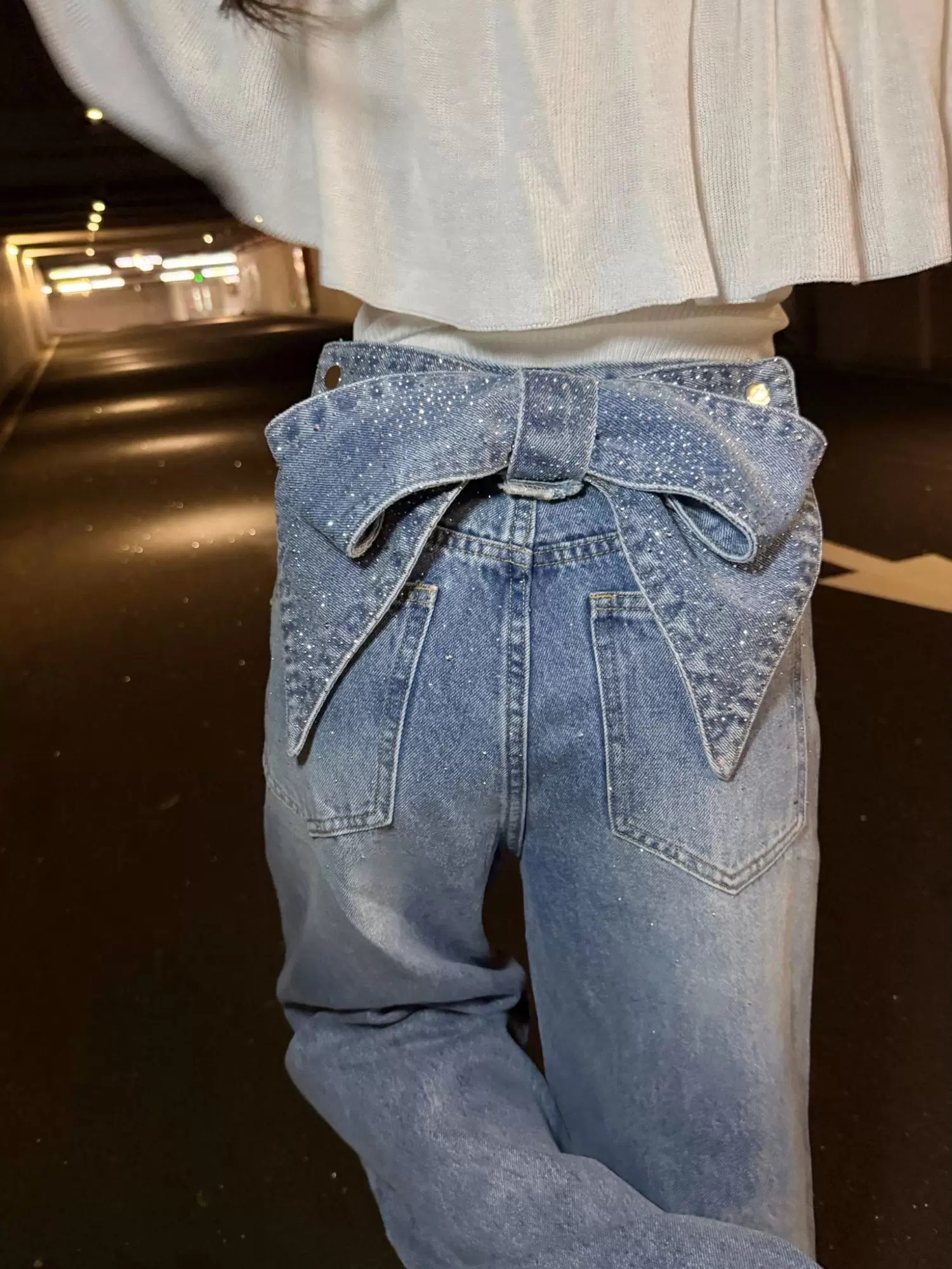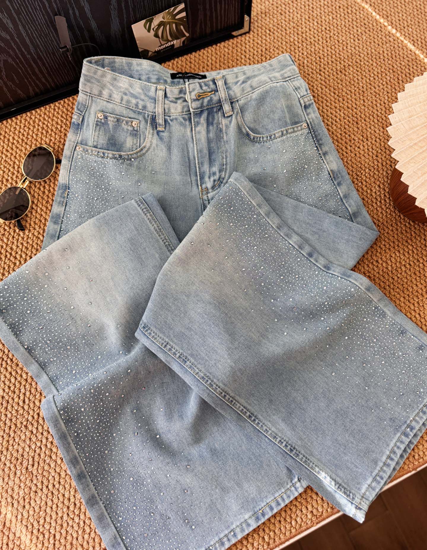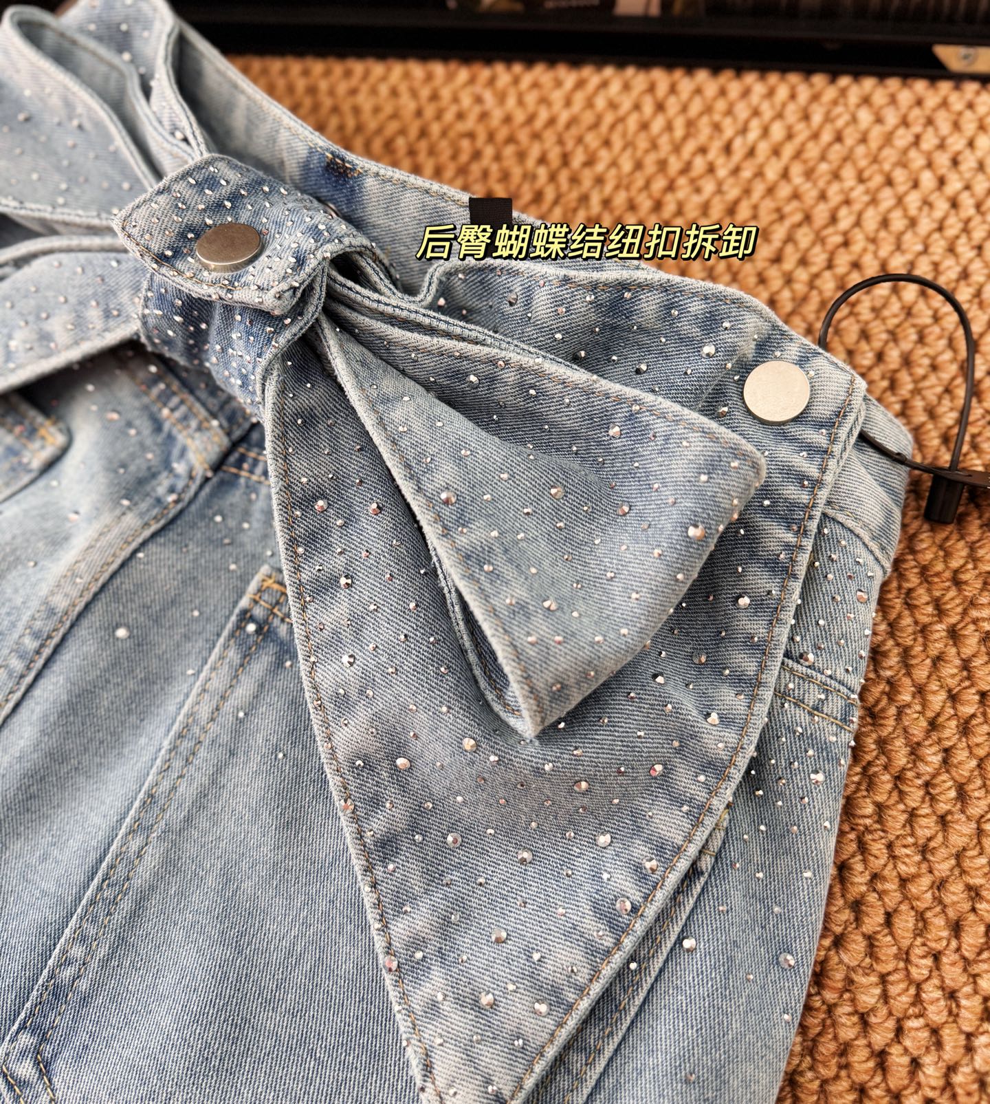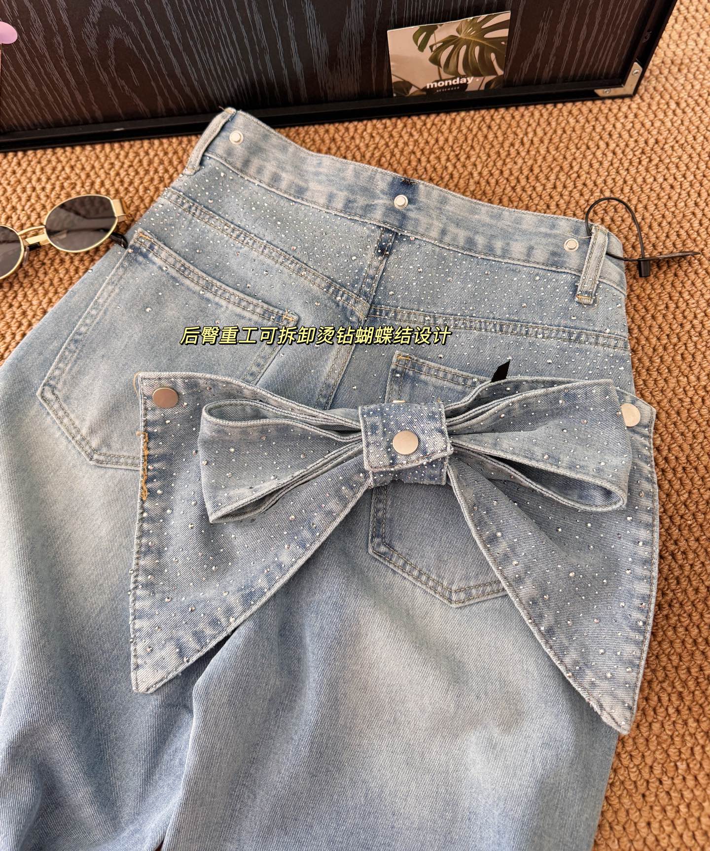 ▪️品名:ANN ANDELMA* 后腰可拆卸蝴蝶烫钻高腰阔腿牛仔裤®