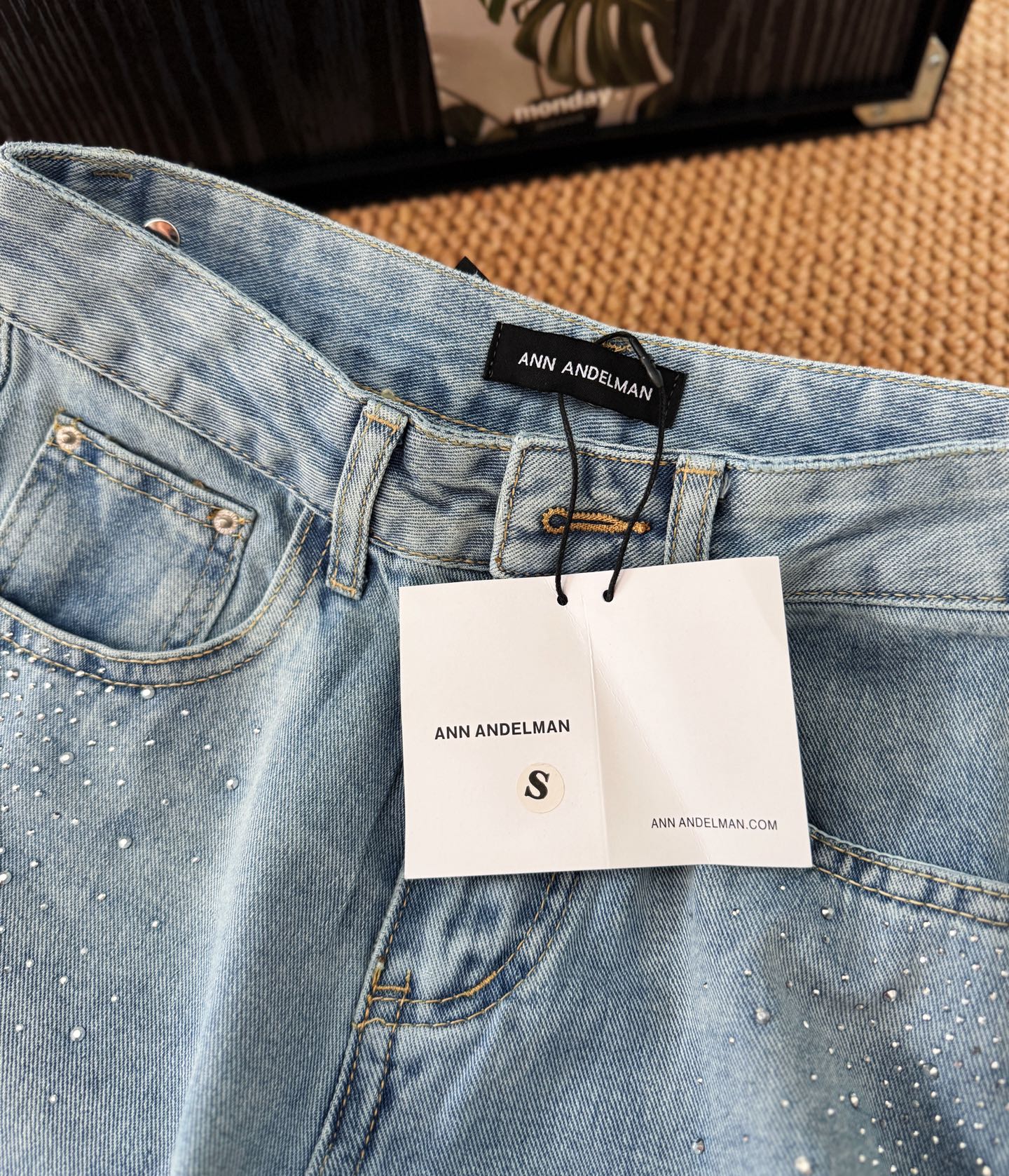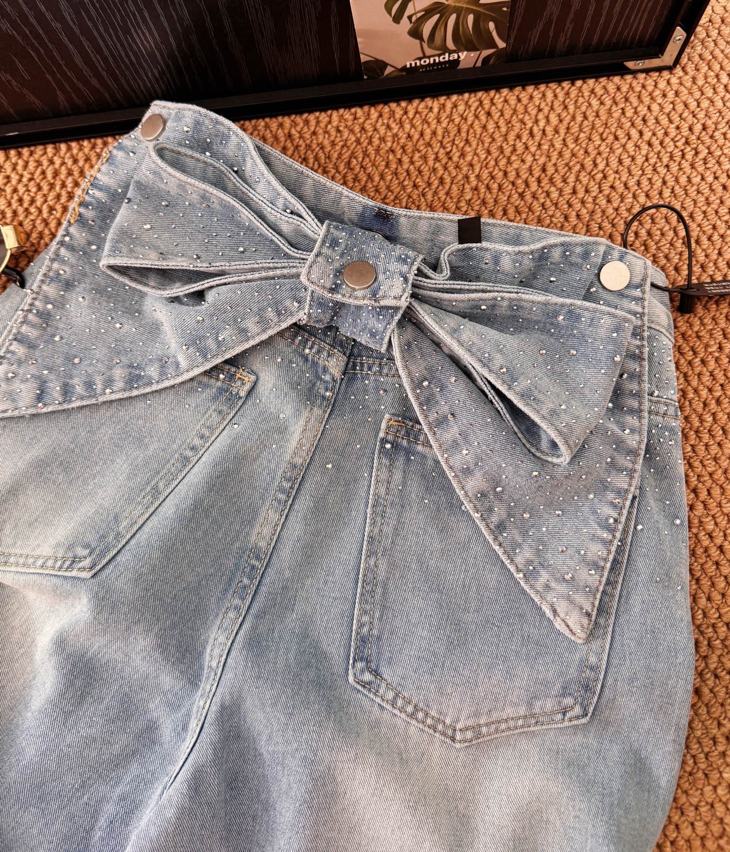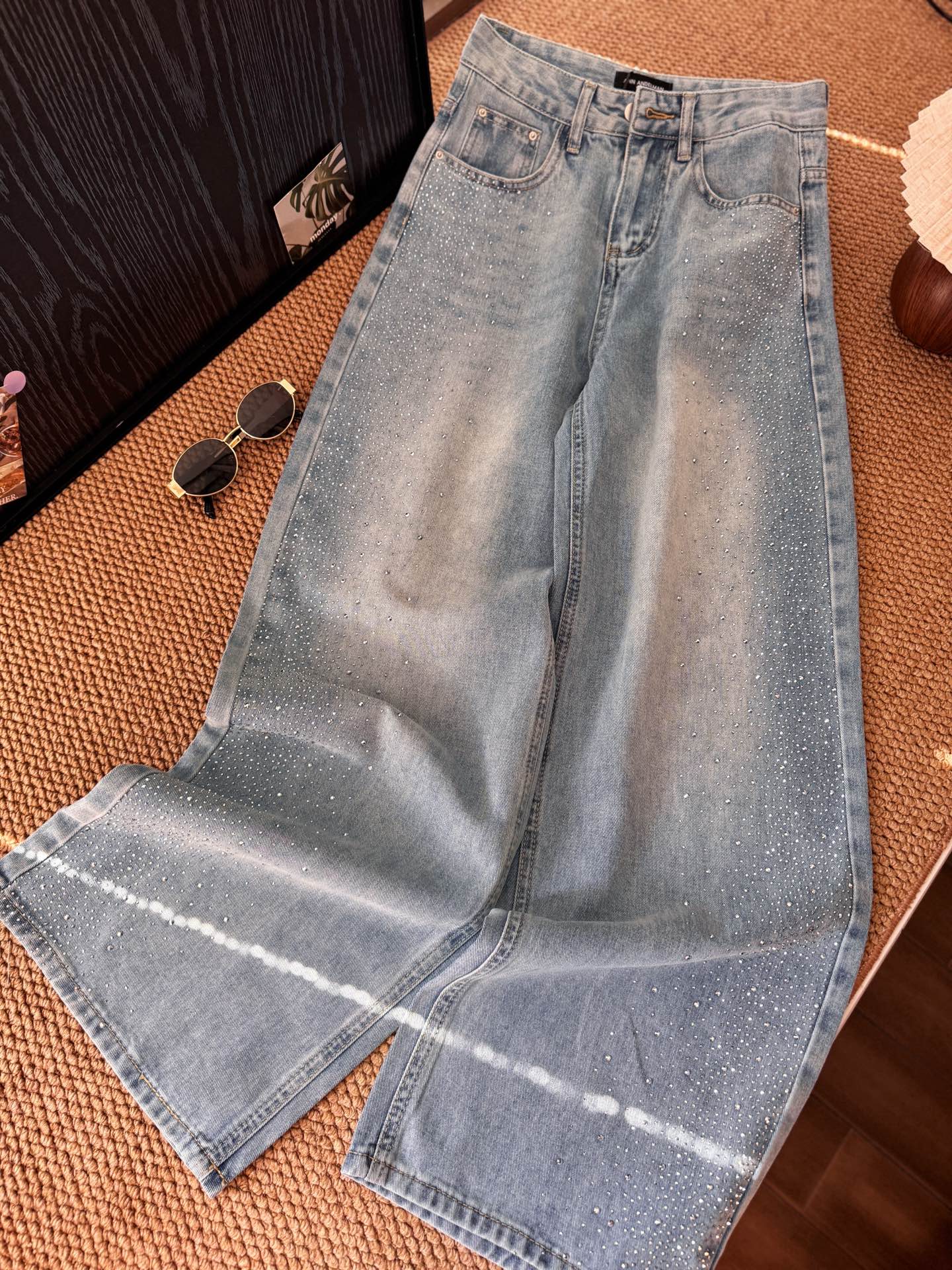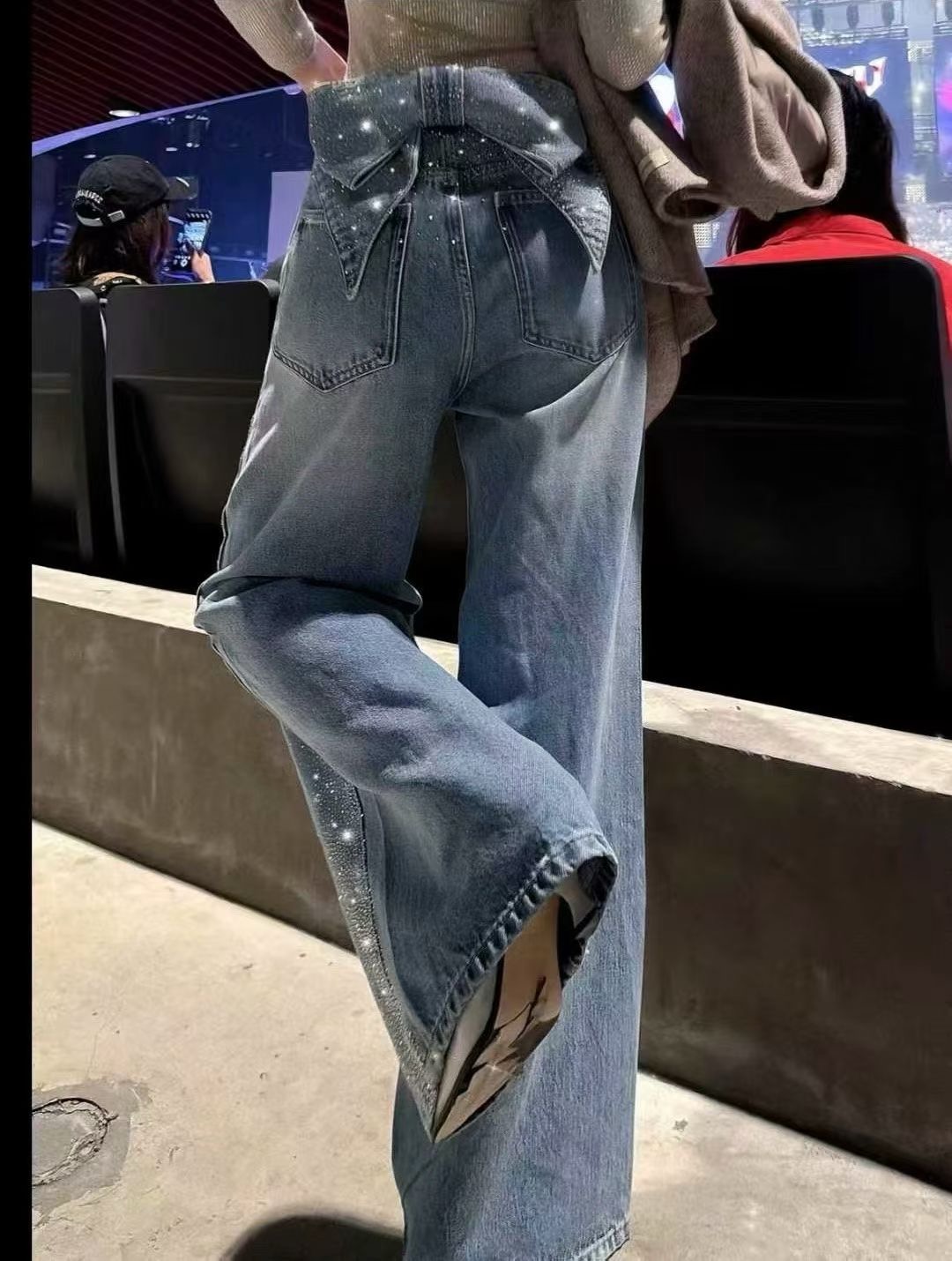 ▪️品名:ANN ANDELMA* 后腰可拆卸蝴蝶烫钻高腰阔腿牛仔裤®