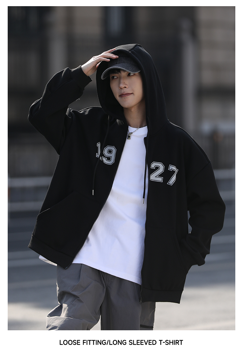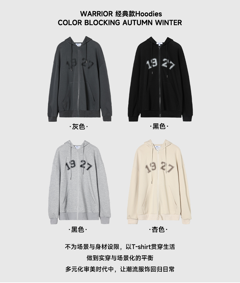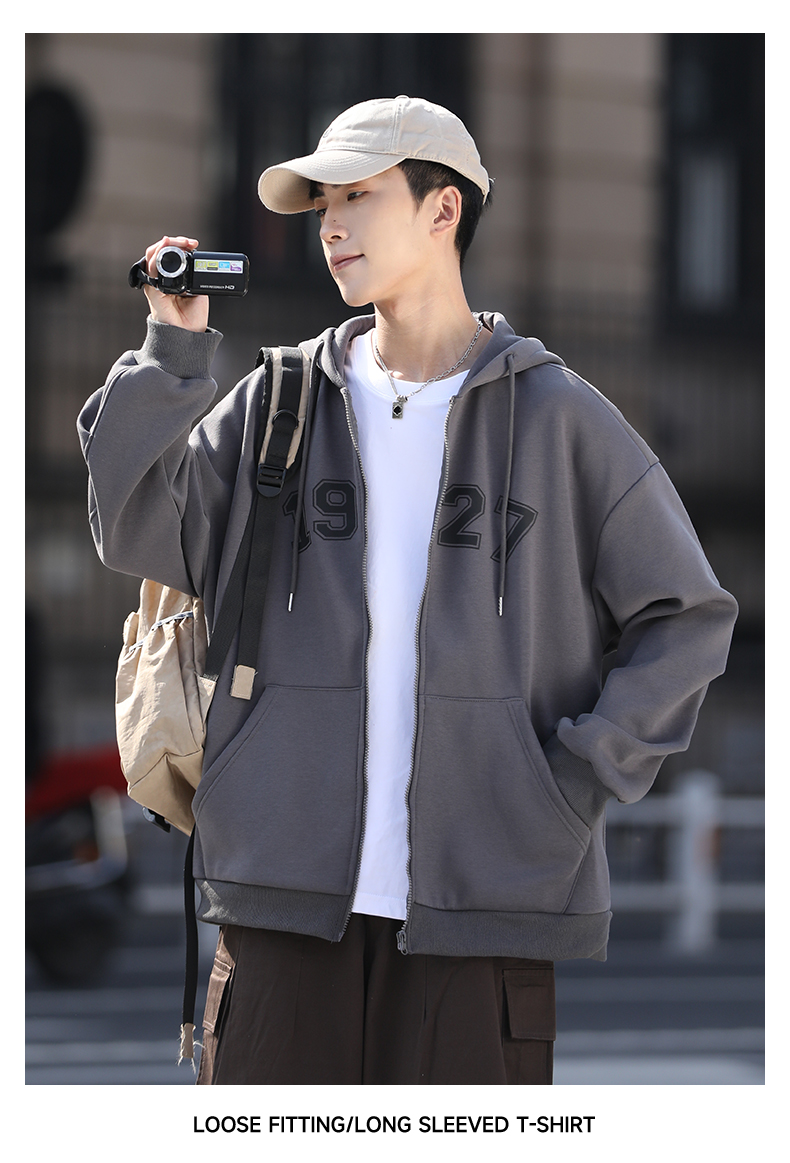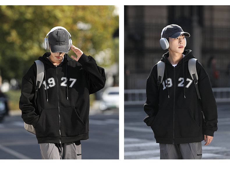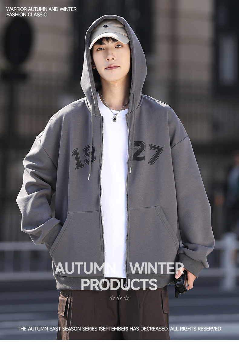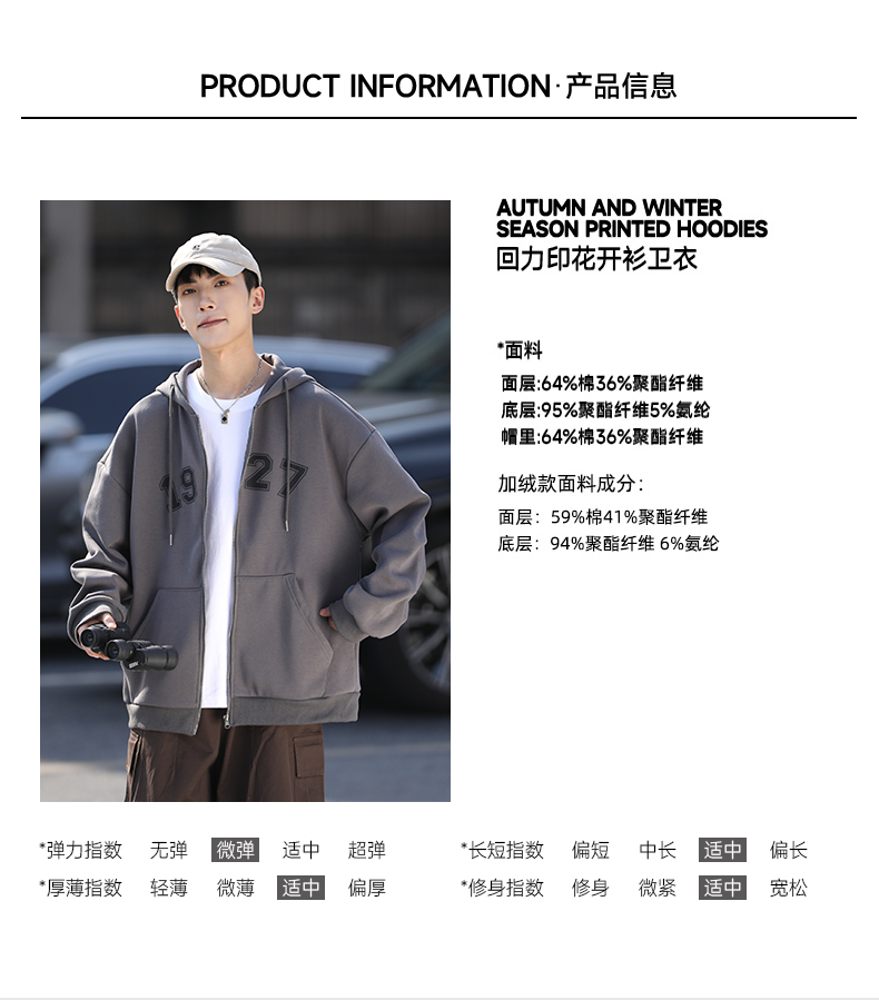 回力开衫卫衣男2025秋冬新男生款加绒连帽上衣潮美式运动男士外套