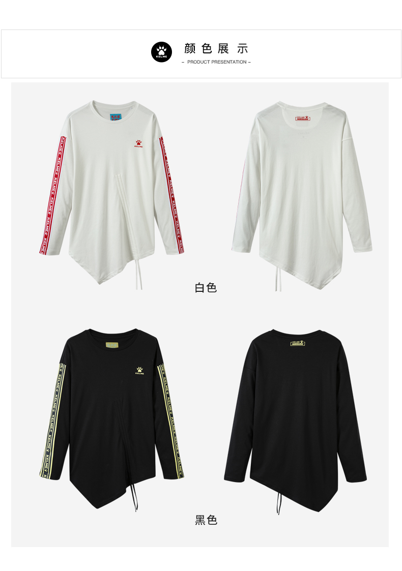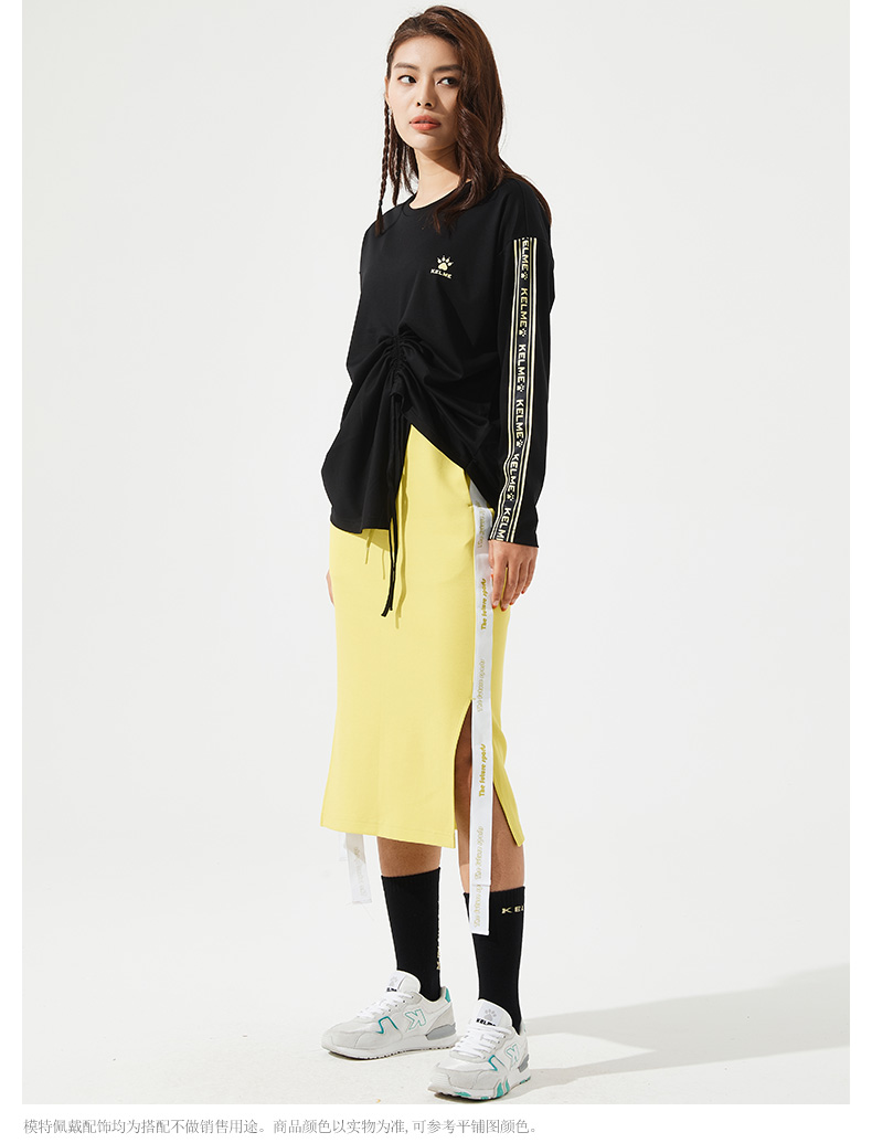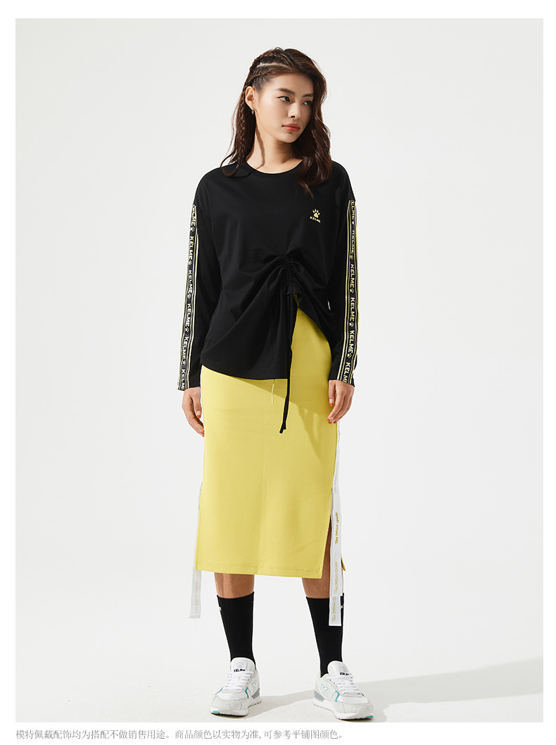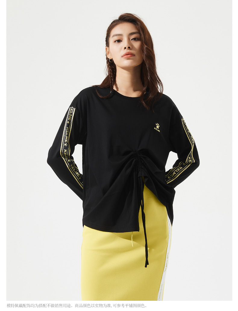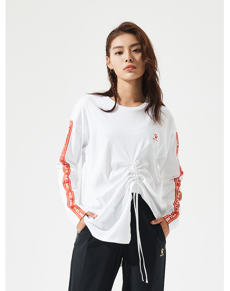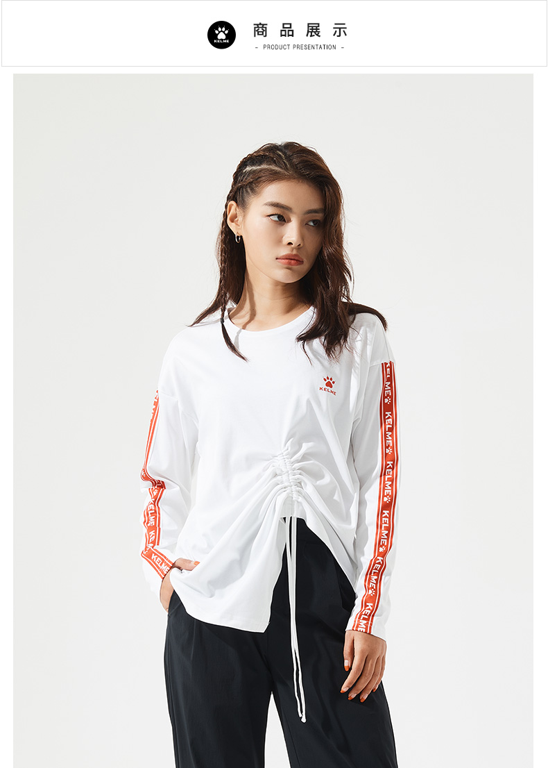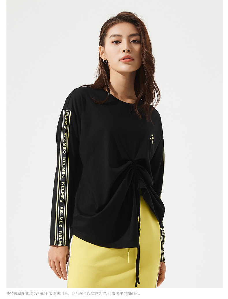 KELME卡尔美 新款圆领抽带调节不规则长袖T恤女百搭时尚休闲上衣
