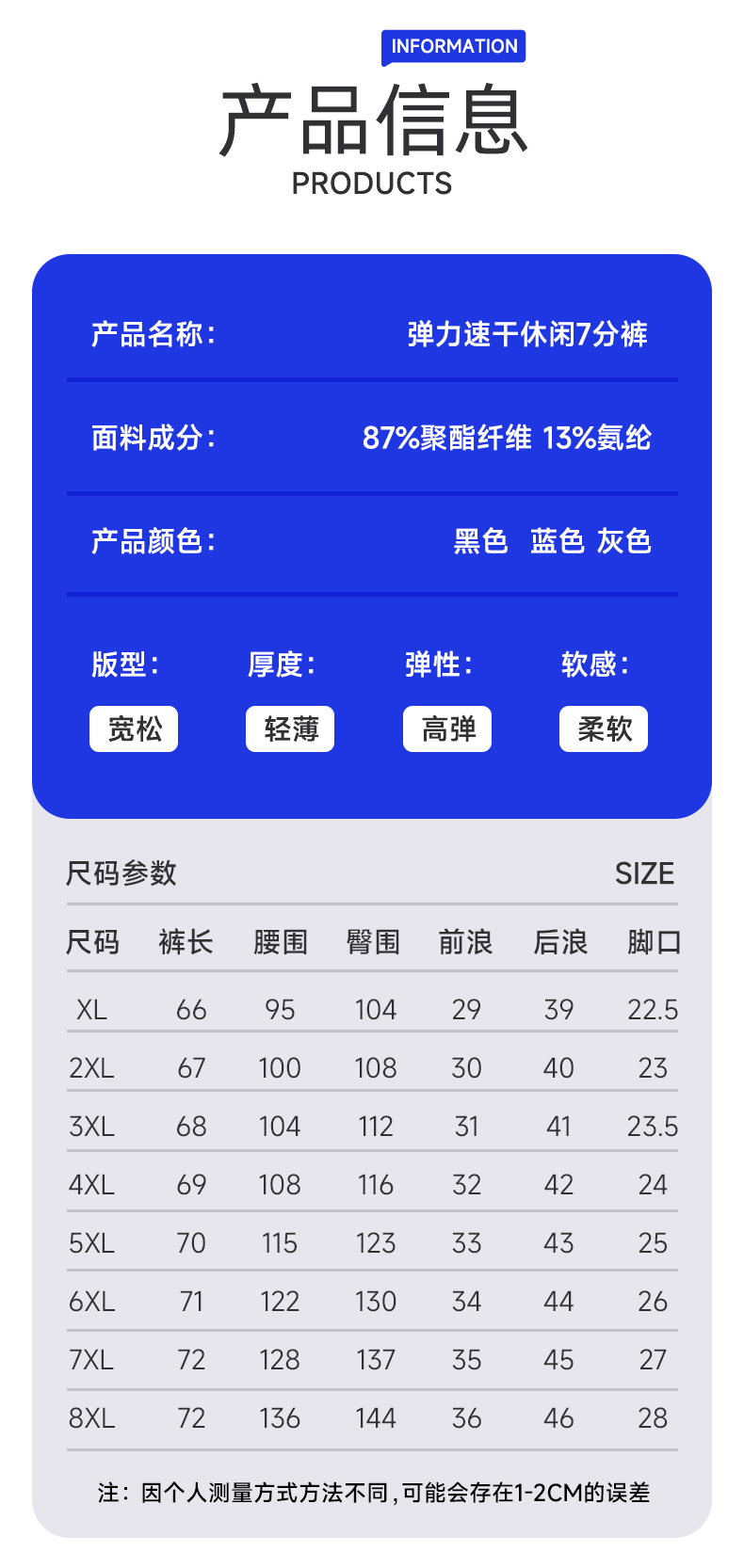 【DNY】大依优型休闲七分裤工装短裤弹力大号加肥加大夏季薄款松紧腰宽松运动短裤透气