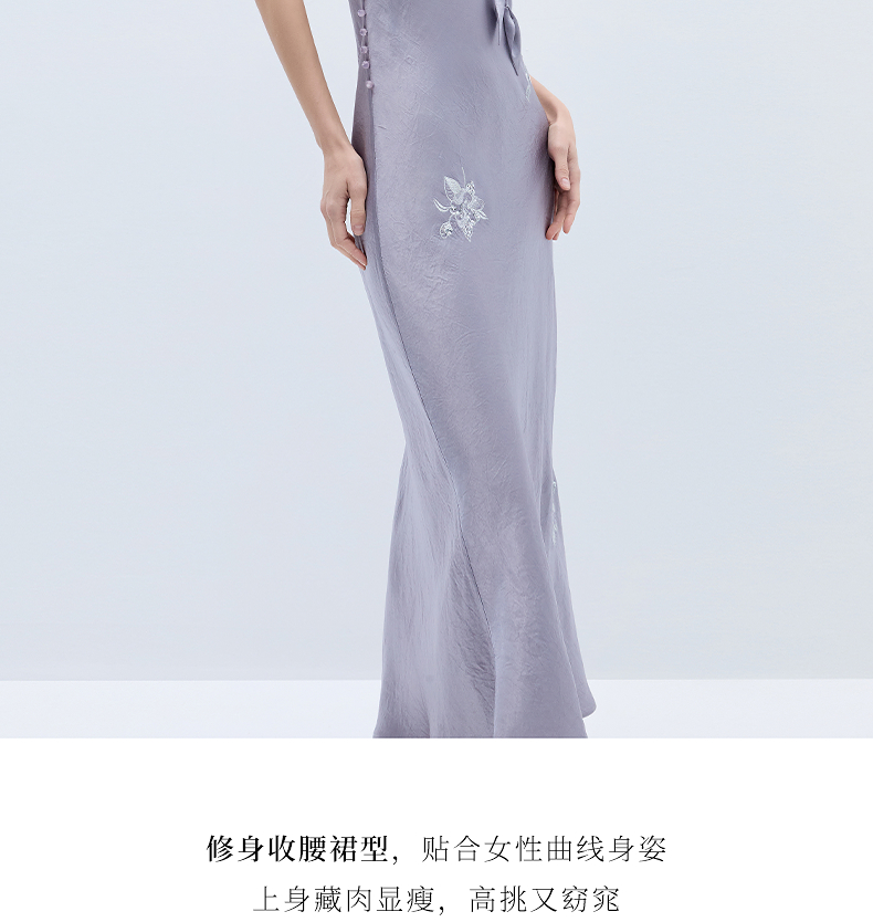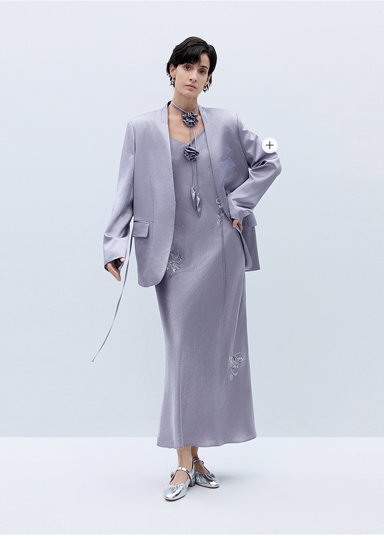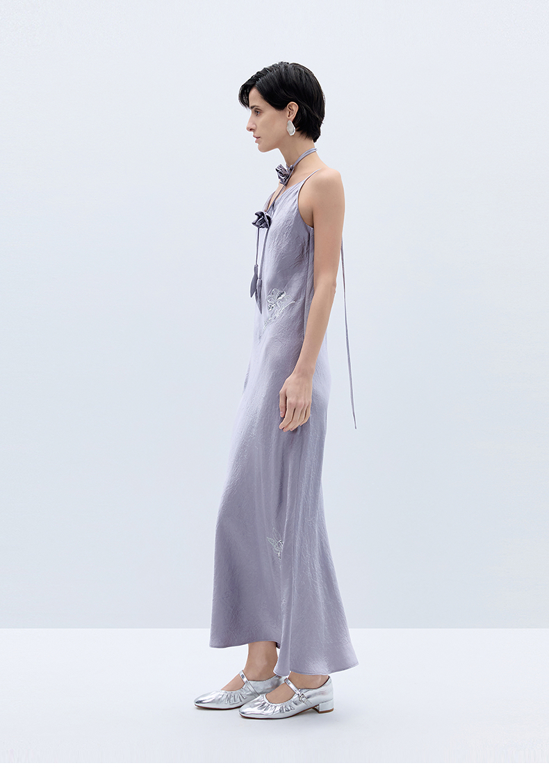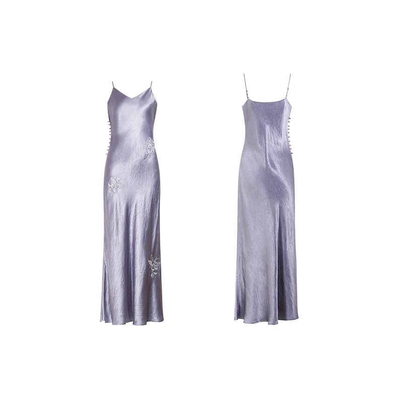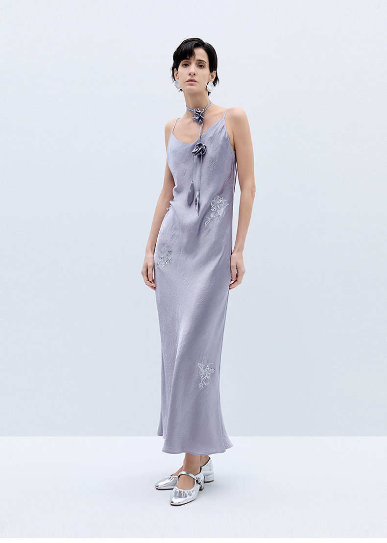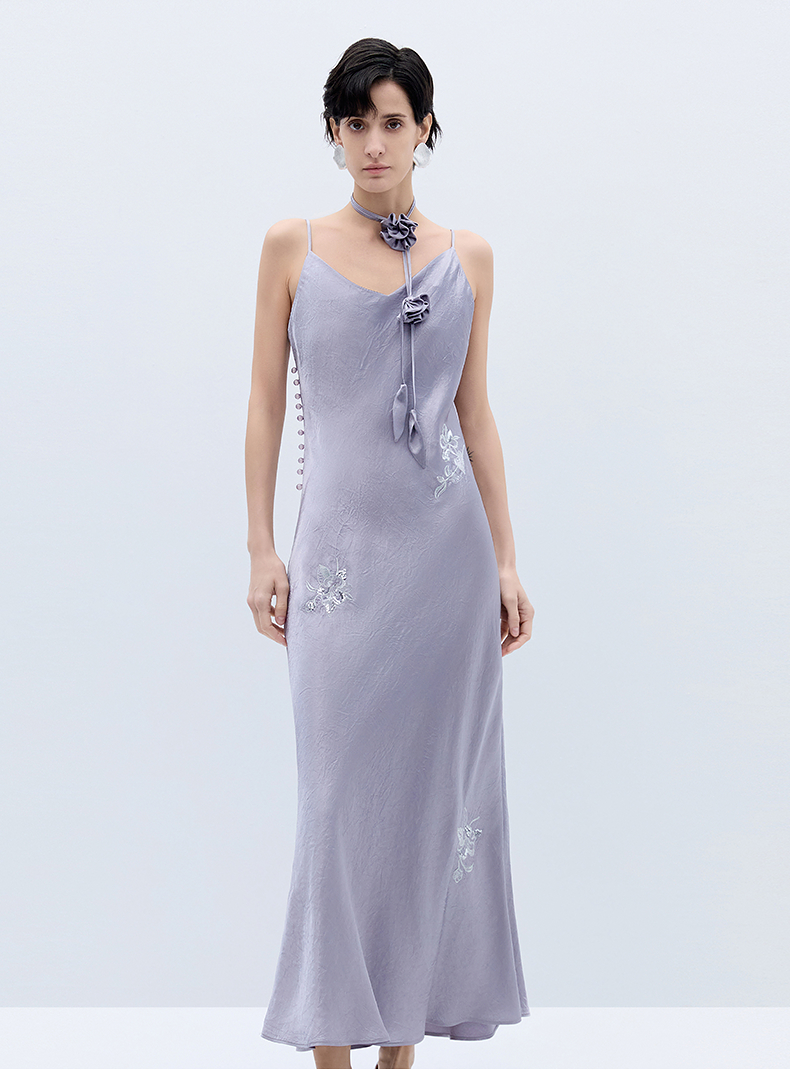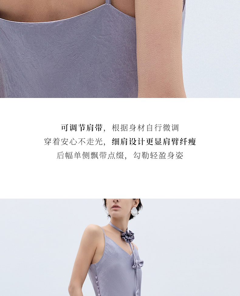 商场同款naivee纳薇25春新款度假约会玫瑰珠绣醋酸吊带连衣裙紫女251260681