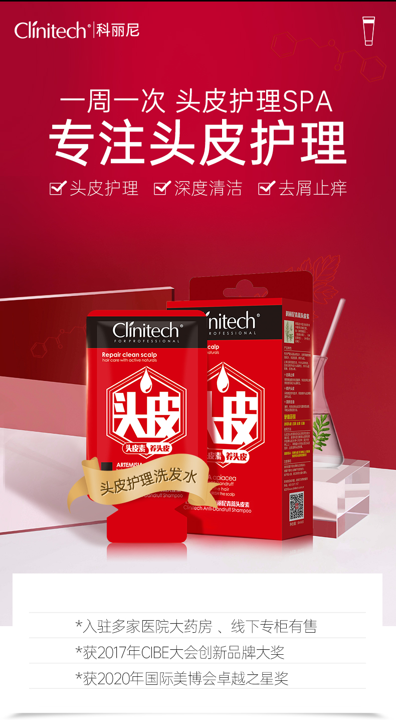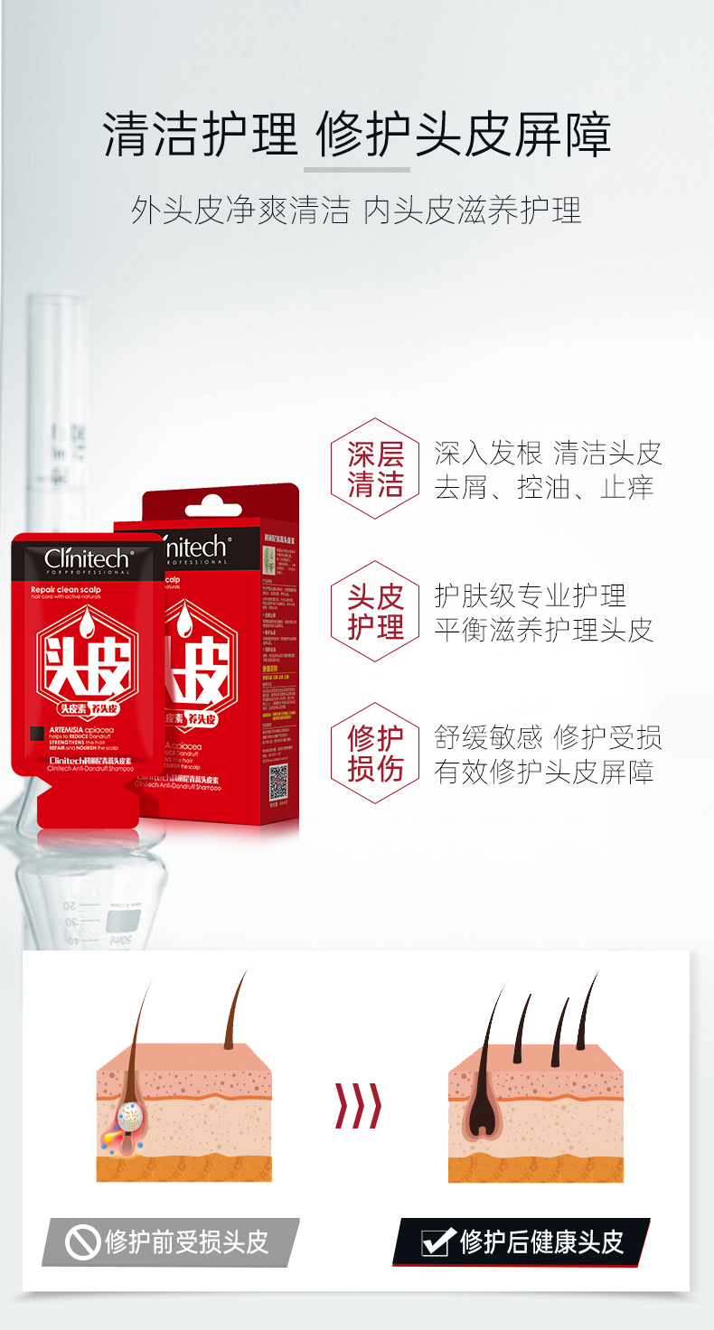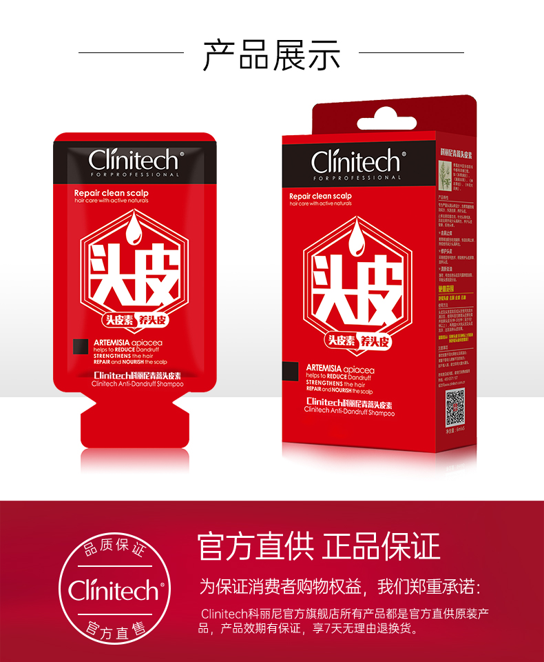 【上海华山医院临床推荐】Clinitech科丽尼青蒿头皮素洗发水30ml5袋/盒头皮spa告别头屑、头痒、头油3000人亲测用一次离不开