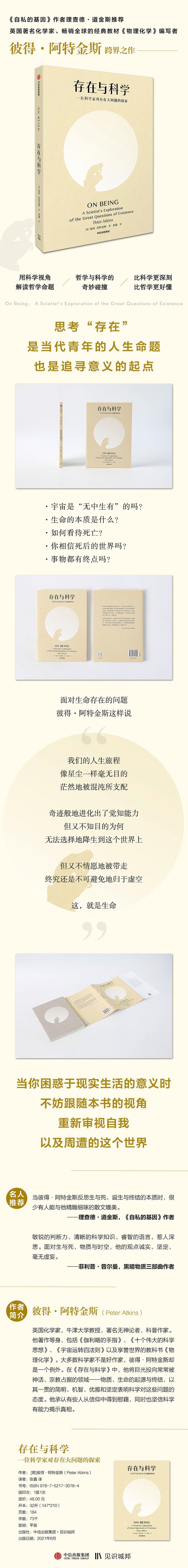 它是一本新奇的哲学书。在《存在与科学》里,你看不到哲学家的身影,也不用担心难懂的抽象思辨。科学家彼得·阿特金斯跨越哲学与科学的边界,用物理学、化学、生物学的前沿知识将与“我”的存在有关的zhong极问题娓娓道来:宇宙的起点在哪里,终点又在何方?生命的本质是什么?我们为何生,又为何死?死亡之后还有什么?……在提供科学知识的同时,它也为我们勾勒出一部物质(“我”)从诞生到消亡的宏大历史,在知识丛林中为我们寻得一条通往生命真相的蹊径。