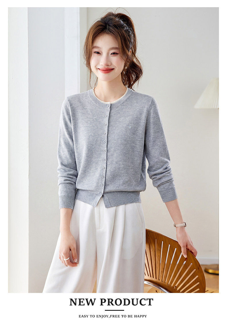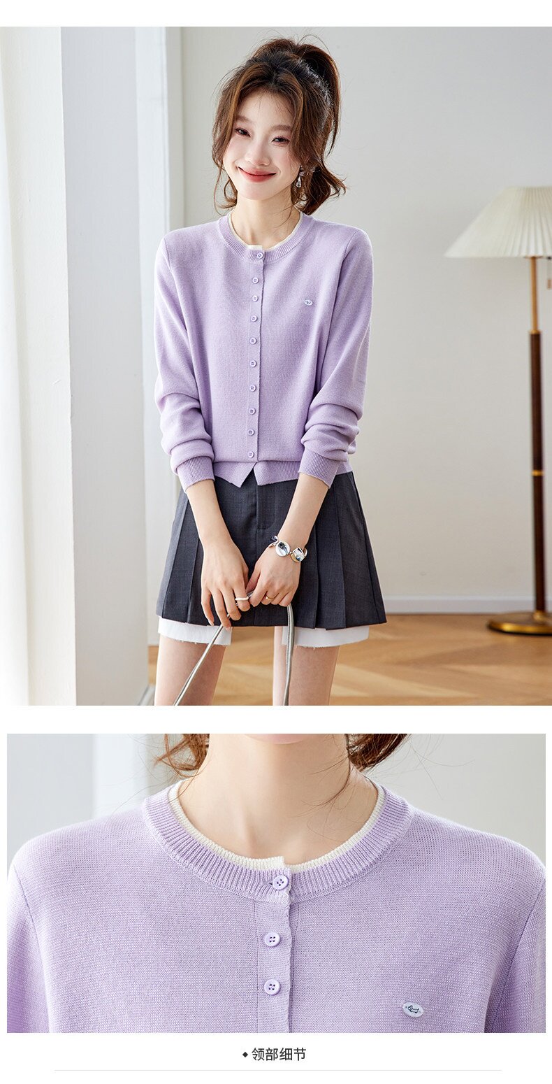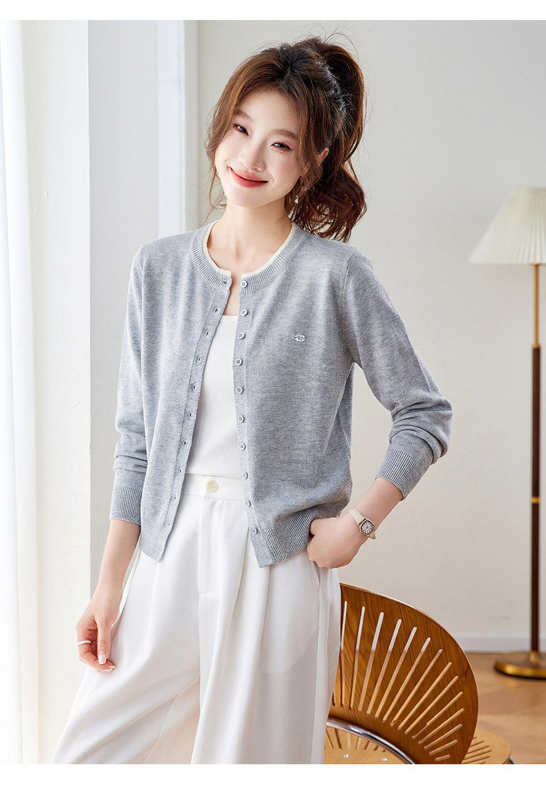 「自」全新升级【铂金会员183/天猫239/差价56】(95957)洛诗琳小香风针织开衫女2026新款春装薄款圆领显瘦针织外套