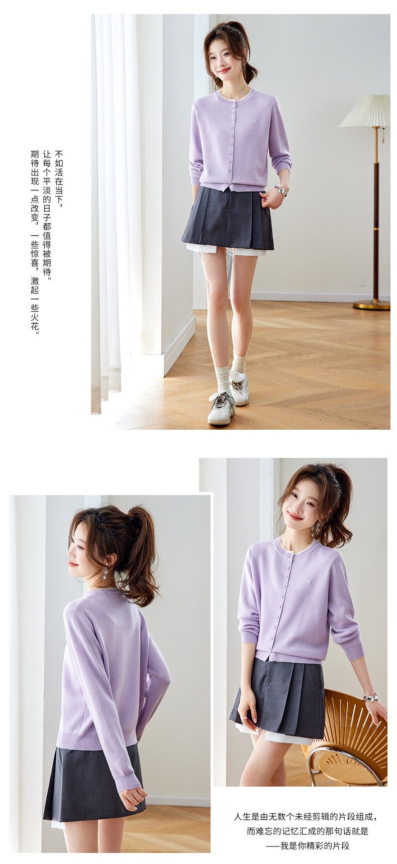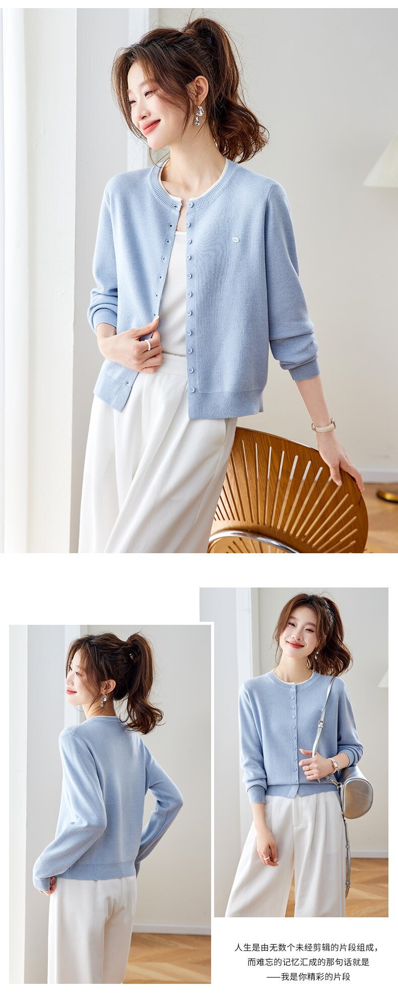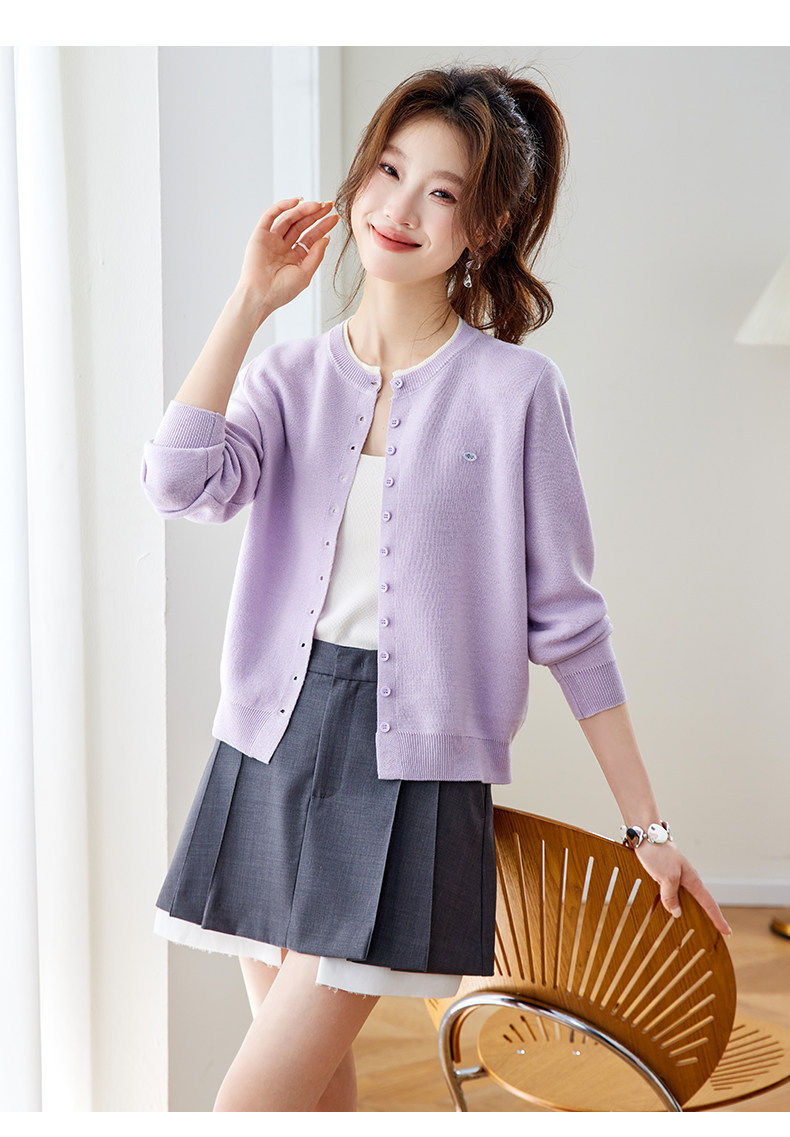 「自」全新升级【铂金会员183/天猫239/差价56】(95957)洛诗琳小香风针织开衫女2026新款春装薄款圆领显瘦针织外套