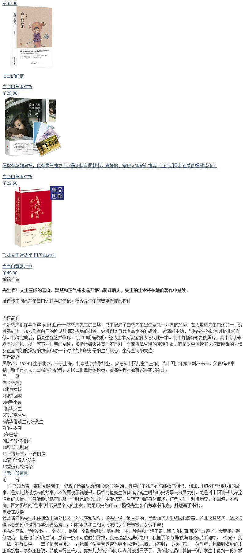 听杨绛谈往事(增补版):谨以此纪念杨绛先生逝世一周年