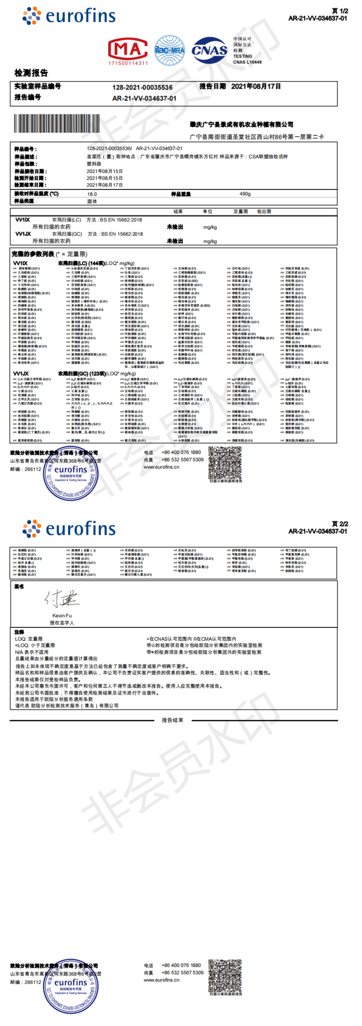韭菜苔在种植过程中使用酵素、有机肥、花生麸、竹粉、竹醋、草木灰等,上架前检测260+项目农残,全部无检出。