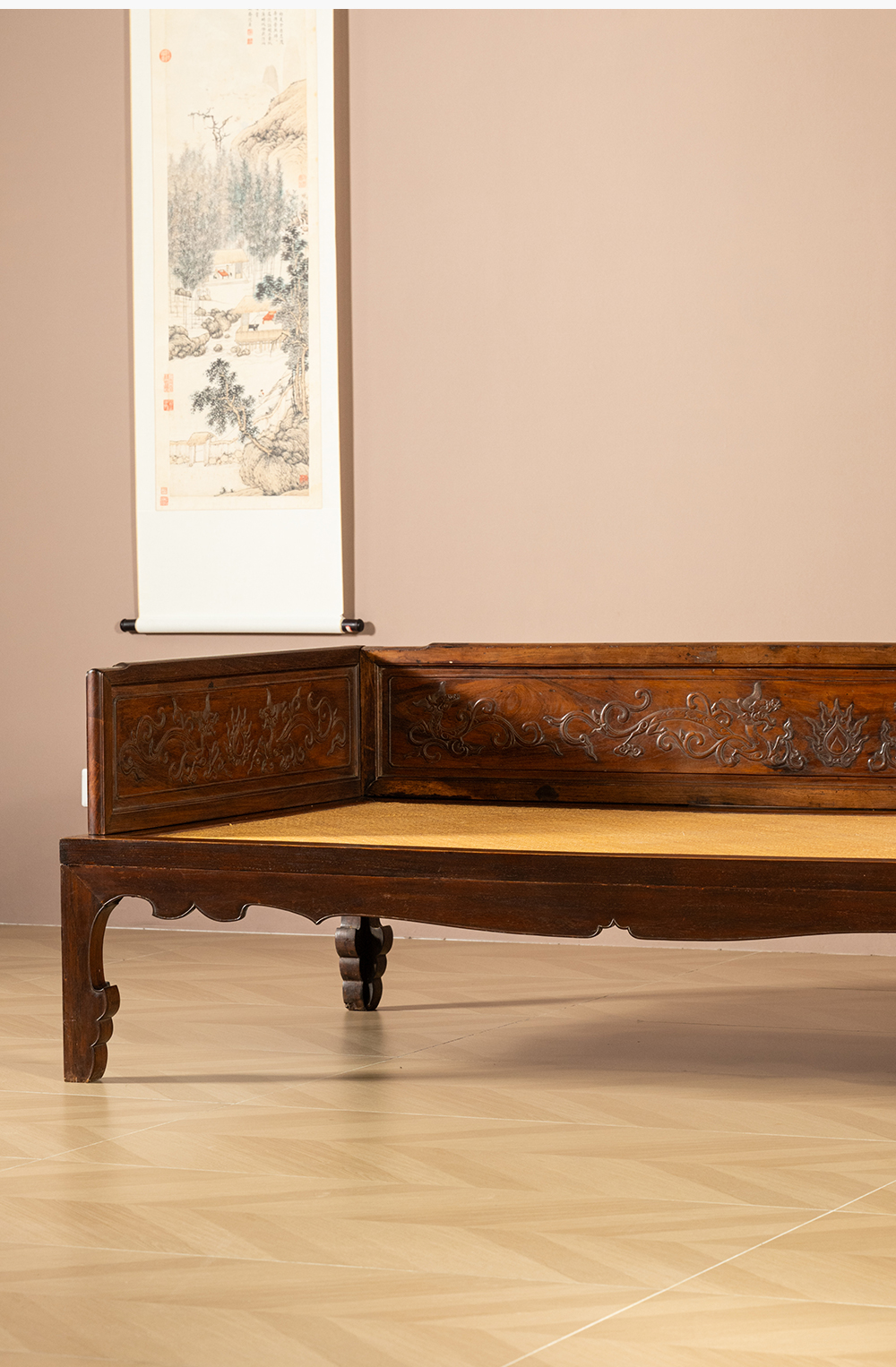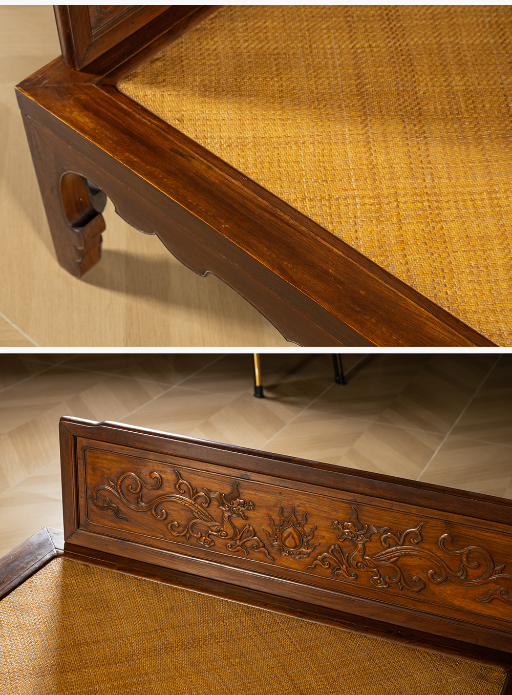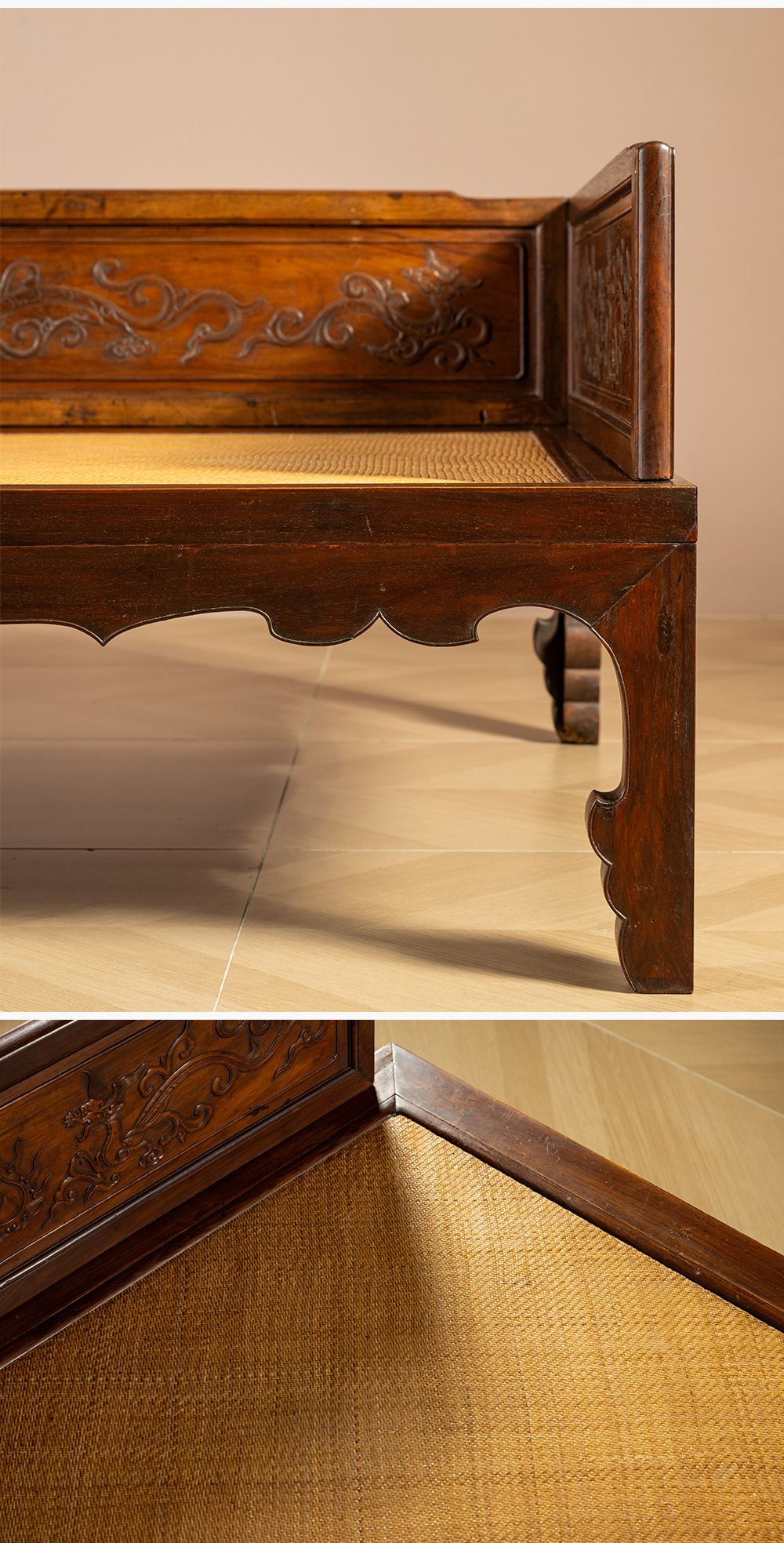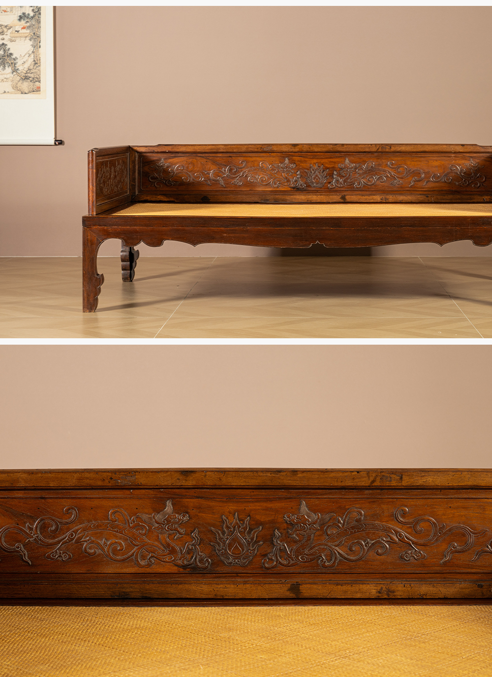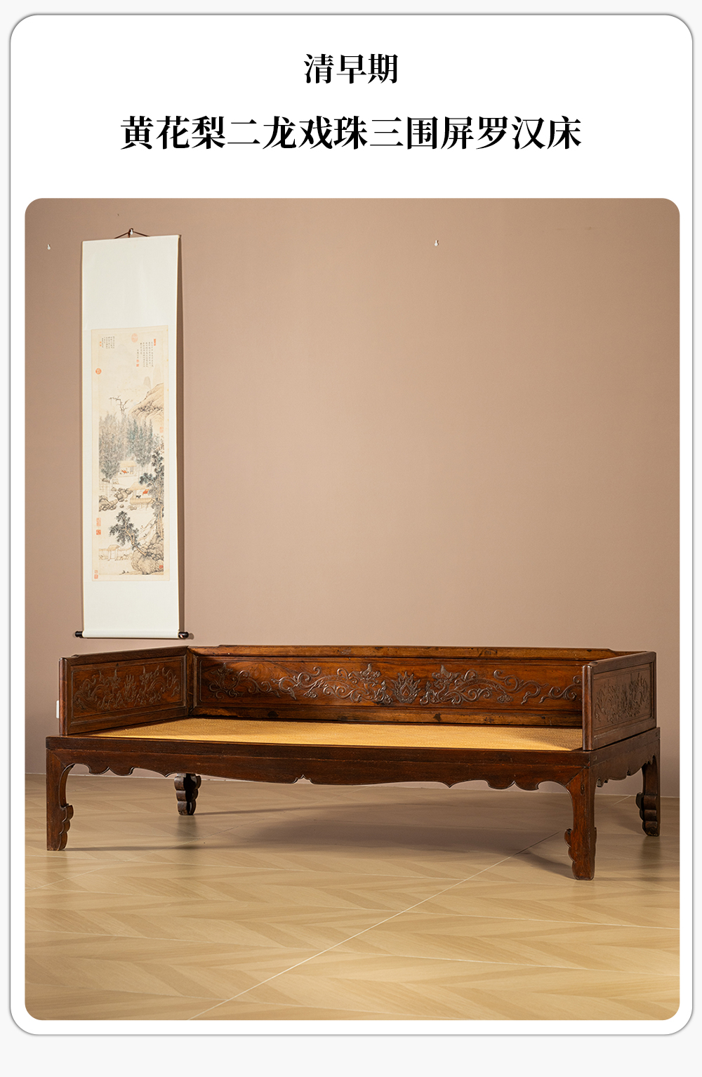 清早期 黄花梨二龙戏珠三围屏罗汉床