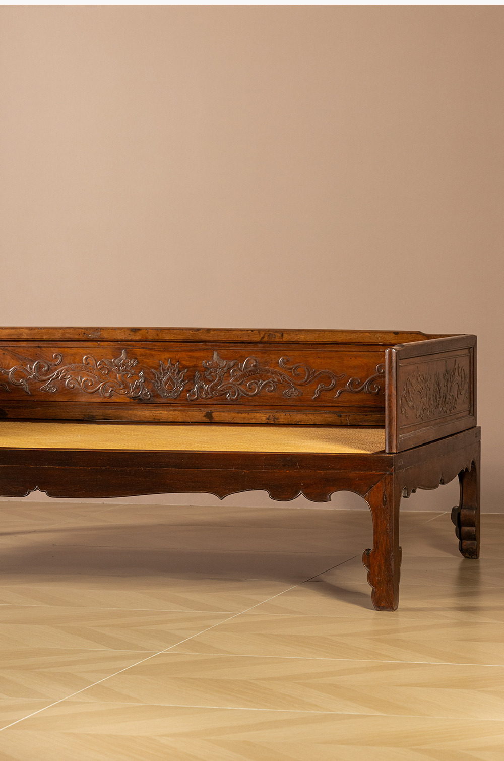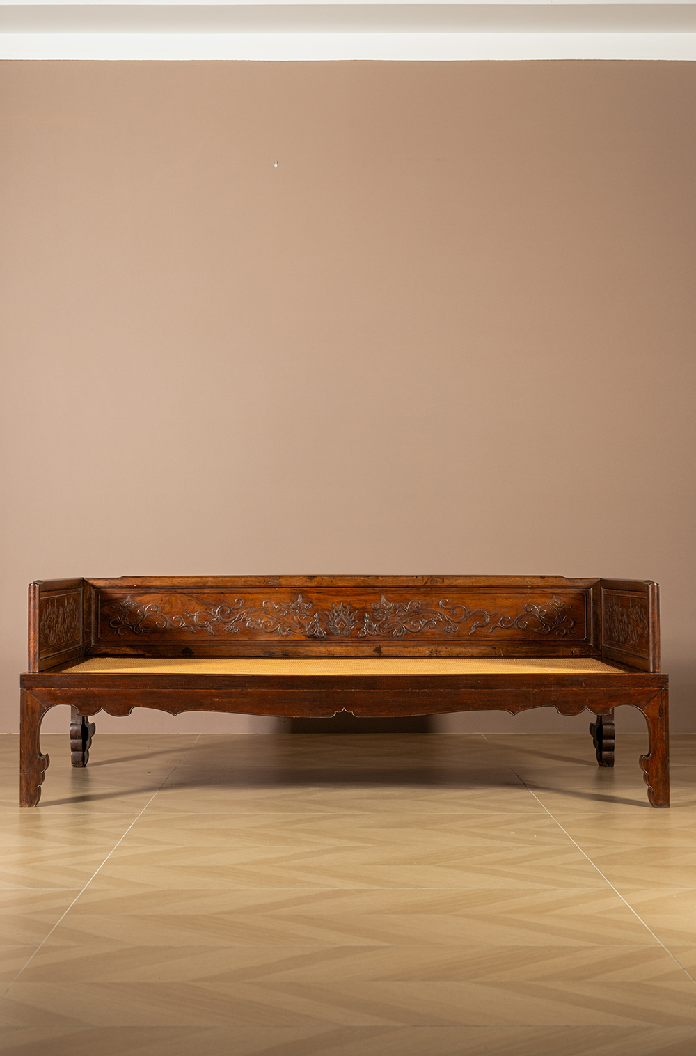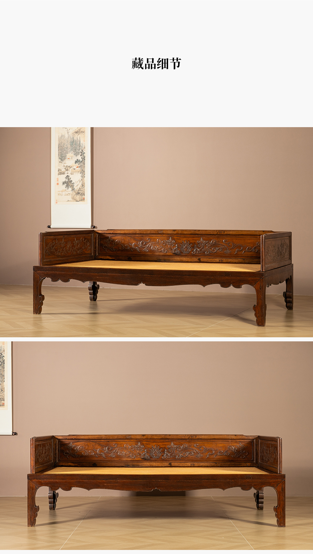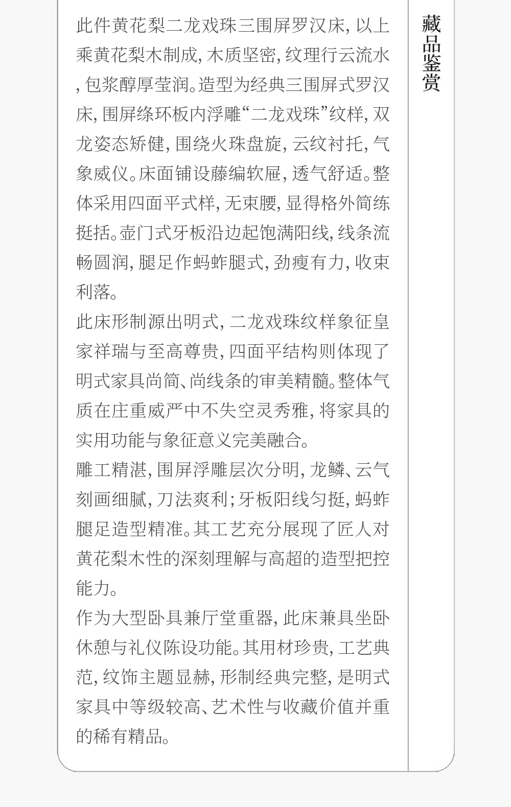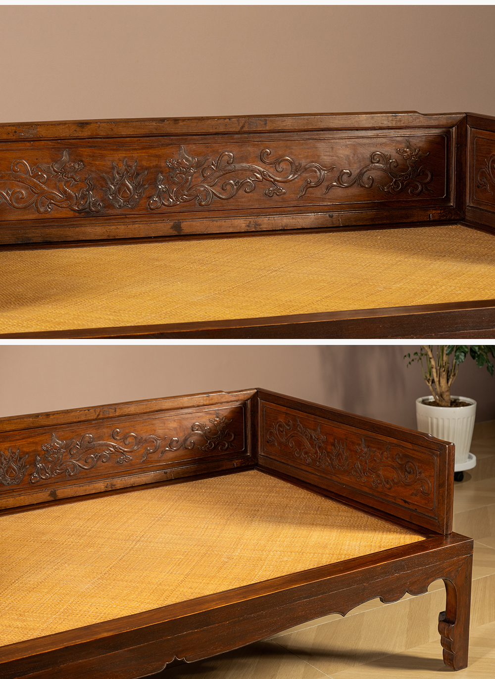 清早期 黄花梨二龙戏珠三围屏罗汉床